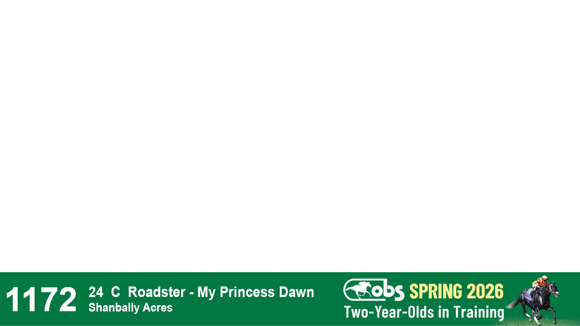 | 1172 | Slate | Lower-Third | 4/3/2024 | C | Road to Emmaus | Roadster | My Princess Dawn | Shanbally Acres | 54 | 992 | 759 | 1003 |
