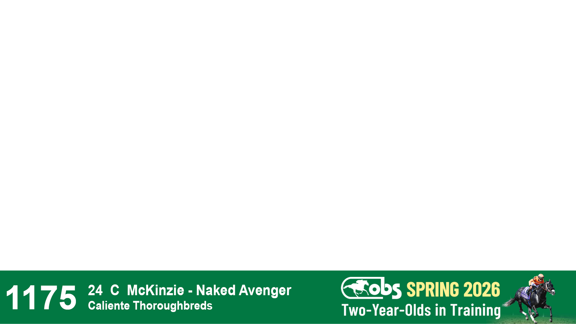 | 1175 | Slate | Lower-Third | 3/18/2024 | C | McKinzie | Naked Avenger | Caliente Thoroughbreds, Agent I | 1178 | 747 | 762 | 85 | |