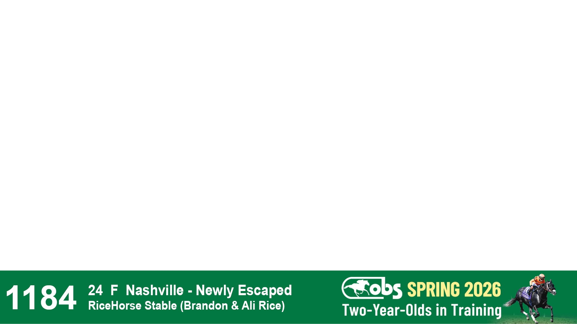 | 1184 | Slate | Lower-Third | 3/30/2024 | F | Nashville | Newly Escaped | RiceHorse Stable (Brandon & Ali Rice), Agent | 1187 | 858 | 771 | 883 | |
