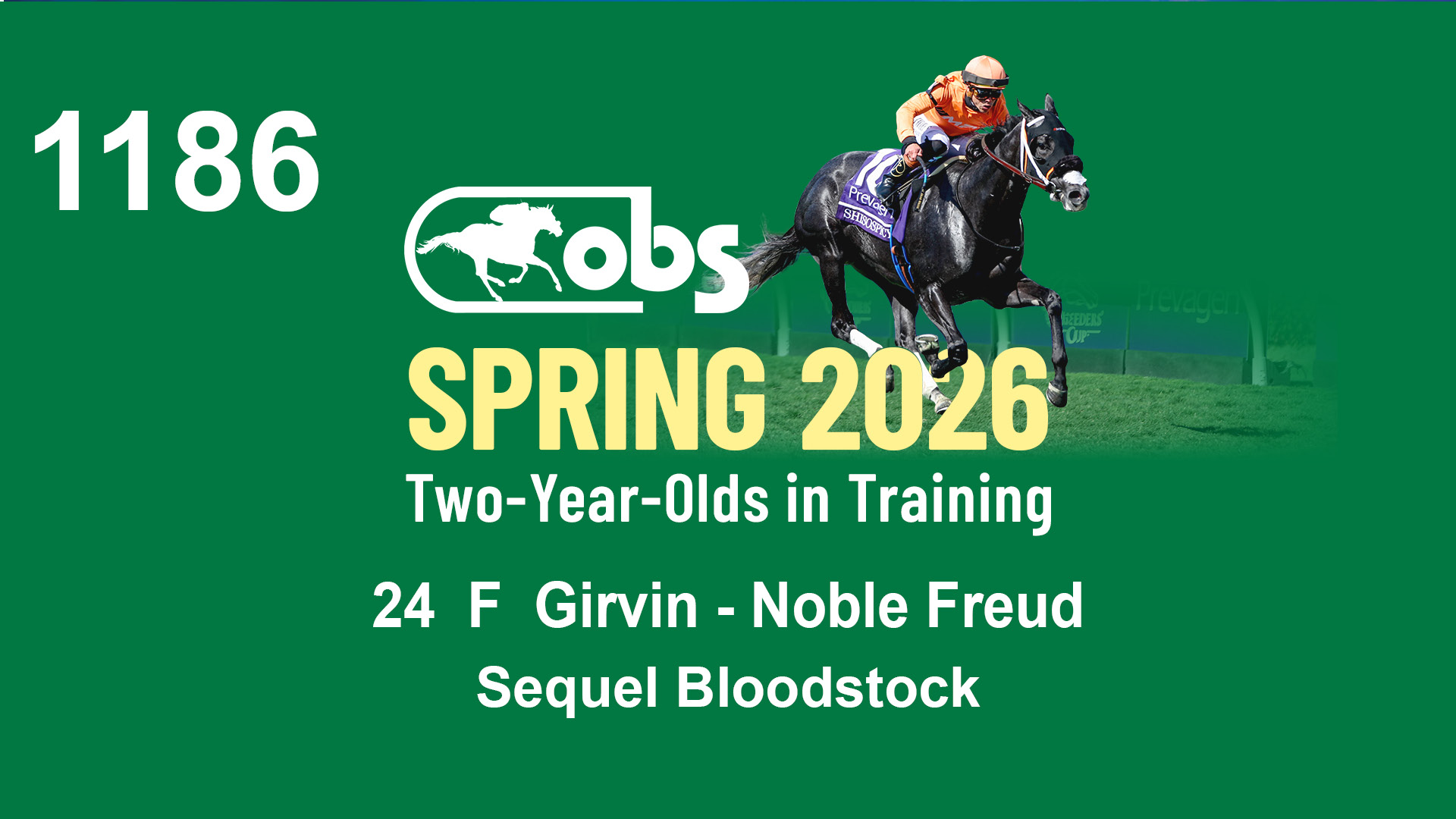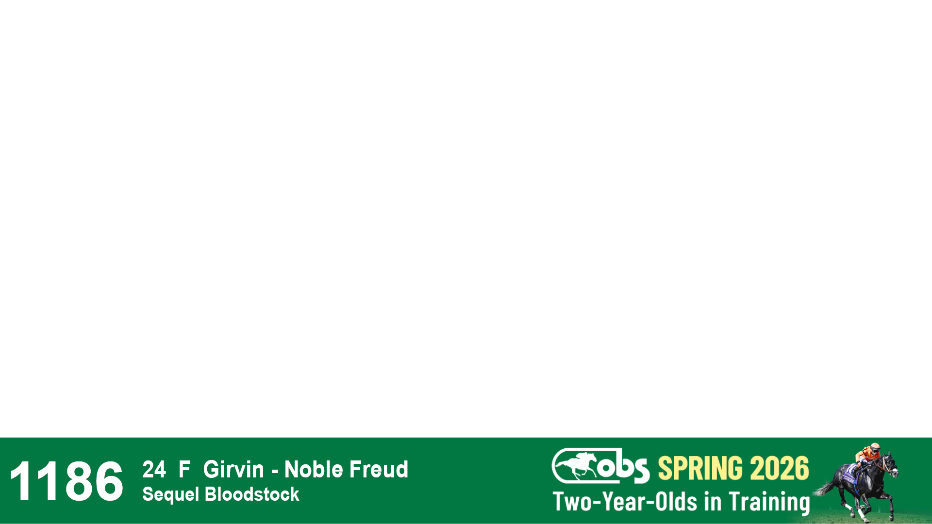 | 1186 | Slate | Lower-Third | 5/12/2024 | F | Girvin | Noble Freud | Sequel Bloodstock, Agent VIII | 1189 | 403 | 773 | 979 | |