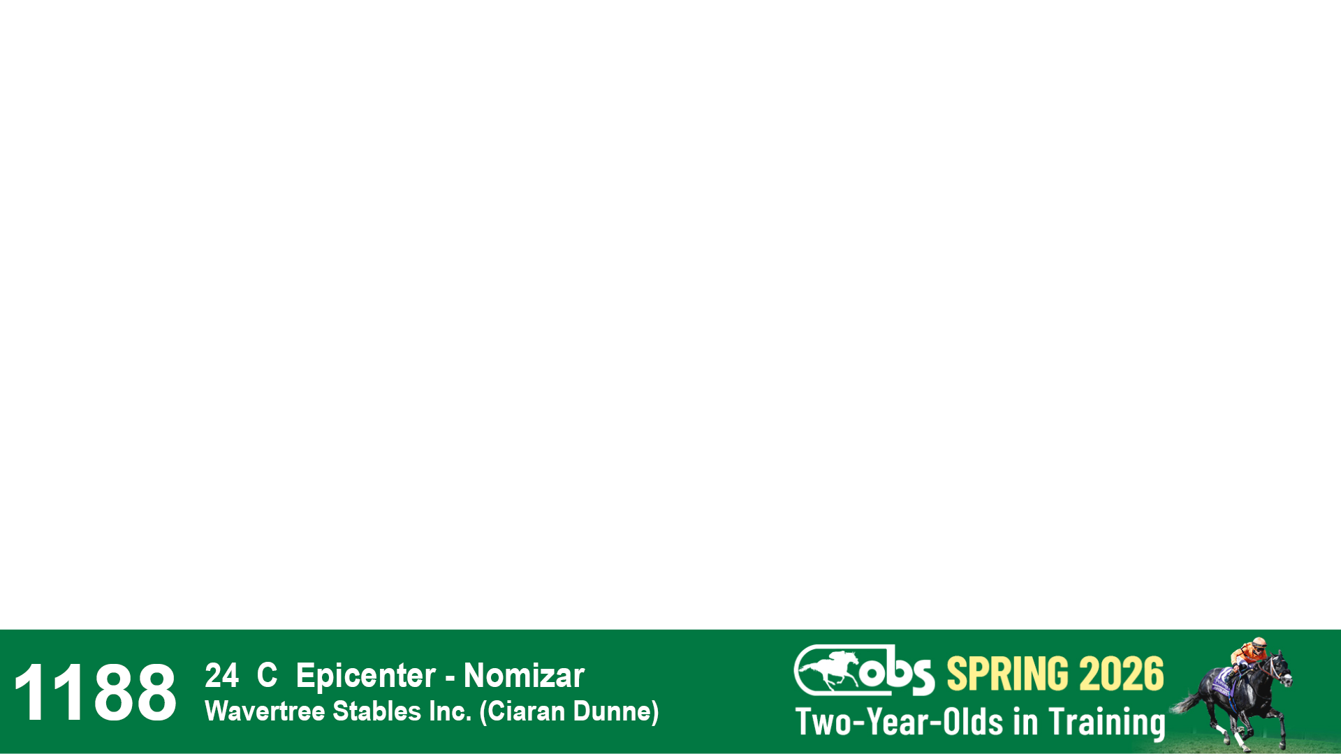 | 1188 | Slate | Lower-Third | 2/9/2024 | C | Epicenter | Nomizar | Wavertree Stables, Inc. (Ciaran Dunne), Agent VII | 1191 | 342 | 775 | 1197 | |