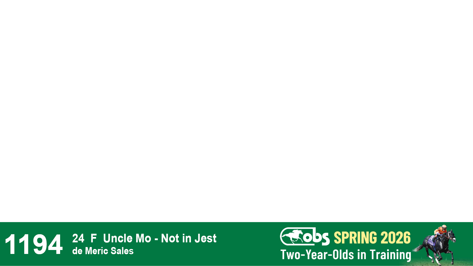 | 1194 | Slate | Lower-Third | 5/26/2024 | F | Uncle Mo | Not in Jest | de Meric Sales, Agent XX | 1197 | 1112 | 781 | 207 | |