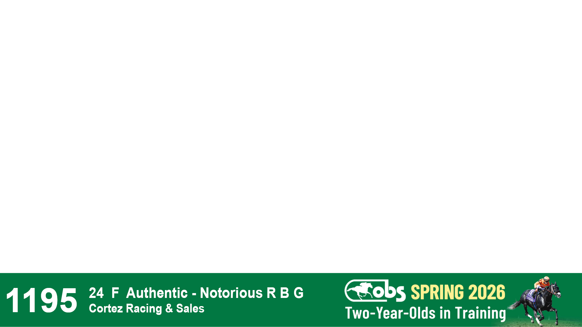 | 1195 | Slate | Lower-Third | 2/18/2024 | F | Authentic | Notorious R B G | Cortez Racing & Sales, Agent I | 1198 | 45 | 782 | 159 | |