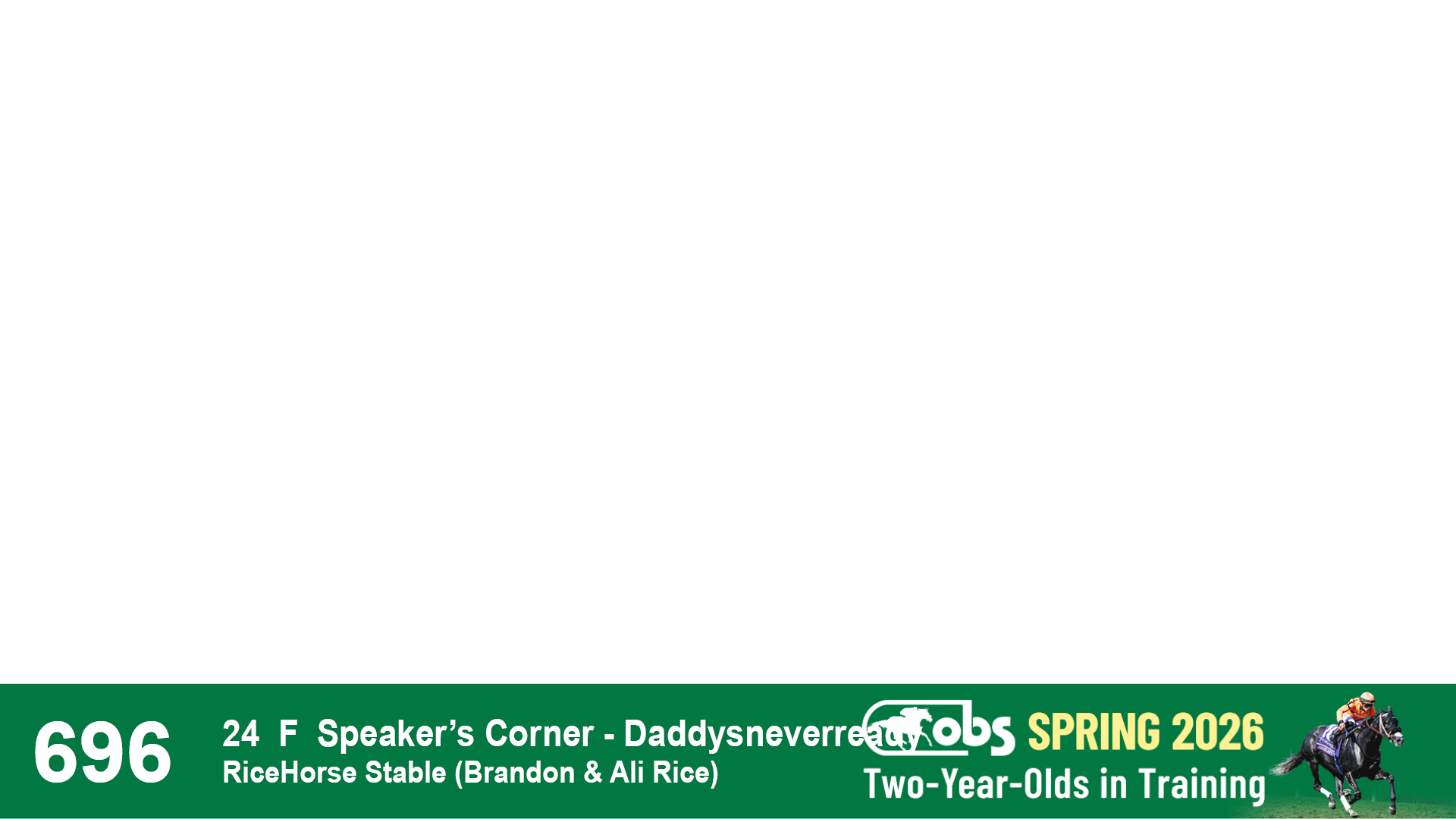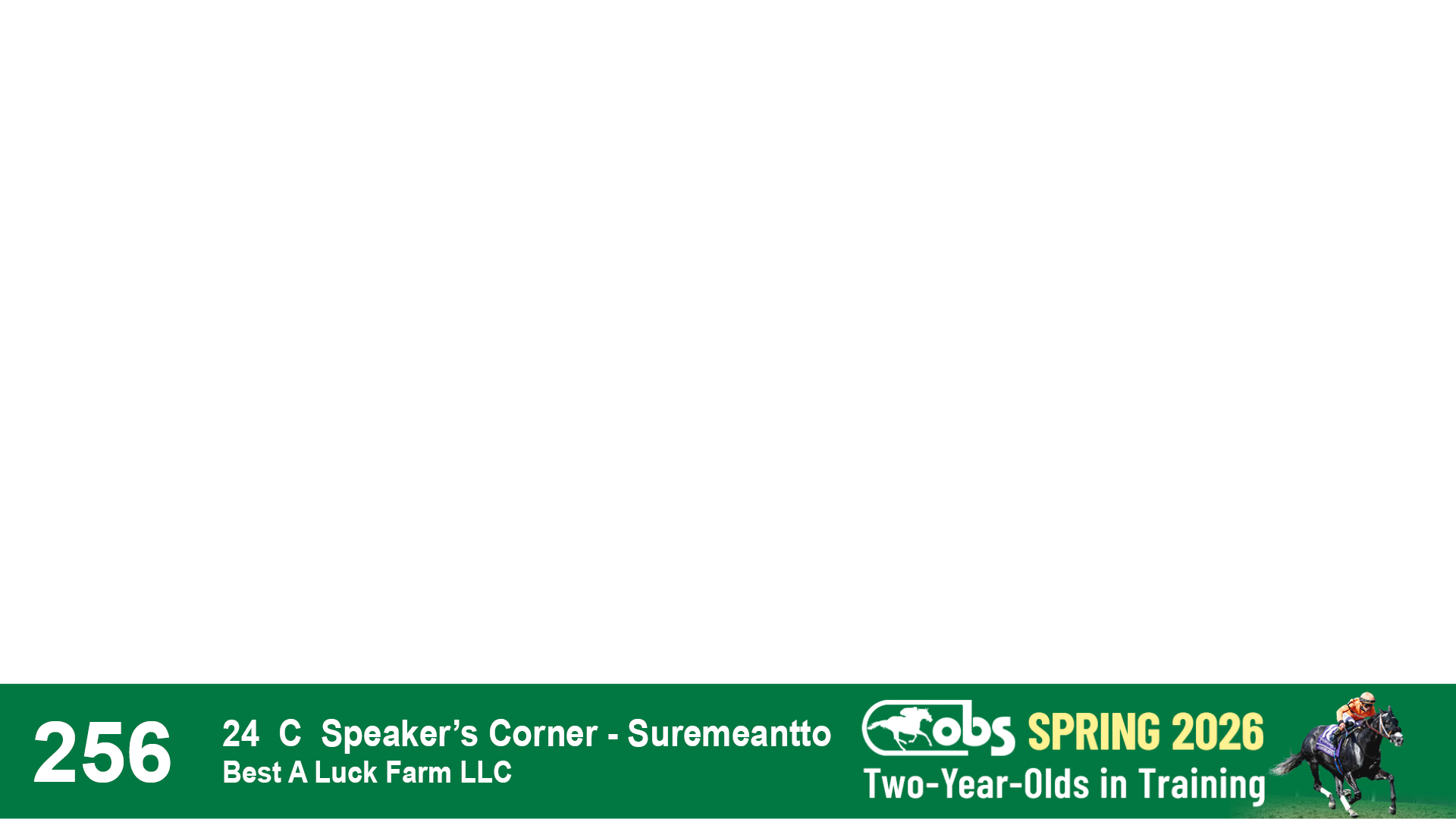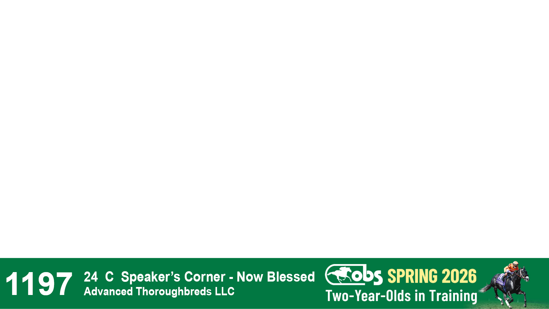 | 1197 | Slate | Lower-Third | 4/3/2024 | C | Speaker's Corner | Now Blessed | Advanced Thoroughbreds LLC | 1200 | 1036 | 784 | 17 | |