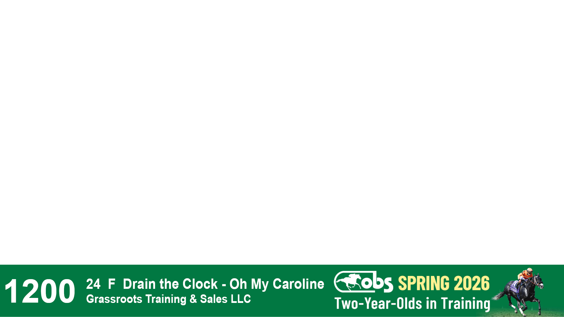 | 1200 | Slate | Lower-Third | 2/22/2024 | F | Drain the Clock | Oh My Caroline | Grassroots Training & Sales LLC, Agent I | 1203 | 281 | 787 | 346 | |