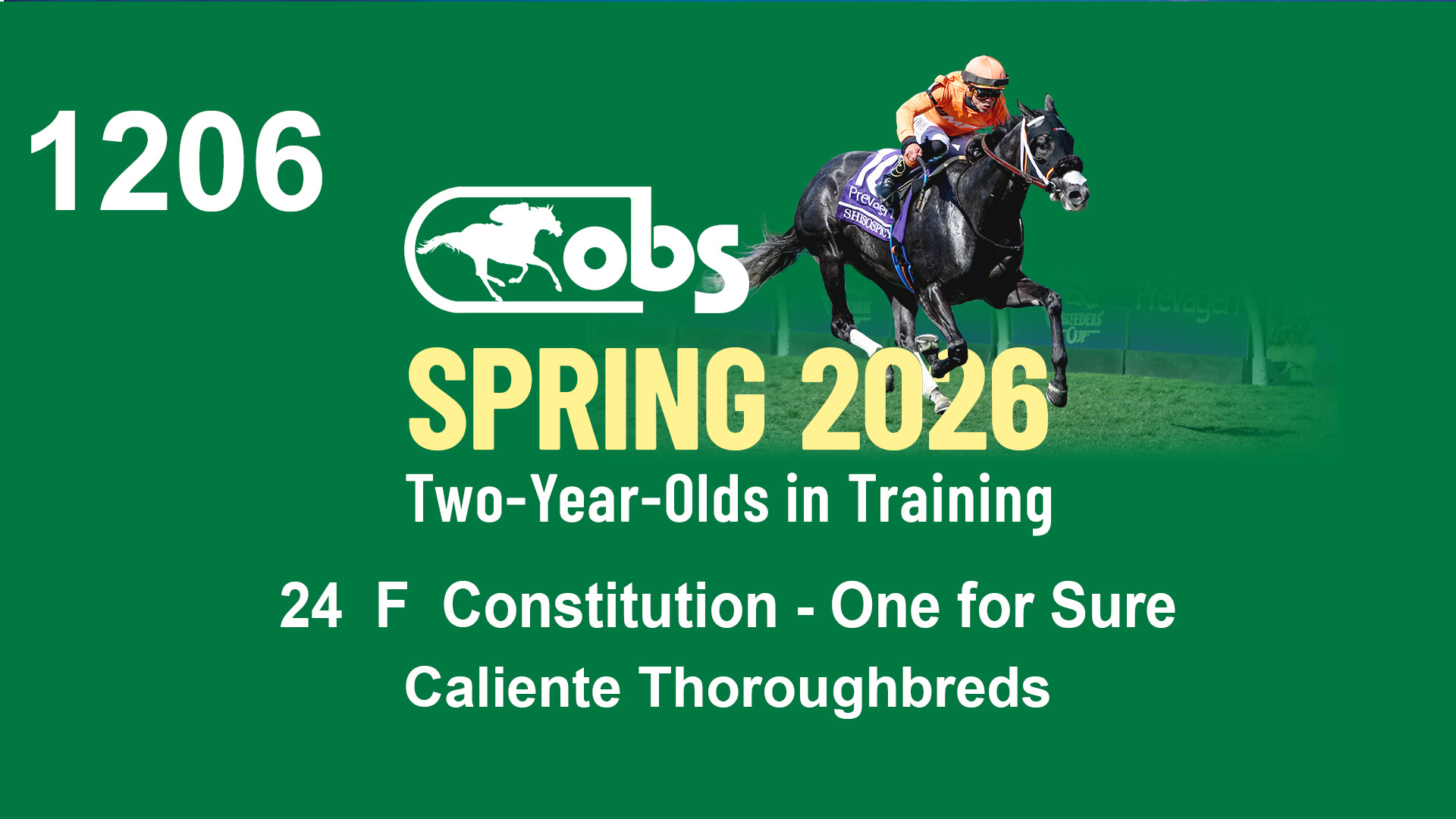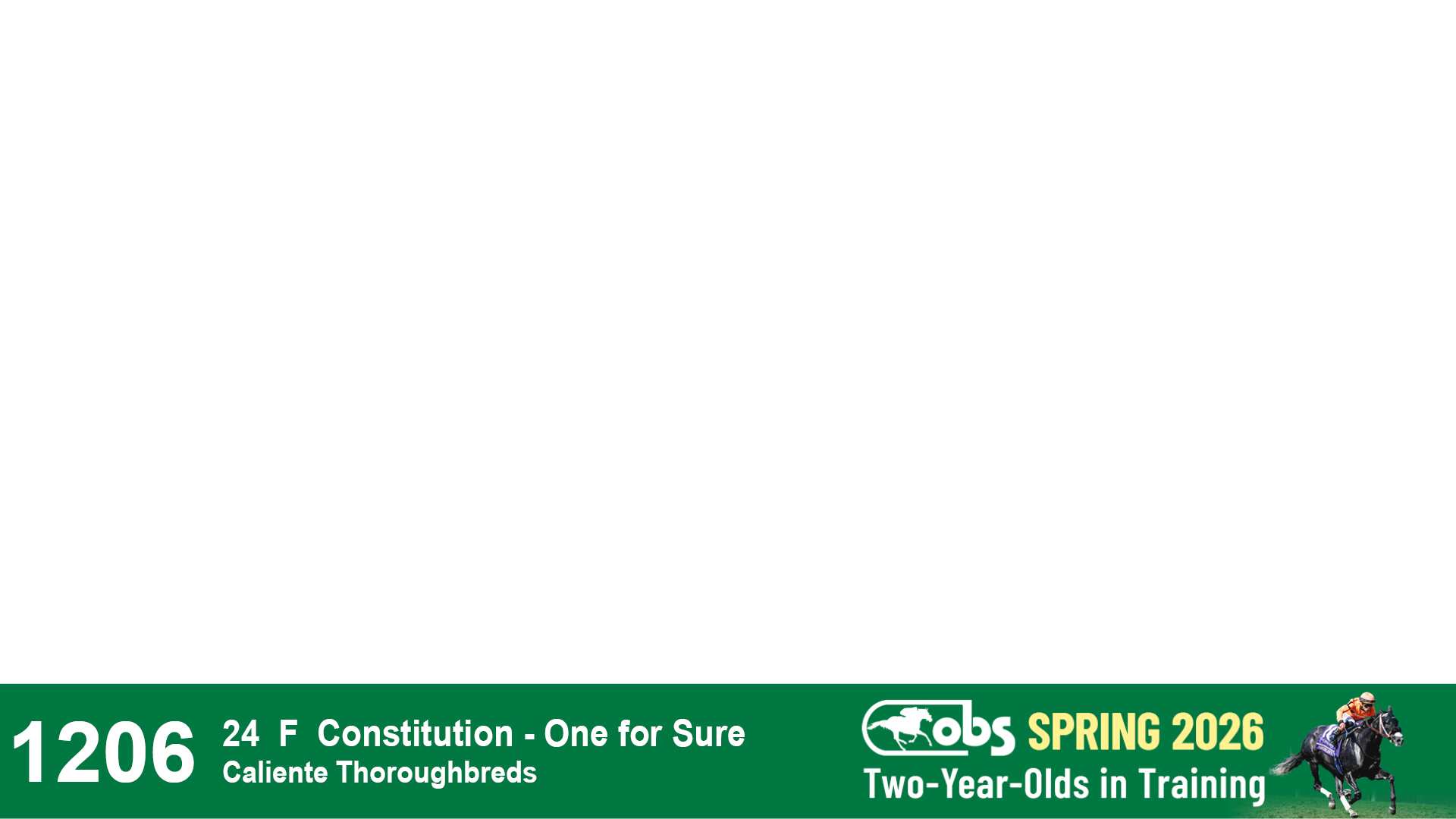 | 1206 | Slate | Lower-Third | 4/18/2024 | F | Constitution | One for Sure | Caliente Thoroughbreds, Agent VII | 1208 | 159 | 793 | 98 | |