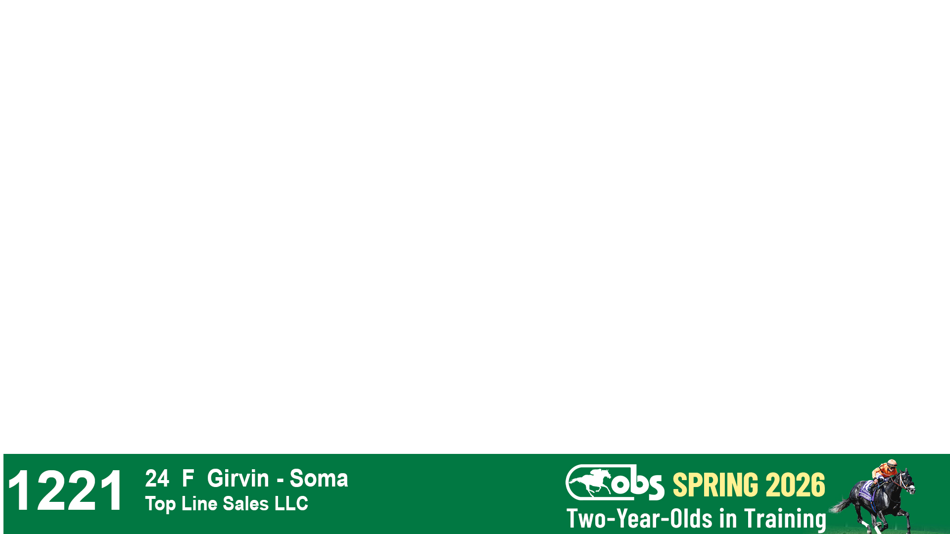 | 32 | Slate | Lower-Third | 3/3/2024 | C | Tale of Silence | Pleasant Orb | Lucan Bloodstock (Karl Keegan), Agent | 107 | 1058 | 842 | 567 | |
