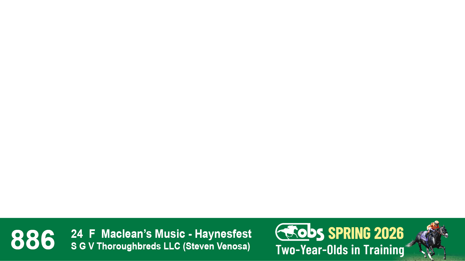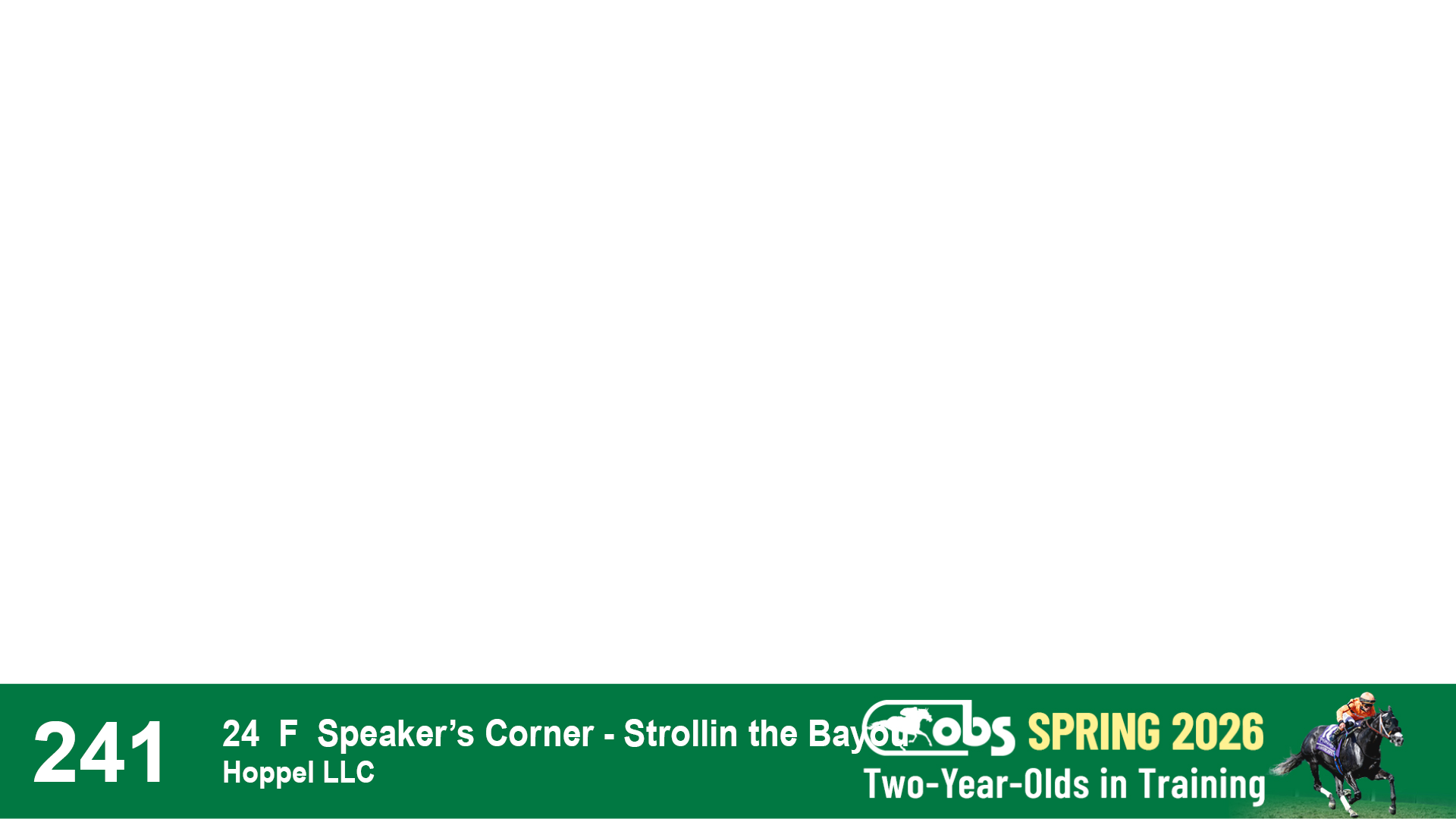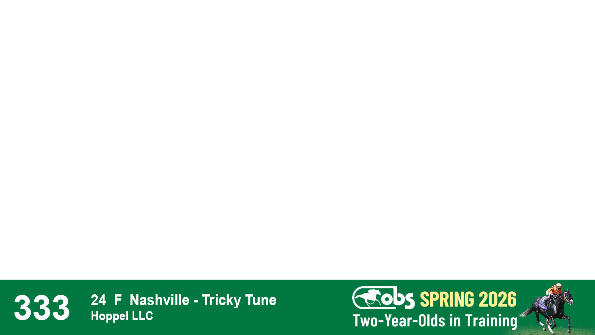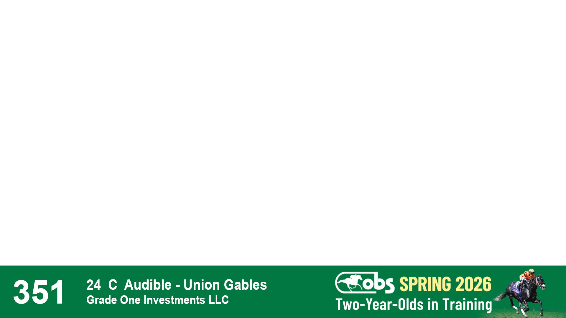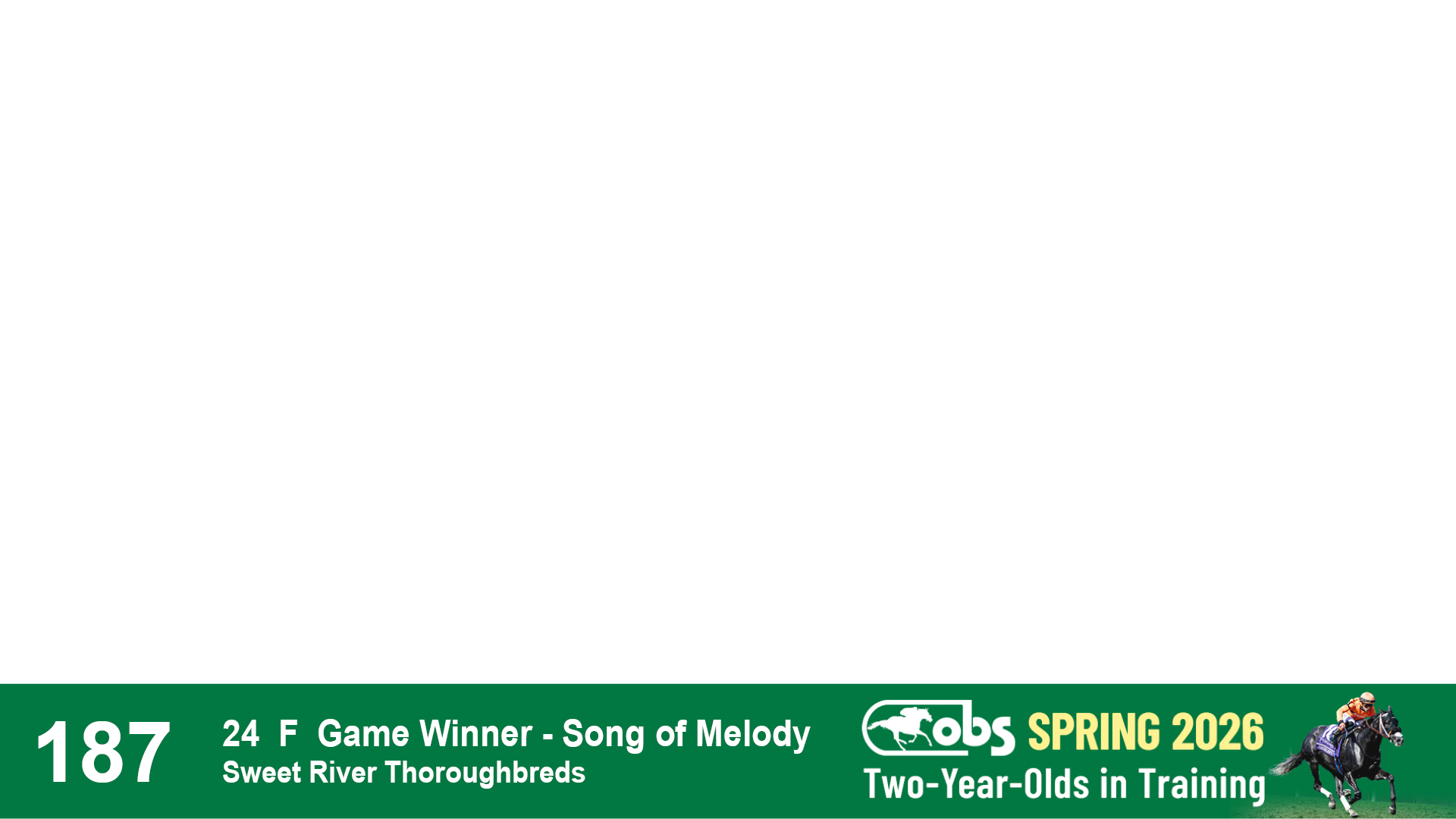 | 87 | Slate | Lower-Third | 2/18/2024 | C | Mandaloun | Rever de Vous | Grade One Investments LLC, Agent XVII | 161 | 701 | 893 | 302 | |