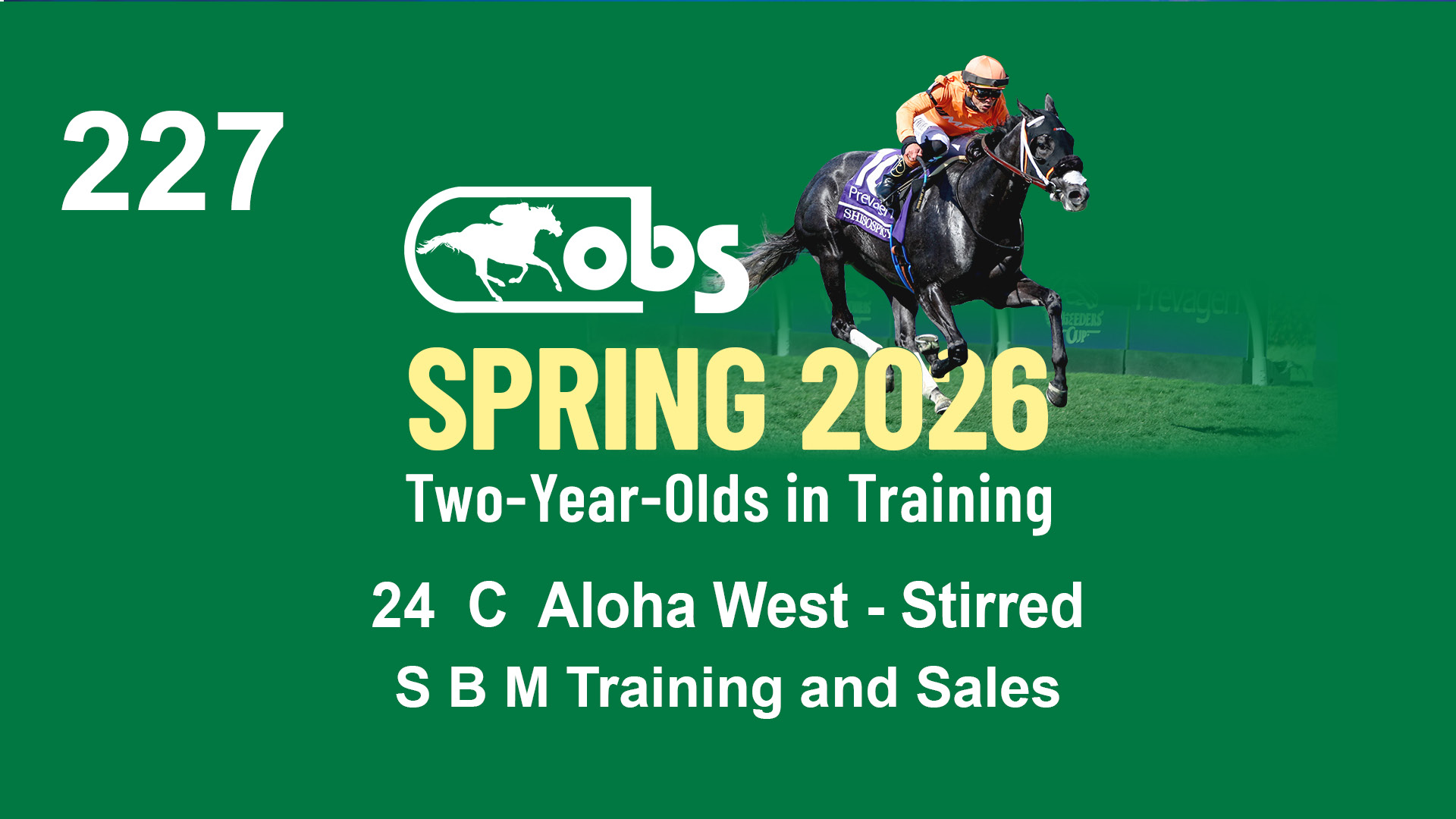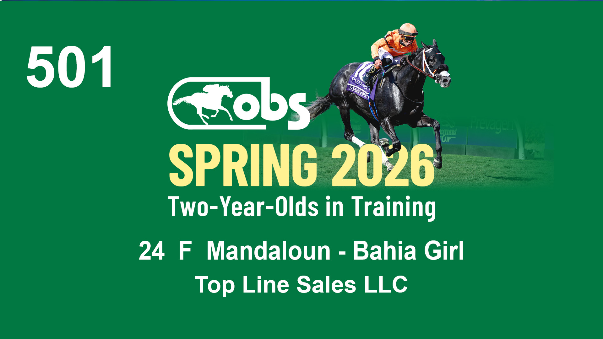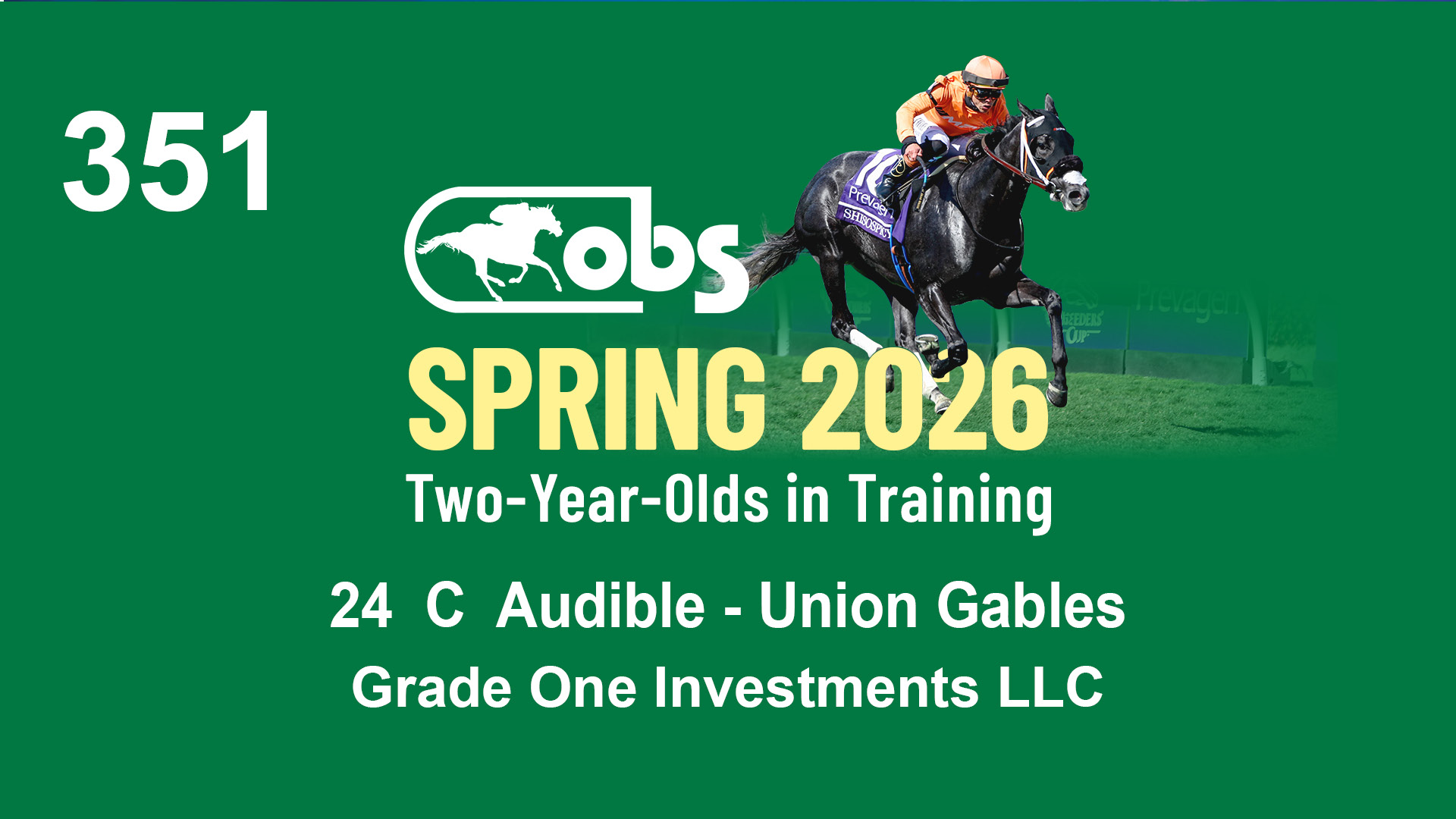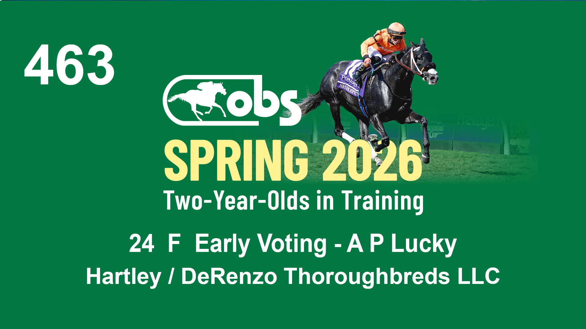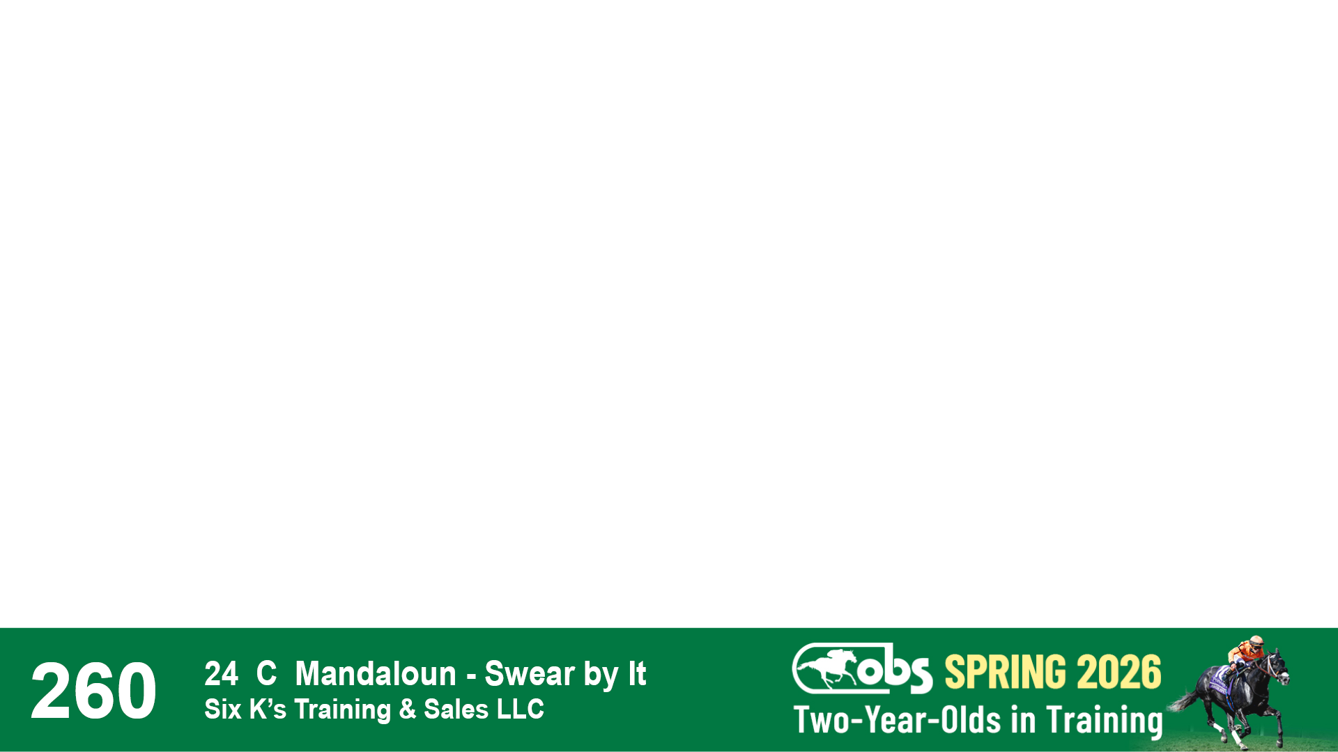 | 87 | Slate | Lower-Third | 2/18/2024 | C | Mandaloun | Rever de Vous | Grade One Investments LLC, Agent XVII | 161 | 701 | 893 | 302 | |
