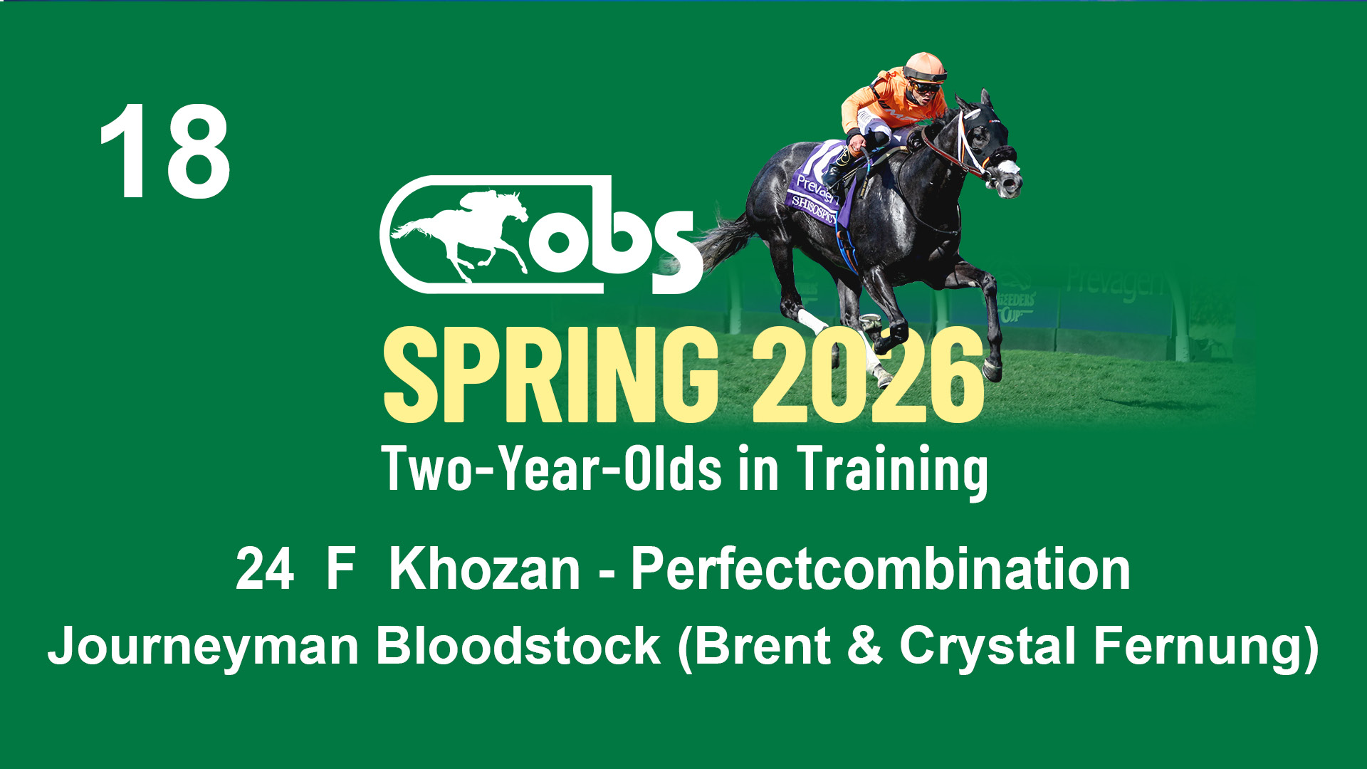 | 18 | Slate | Lower-Third | 2/23/2024 | F | Khozan | Perfectcombination | Journeyman Bloodstock (Brent & Crystal Fernung), Agent III | 94 | 630 | 825 | 454 | |