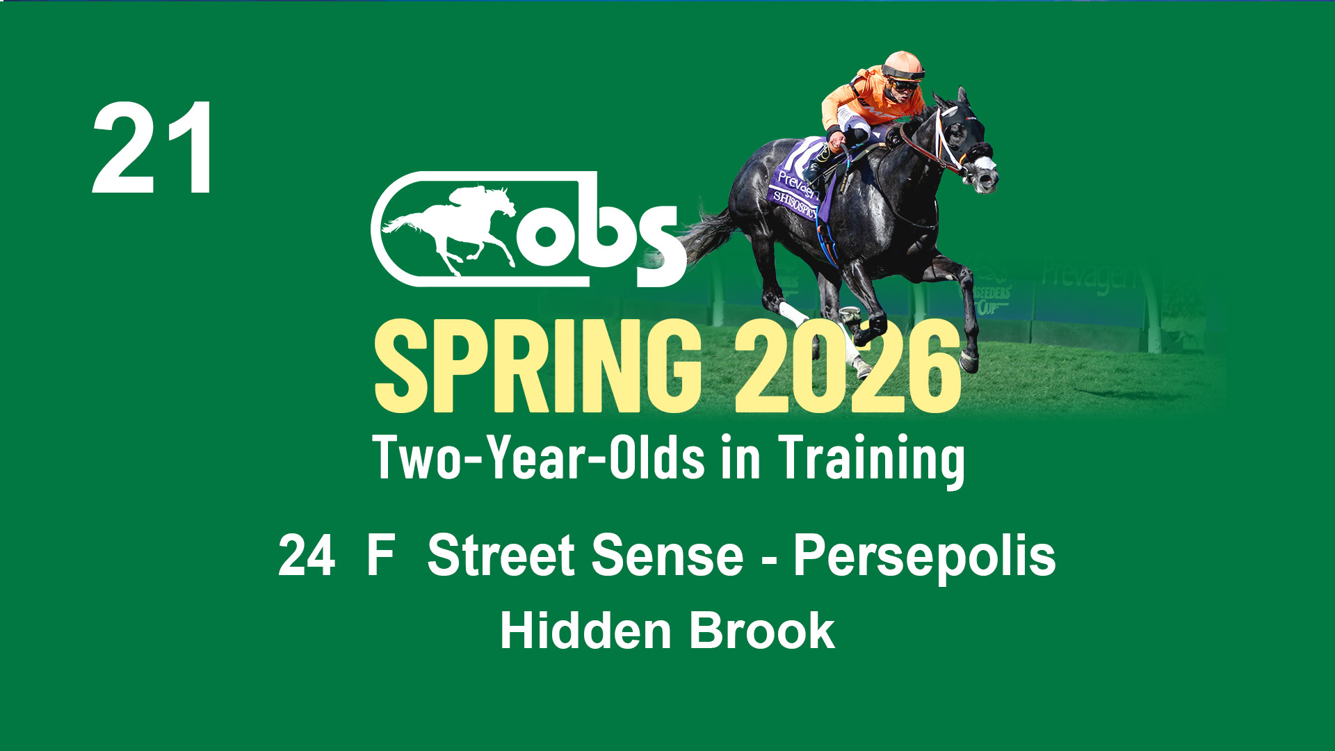 | 21 | Slate | Lower-Third | 4/7/2024 | F | Street Sense | Persepolis | Hidden Brook, Agent VI | 97 | 1041 | 828 | 400 | |