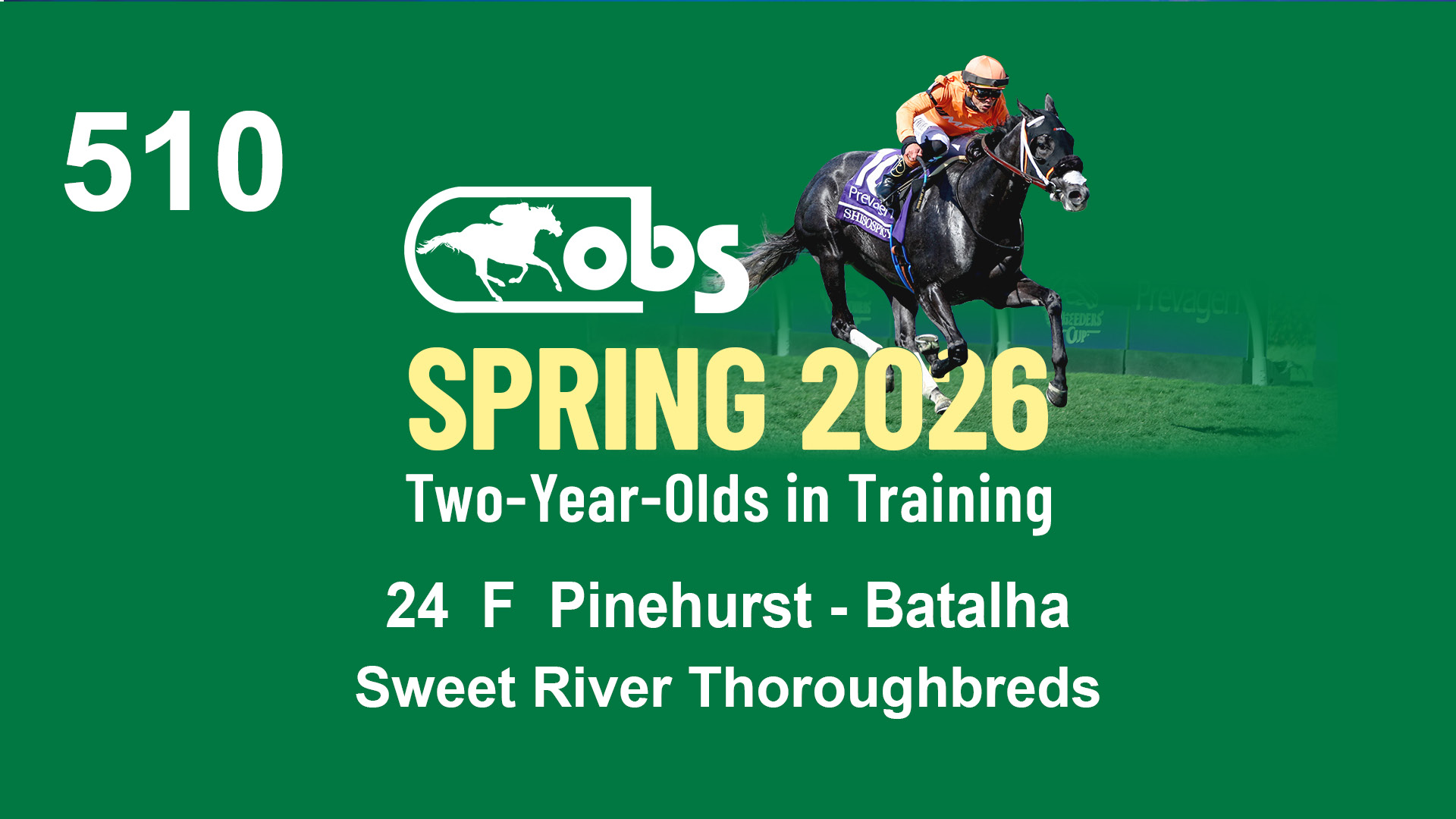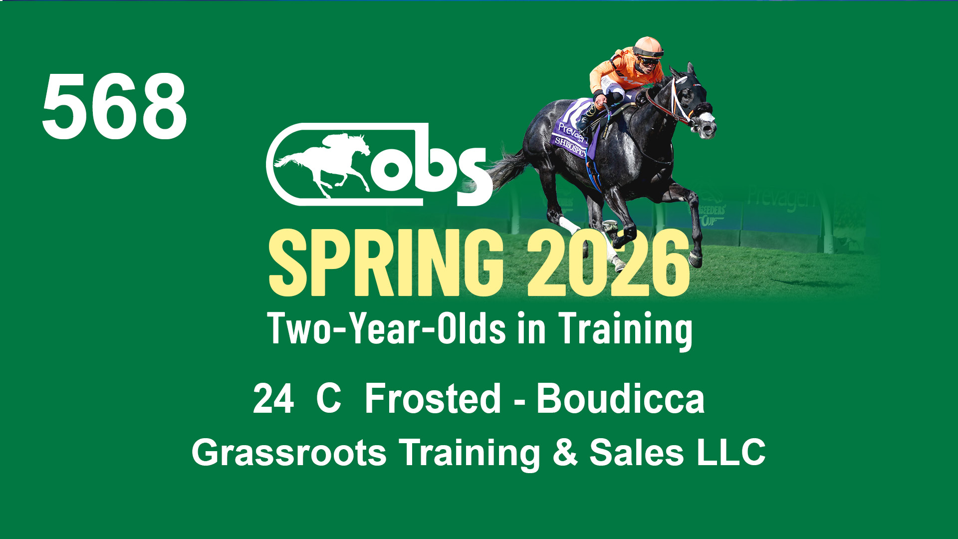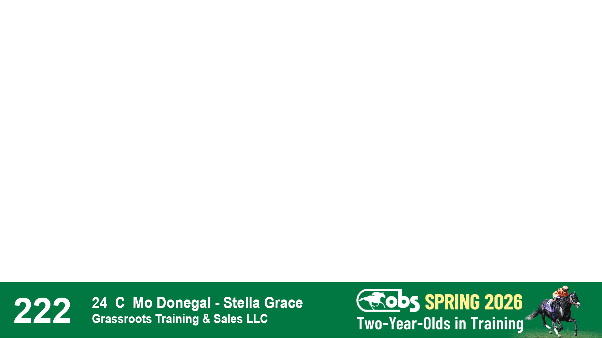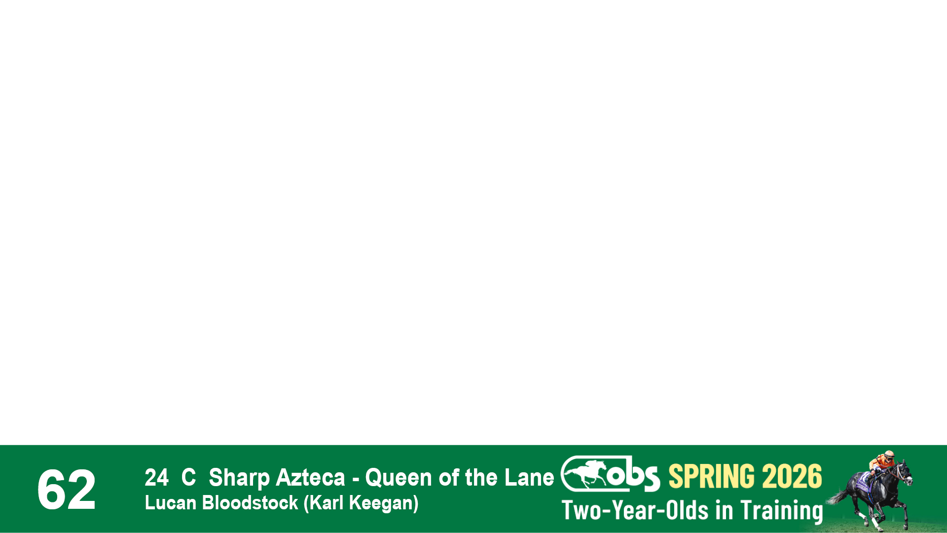 | 62 | Slate | Lower-Third | 1/30/2024 | C | Sharp Azteca | Queen of the Lane | Lucan Bloodstock (Karl Keegan), Agent IV | 136 | 1005 | 868 | 572 | |