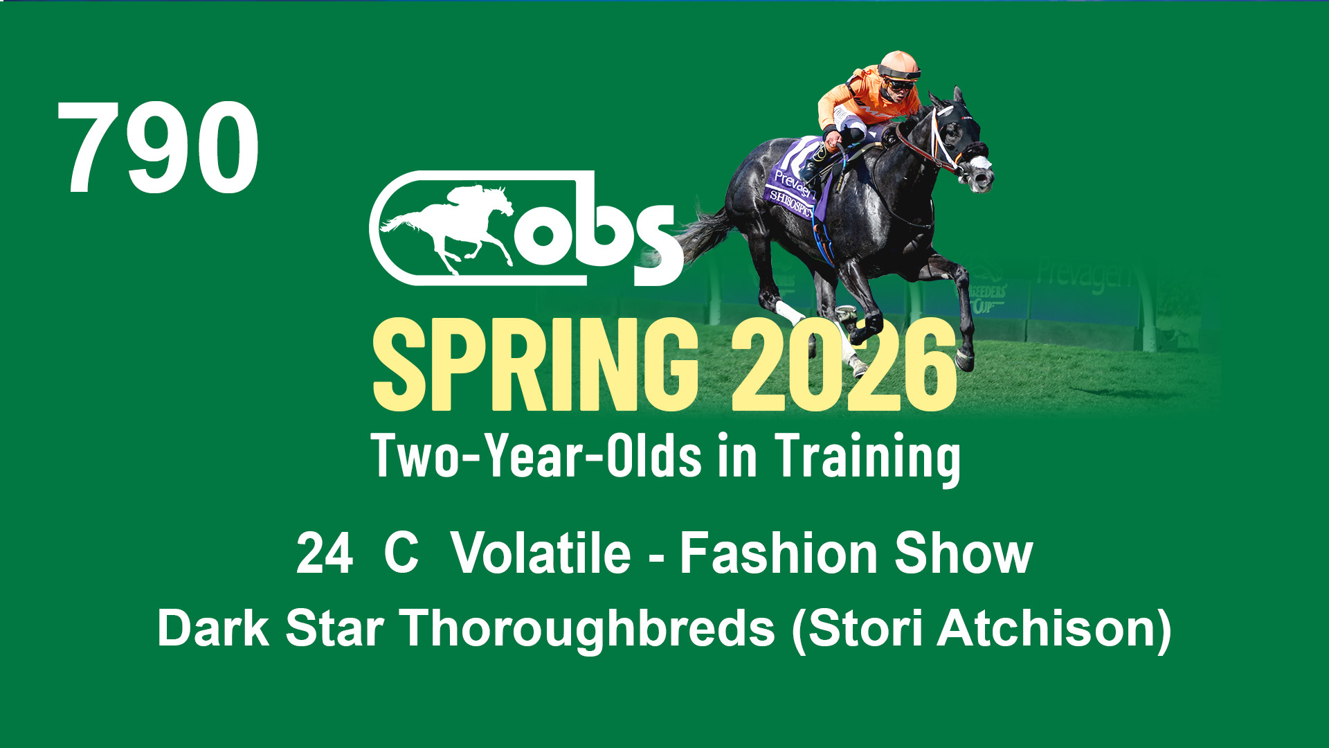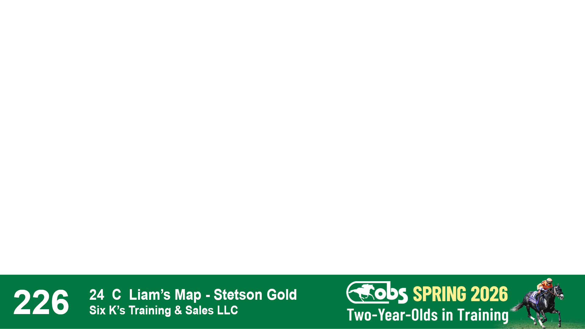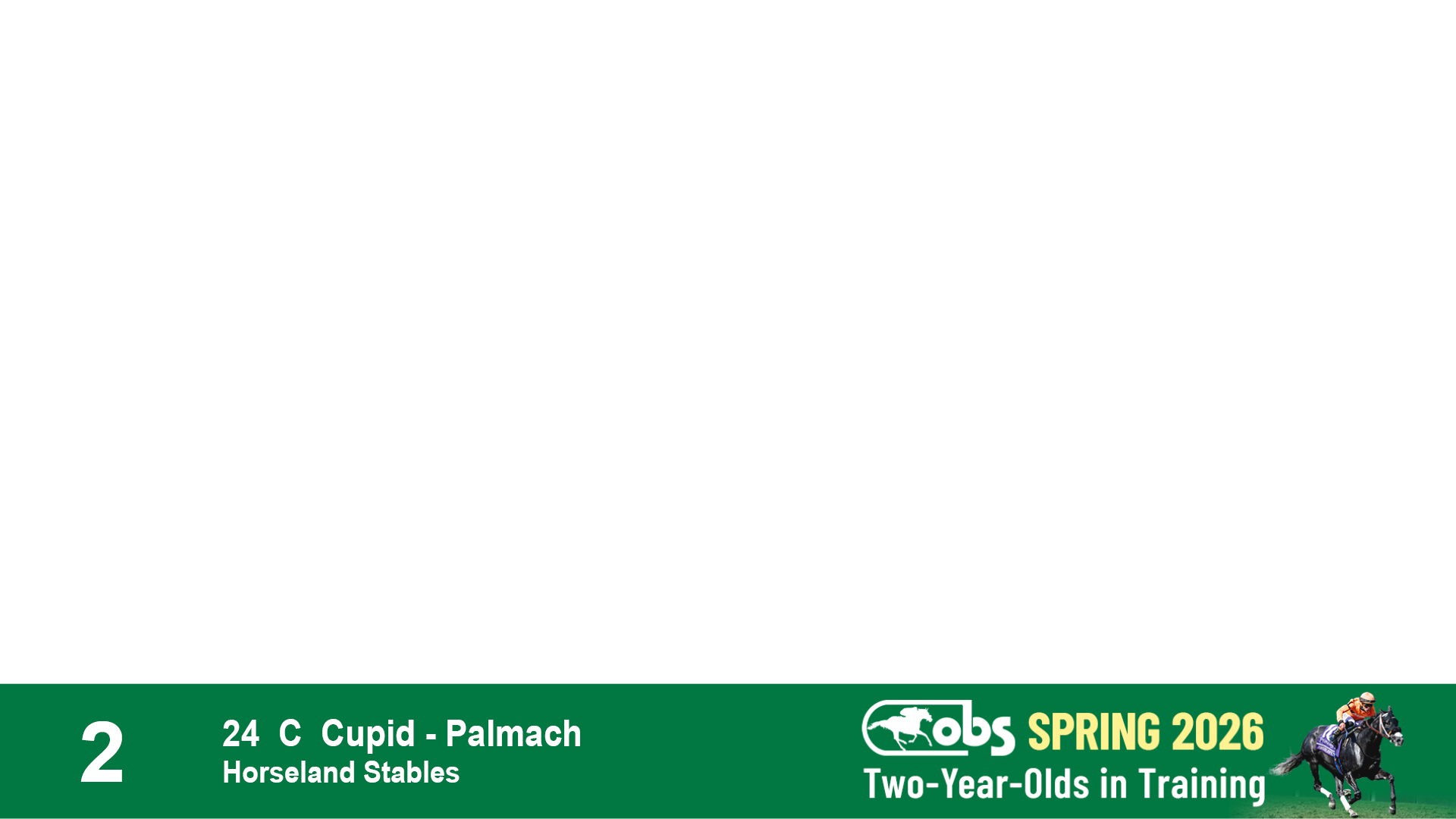 | 2 | Slate | Lower-Third | 5/10/2024 | C | Cupid | Palmach | Horseland Stables, Agent I | 80 | 196 | 809 | 447 | |