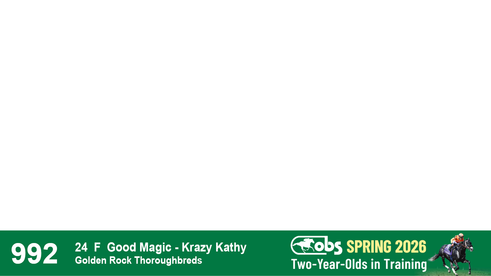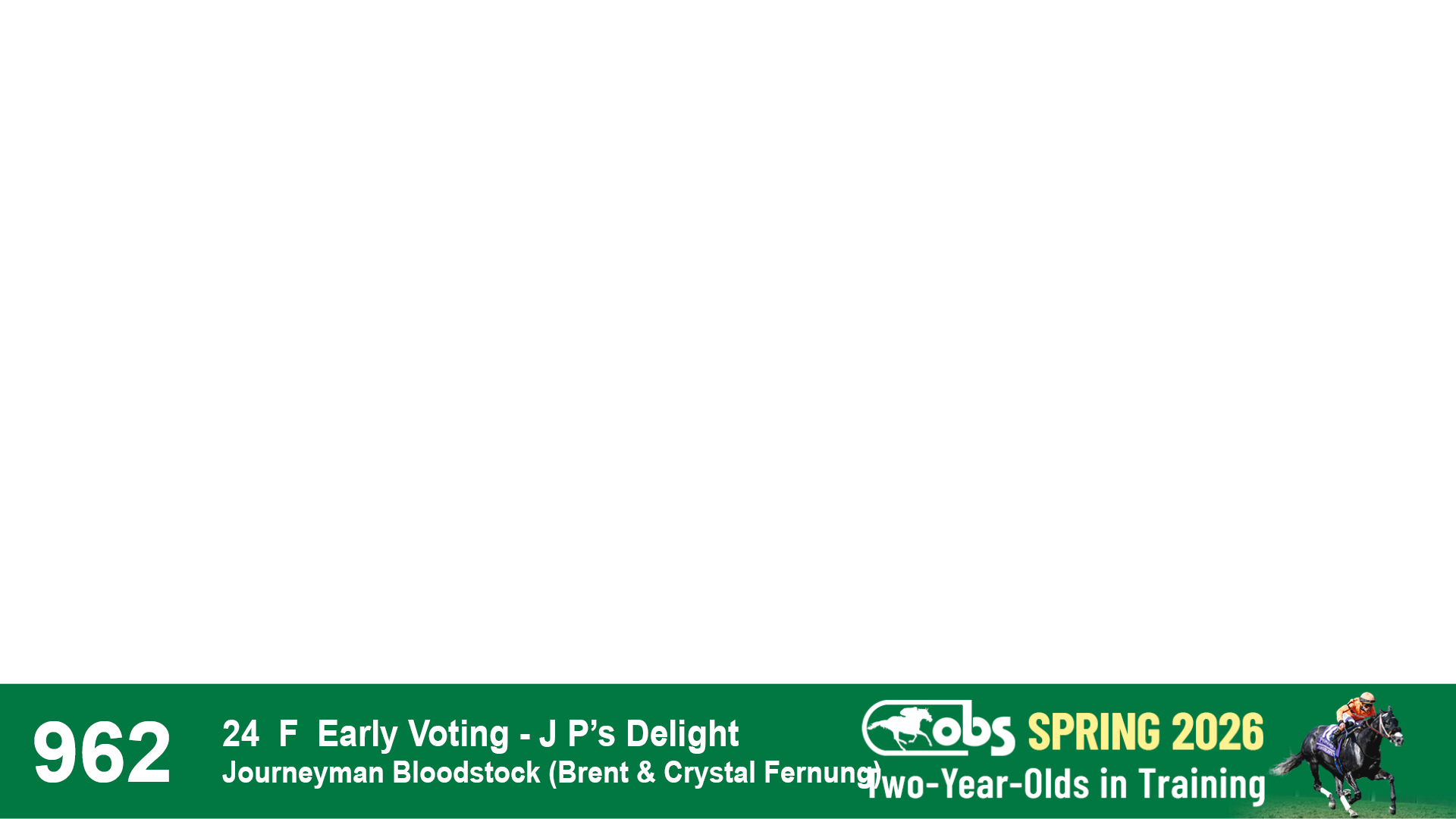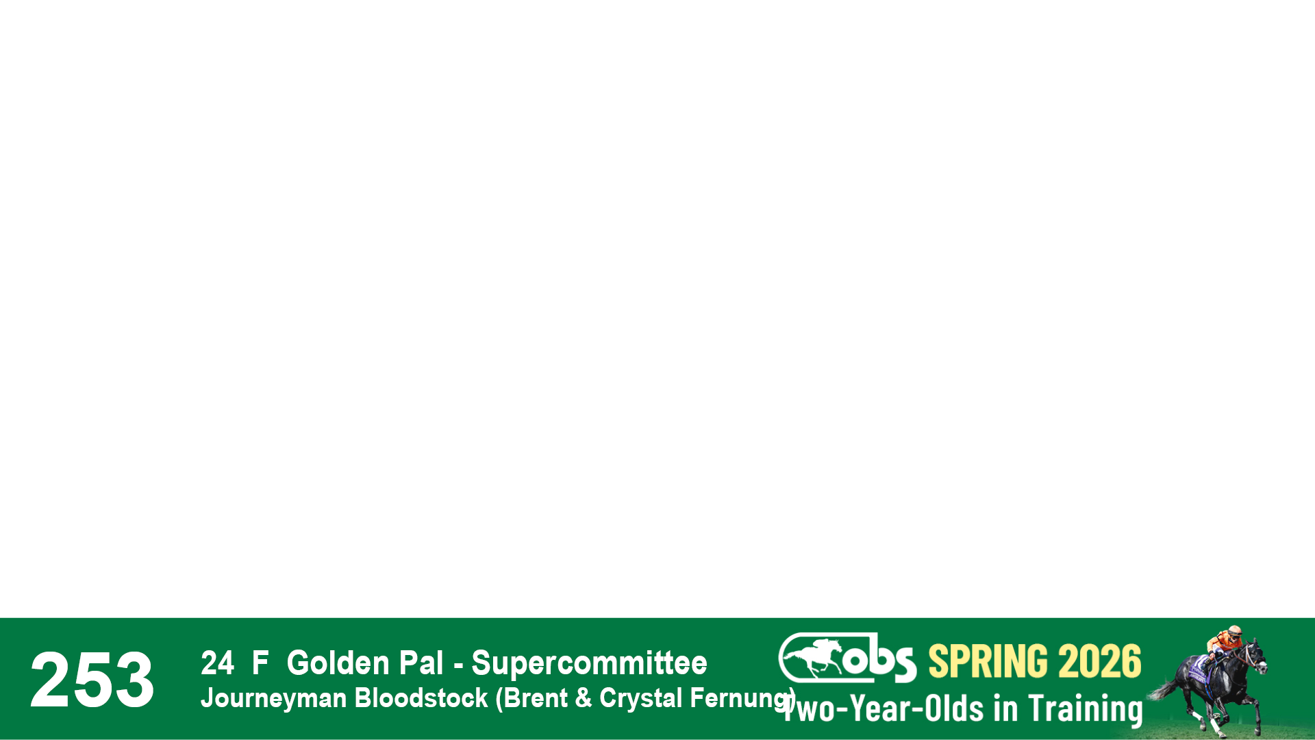 | 40 | Slate | Lower-Third | 3/29/2024 | F | Golden Pal | Pricing | Hidden Brook, Agent VII | 115 | 409 | 847 | 401 | |