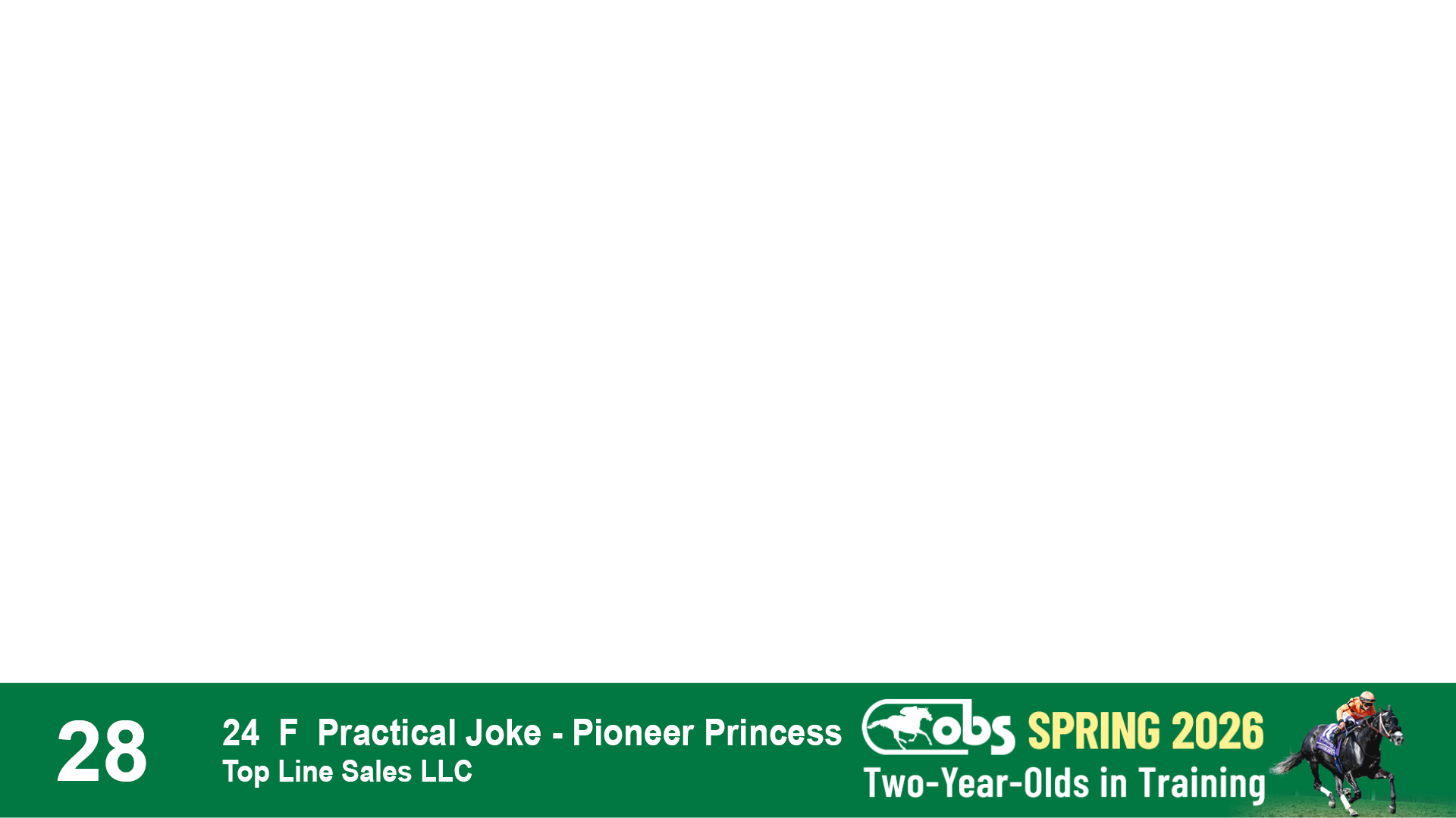 | 28 | Slate | Lower-Third | 4/21/2024 | F | Practical Joke | Pioneer Princess | Top Line Sales LLC, Agent XXXIV | 103 | 938 | 835 | 1153 | |