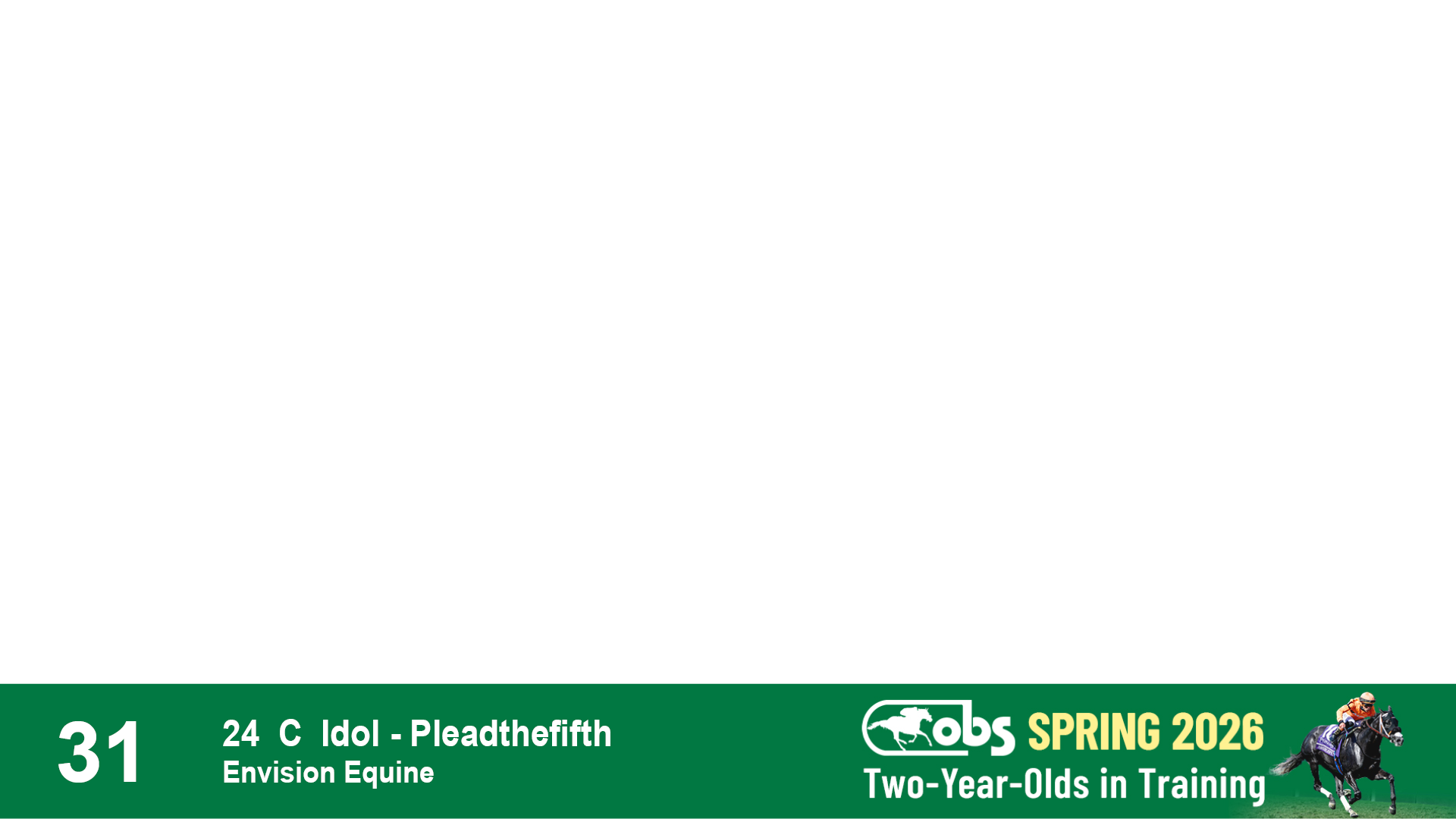 | 31 | Slate | Lower-Third | 4/14/2024 | C | Idol | Pleadthefifth | Envision Equine, Agent I | 106 | 509 | 838 | 221 | |