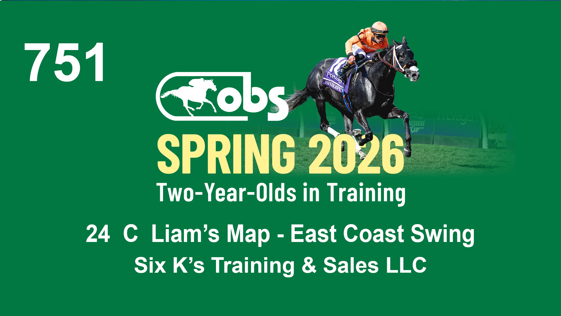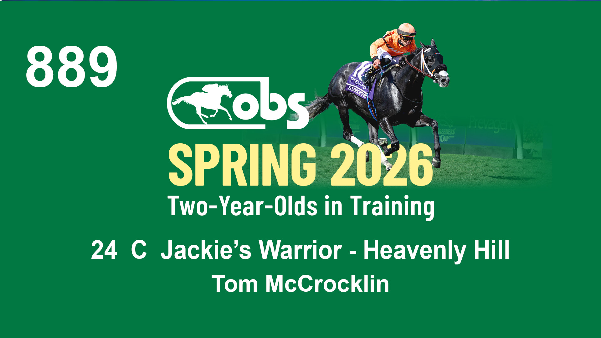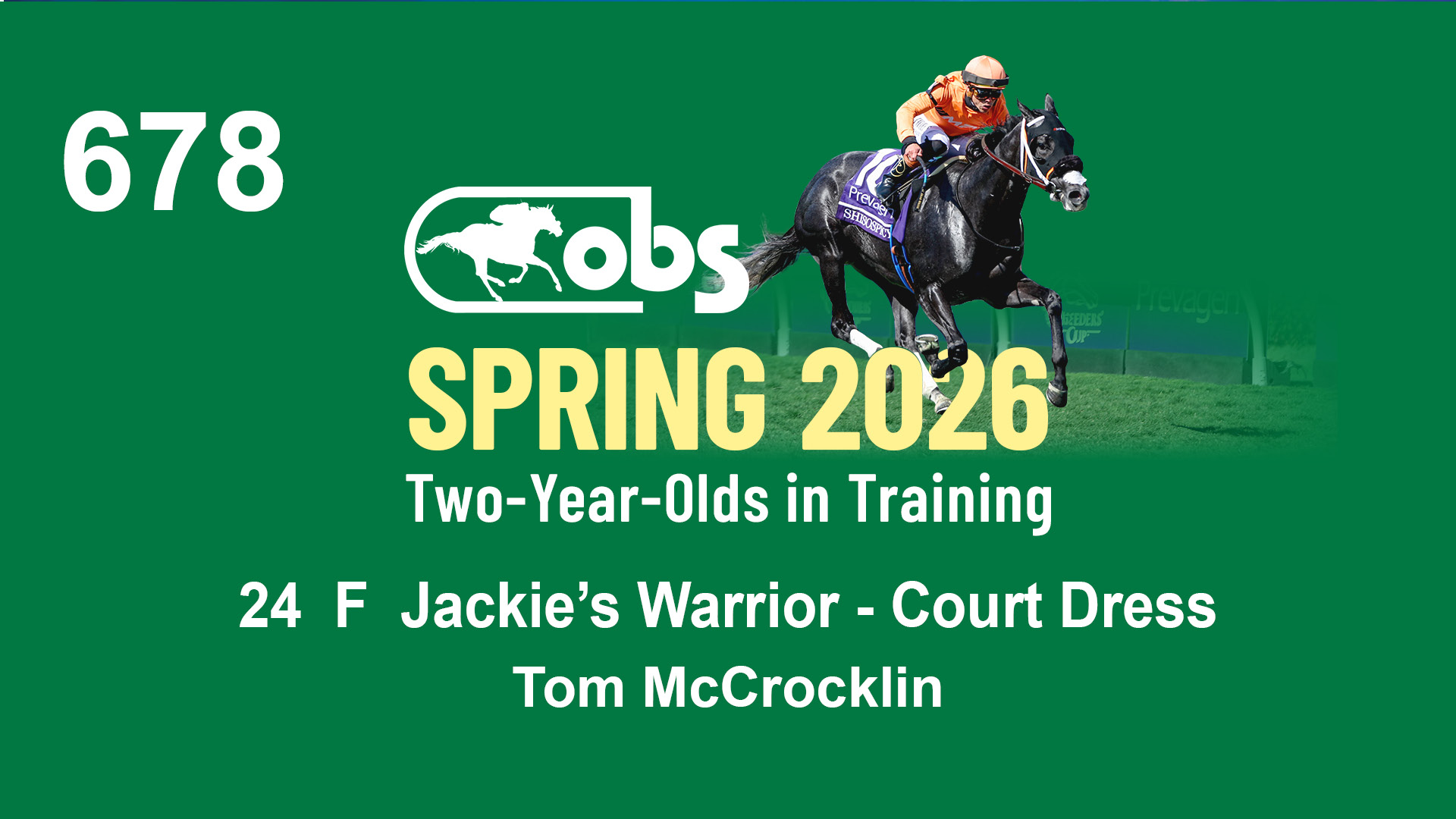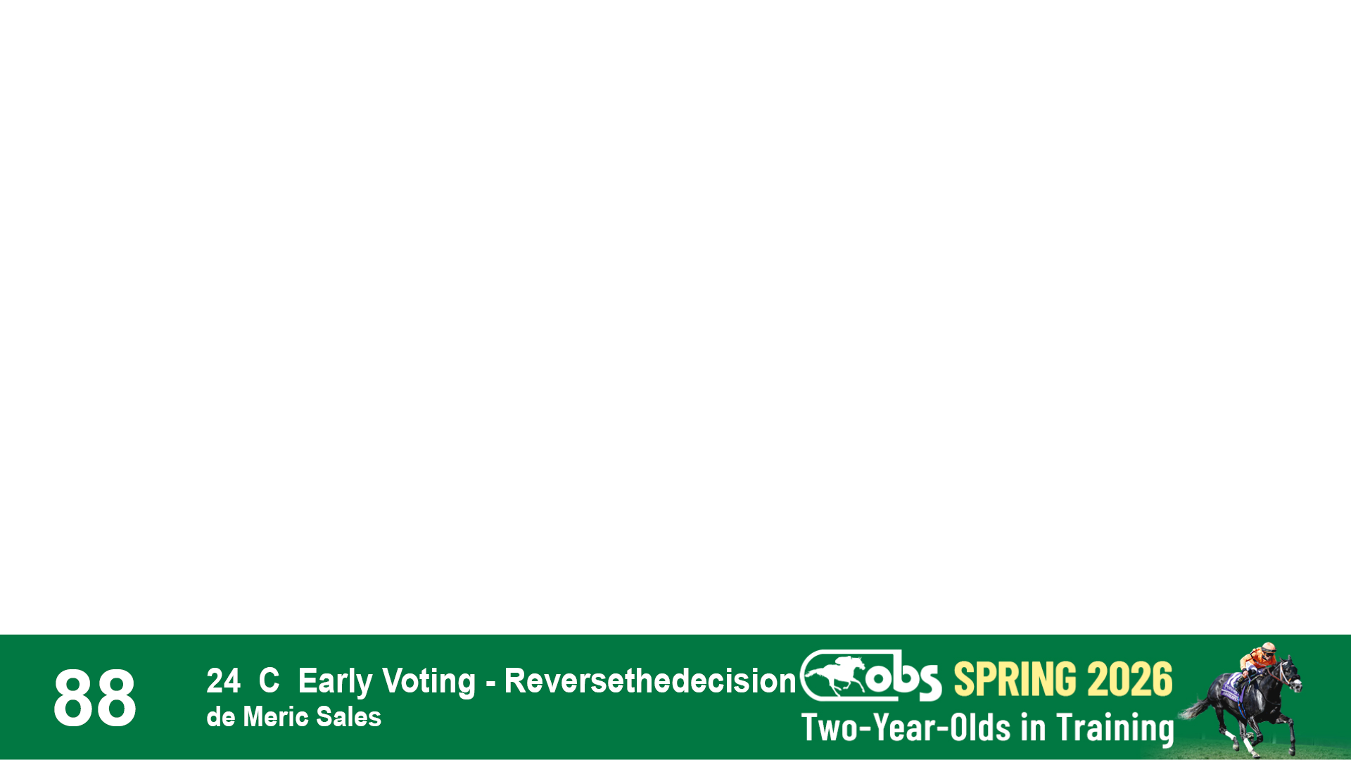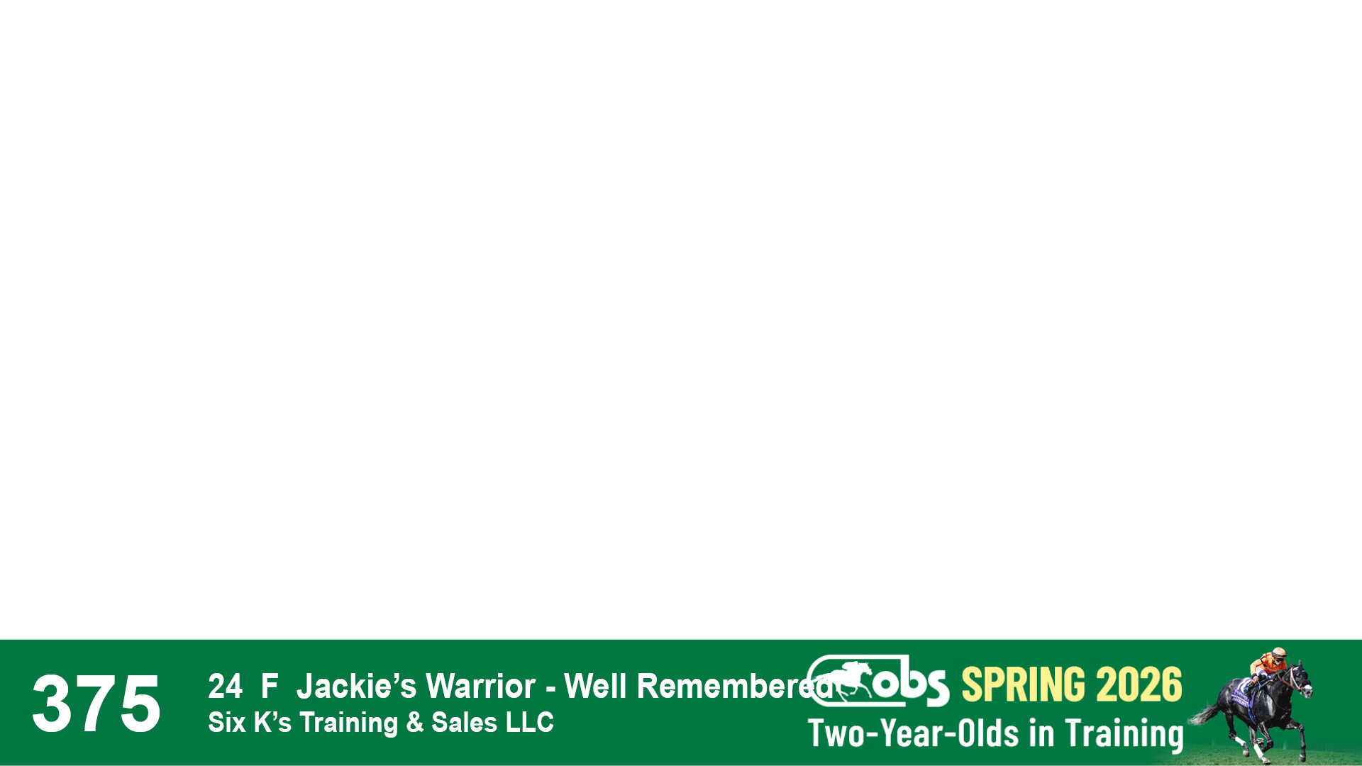 | 90 | Slate | Lower-Third | 4/22/2024 | C | Jackie's Warrior | Right Prevails | Sequel Bloodstock, Agent VIII | 164 | 593 | 896 | 974 | |