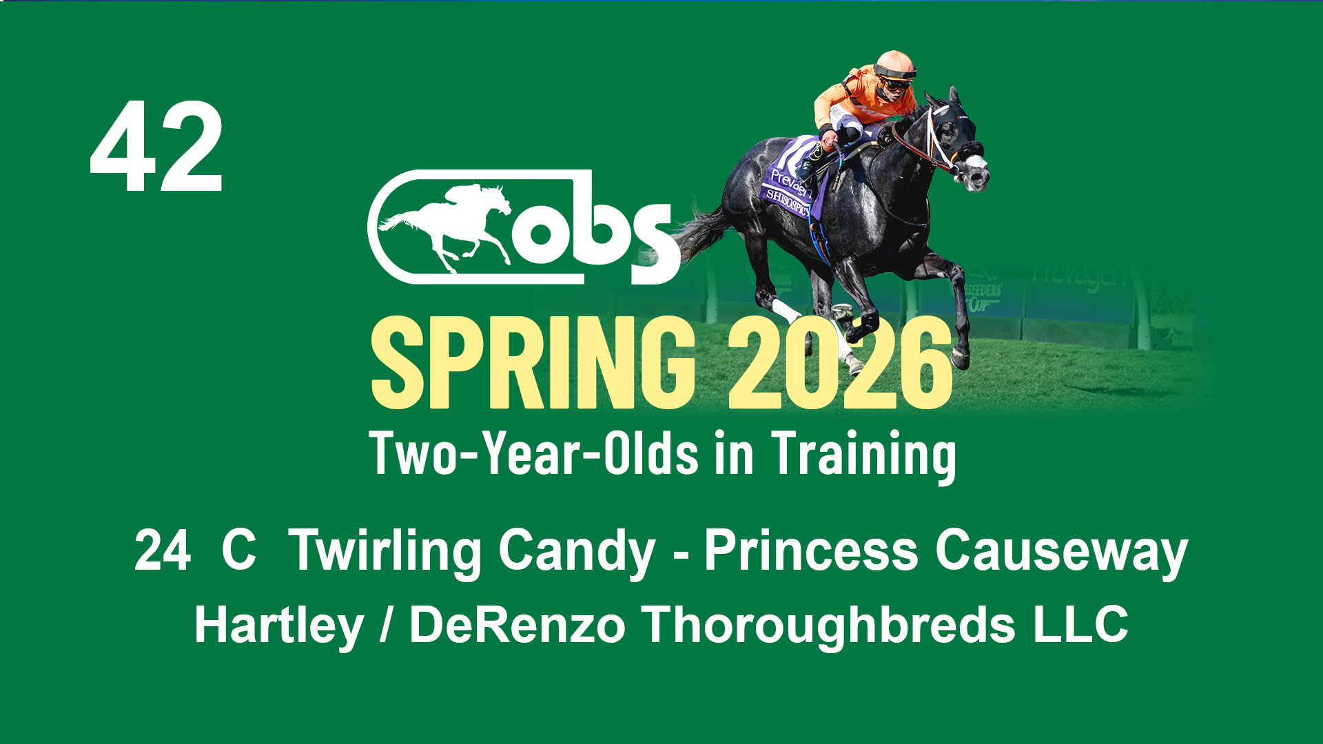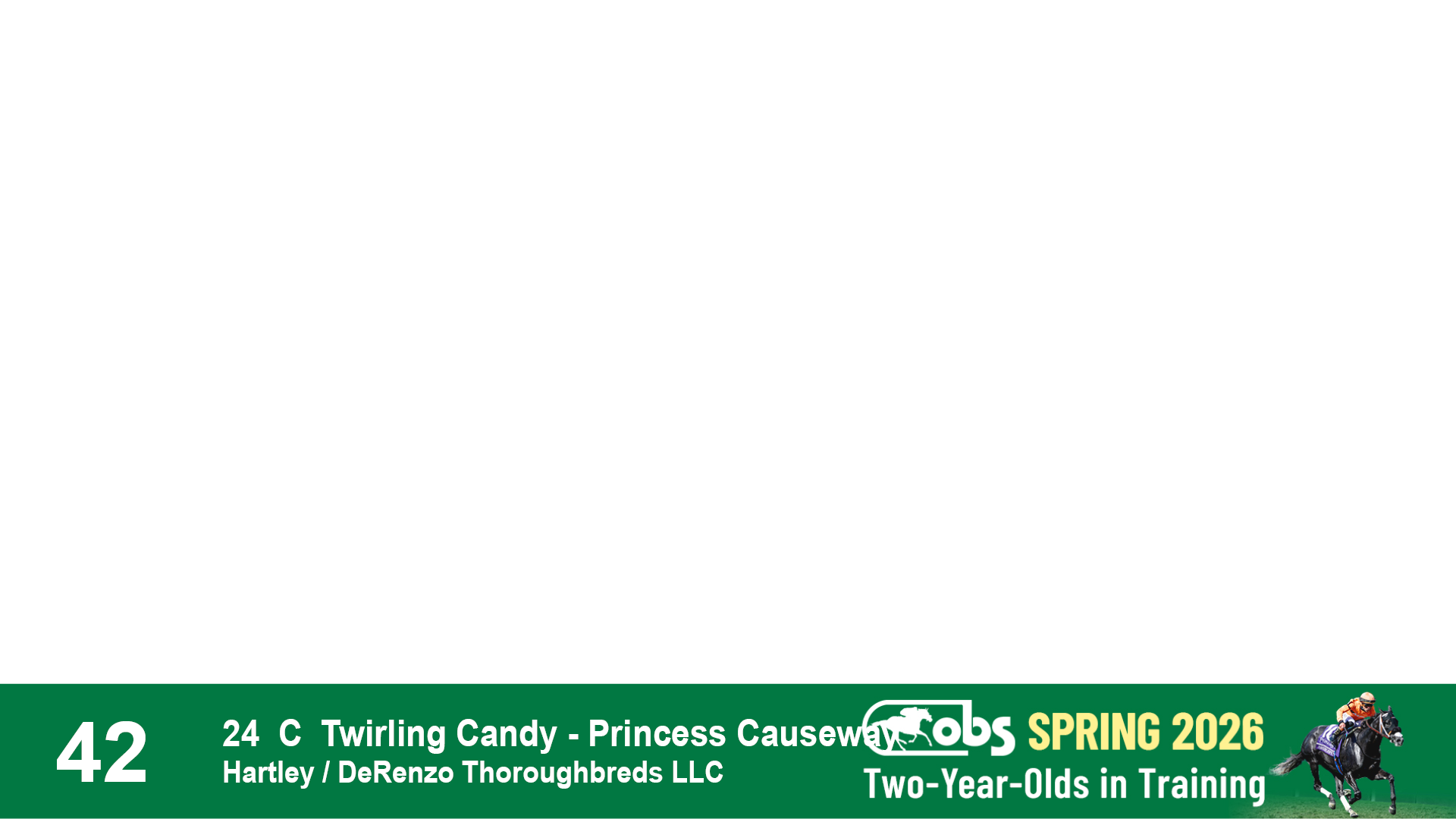 | 42 | Slate | Lower-Third | 5/11/2024 | C | Twirling Candy | Princess Causeway | Hartley / DeRenzo Thoroughbreds LLC, Agent II | 117 | 1074 | 849 | 390 | |