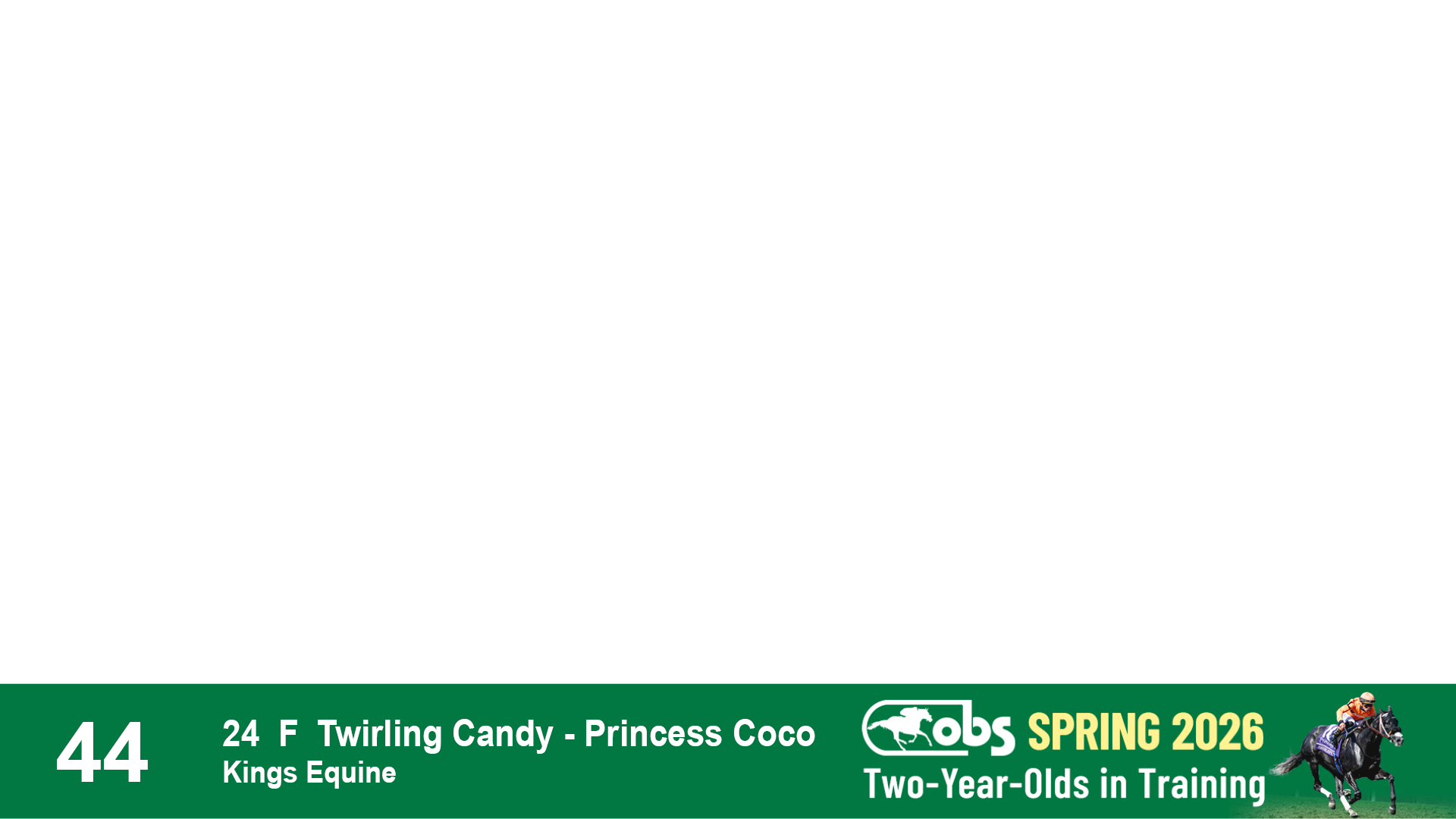 | 44 | Slate | Lower-Third | 2/17/2024 | F | Twirling Candy | Princess Coco | Kings Equine, Agent XII | 119 | 1075 | 851 | 531 | |