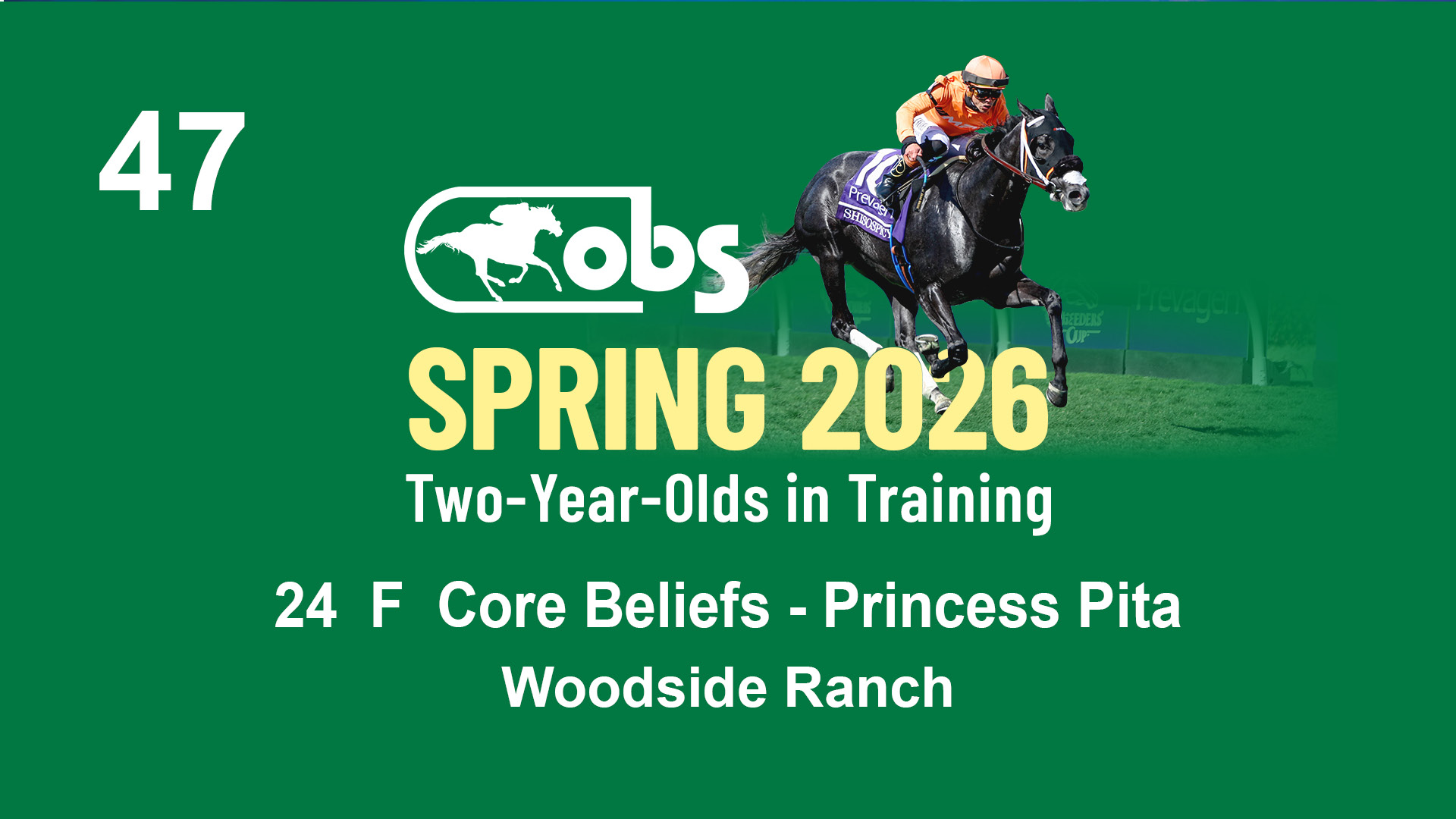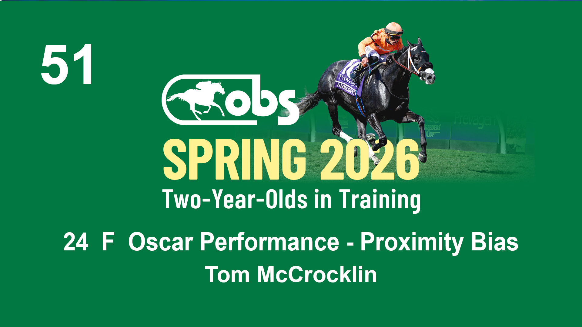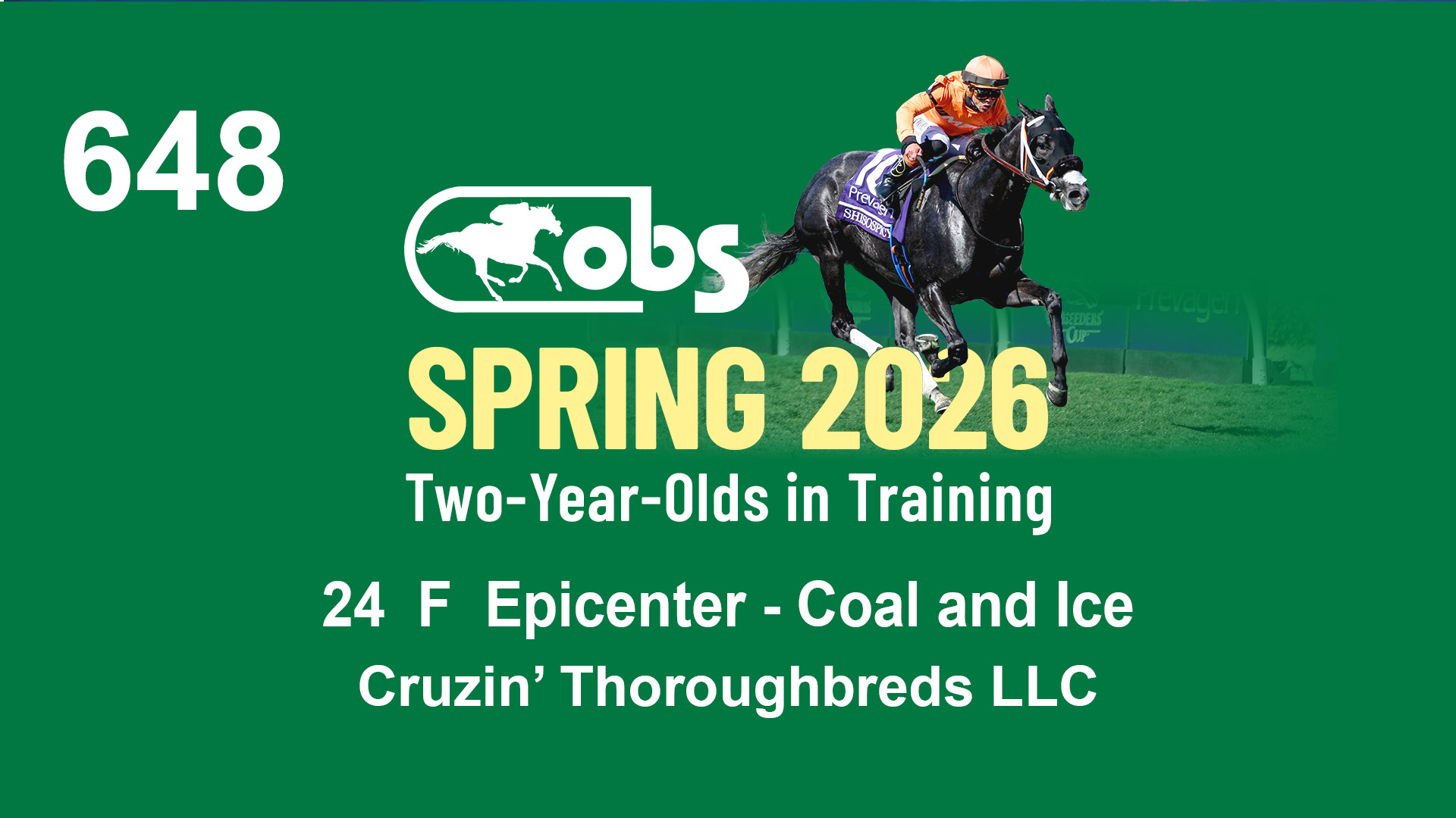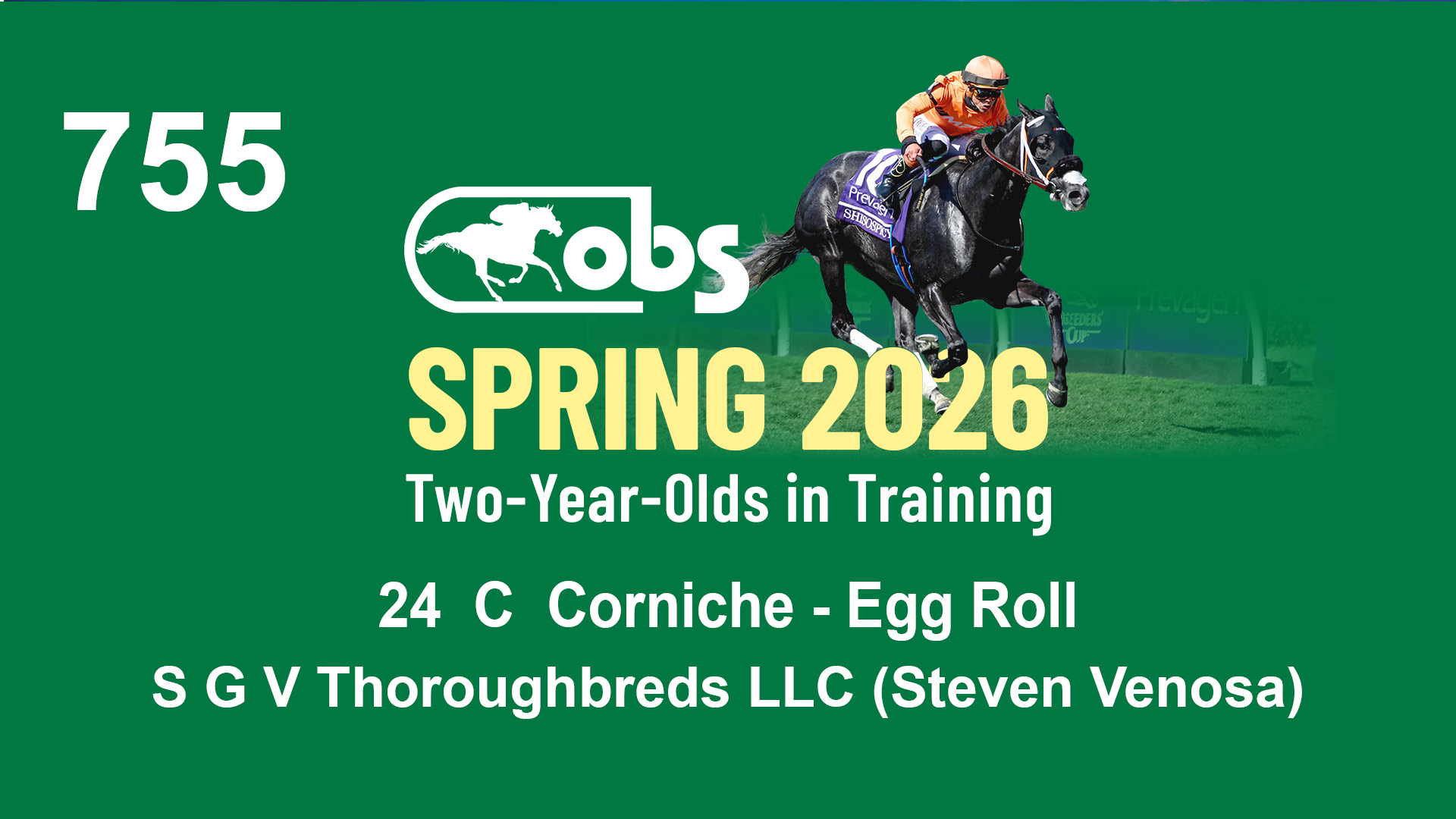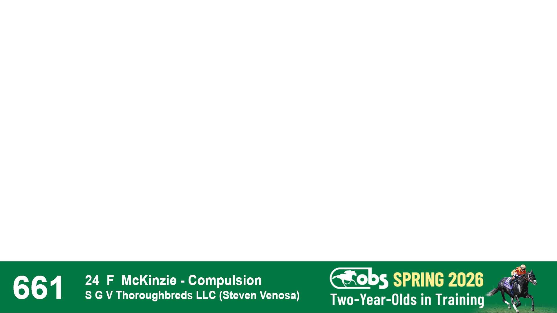 | 48 | Slate | Lower-Third | 4/15/2024 | F | Complexity | Prominent | S G V Thoroughbreds LLC (Steven Venosa), Agent | 123 | 146 | 855 | 982 | |