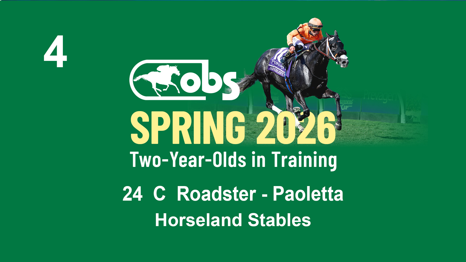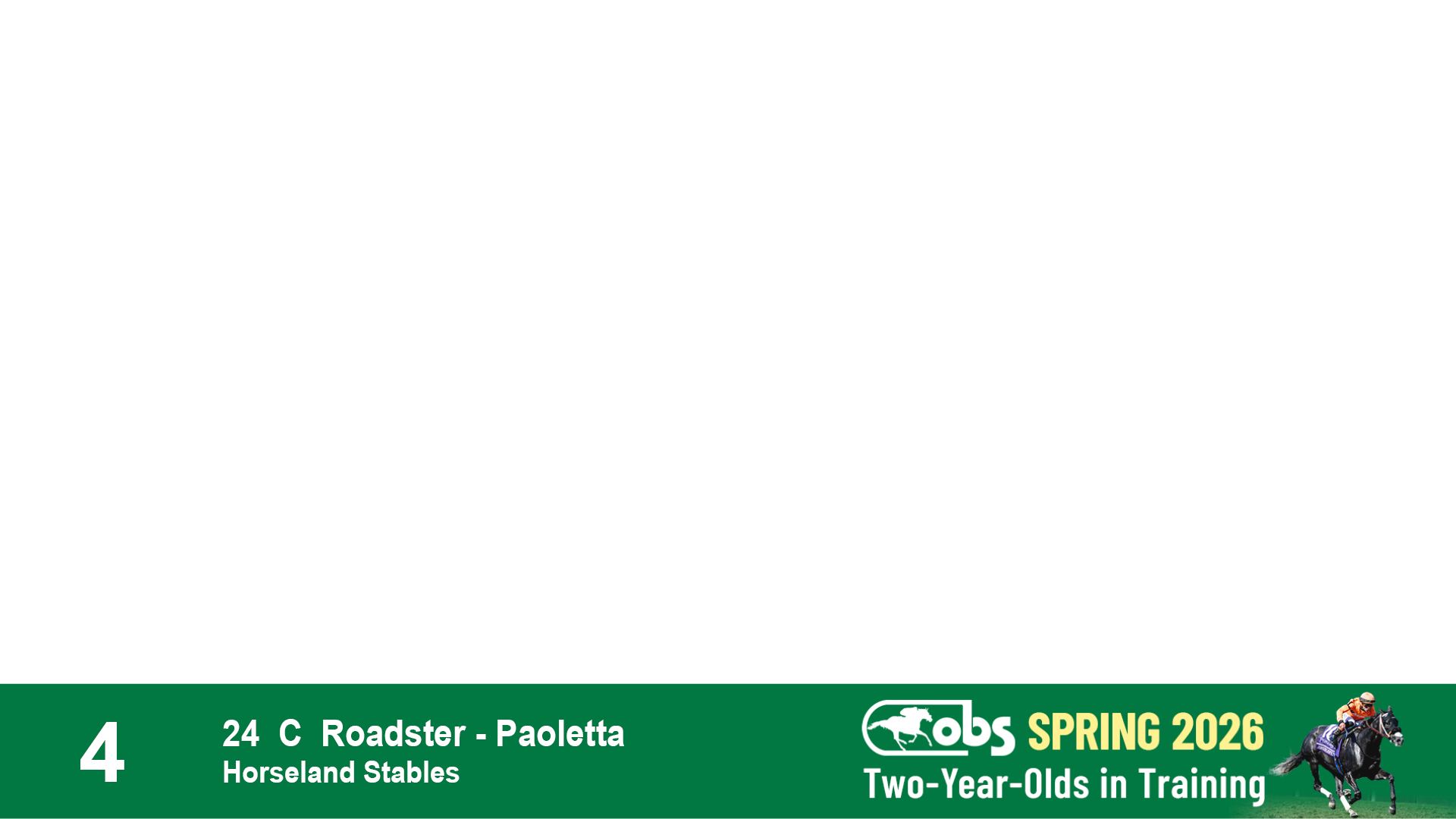 | 4 | Slate | Lower-Third | 4/2/2024 | C | Roadster | Paoletta | Horseland Stables, Agent I | 82 | 975 | 811 | 448 | |