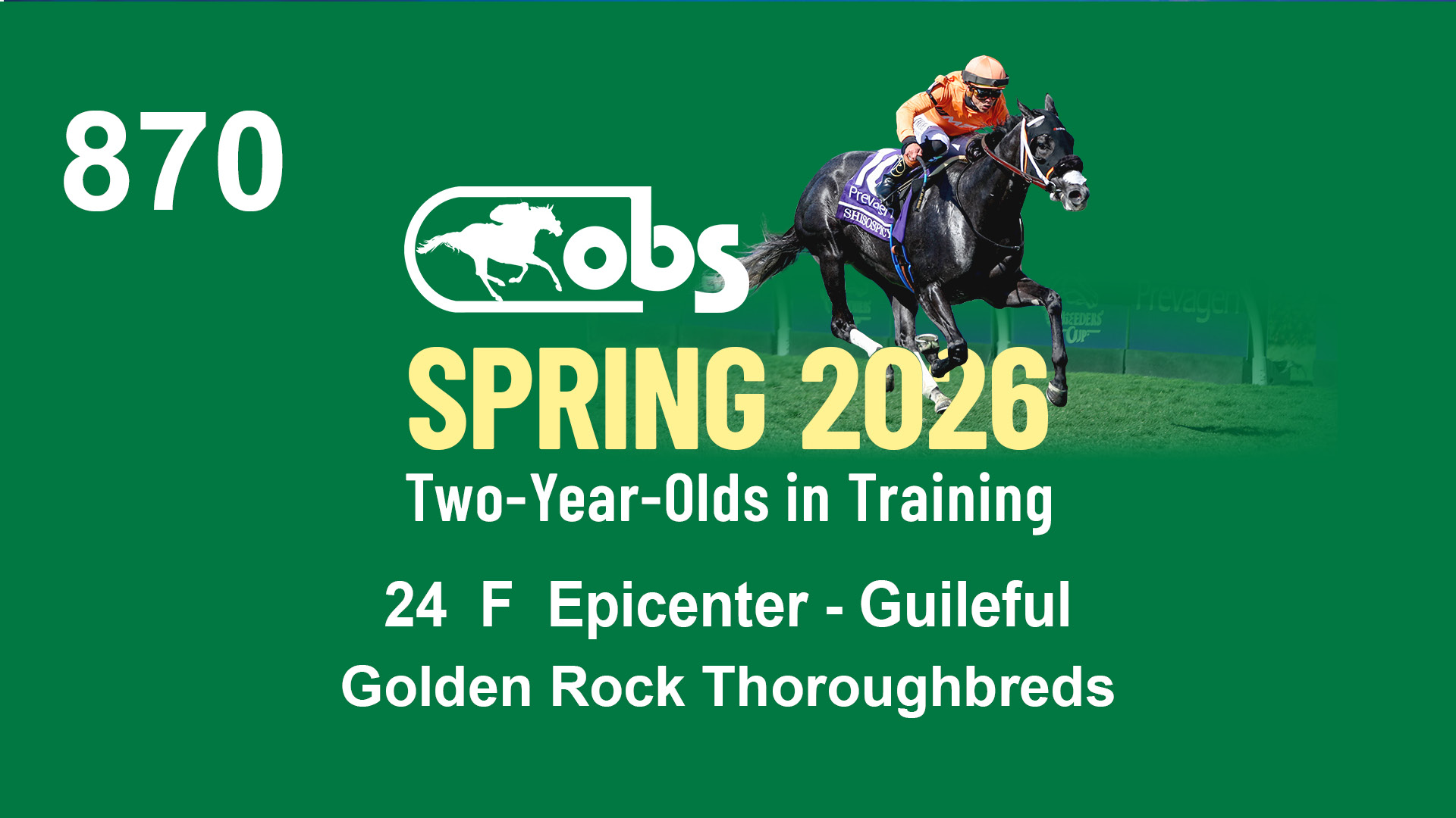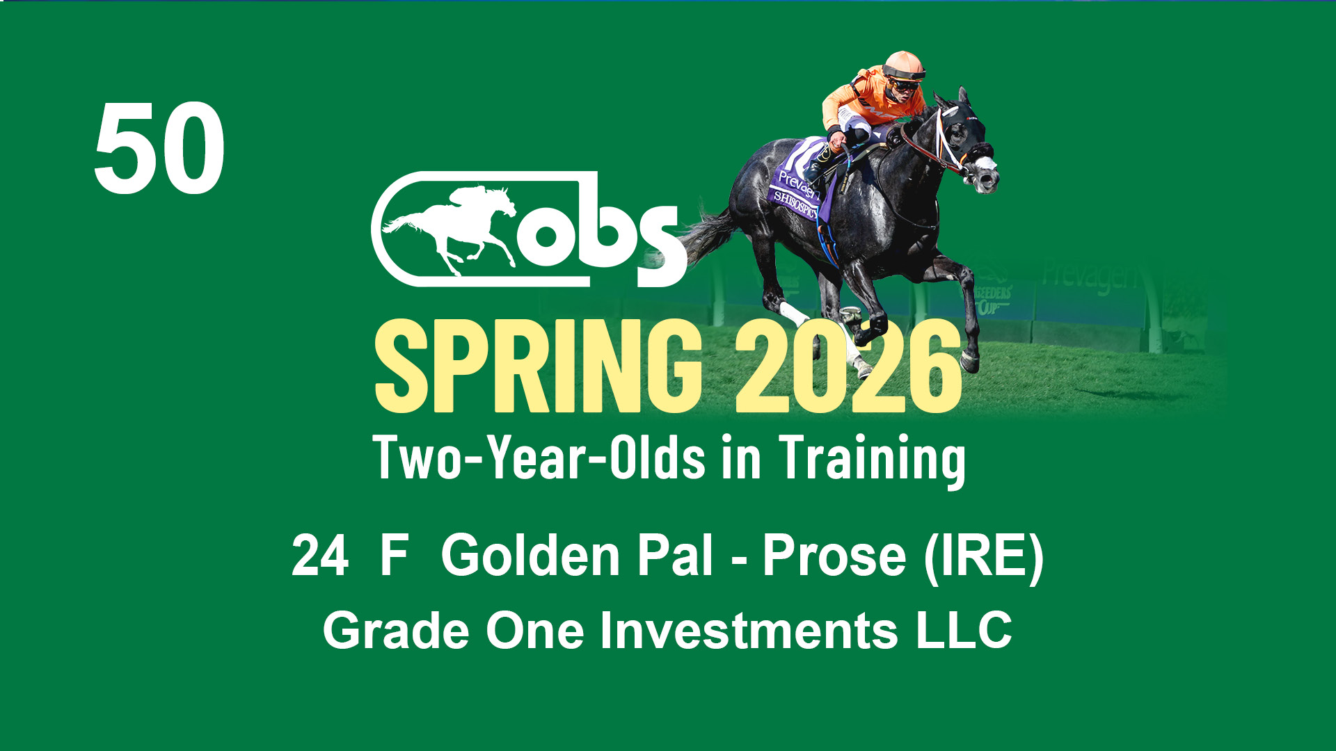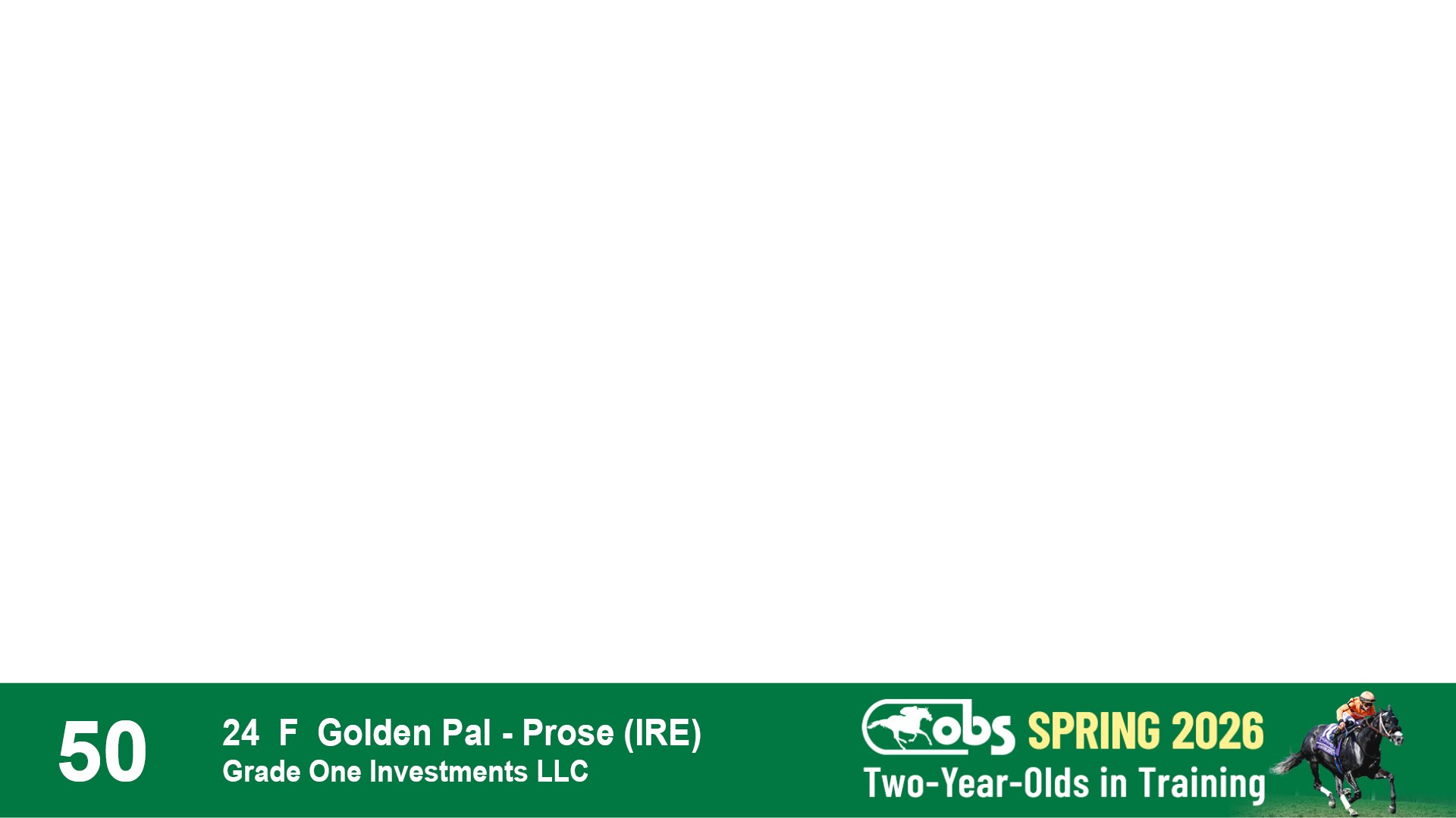 | 50 | Slate | Lower-Third | 5/14/2024 | F | Versified | Golden Pal | Prose (IRE) | Grade One Investments LLC, Agent II | 76 | 410 | 857 | 289 |