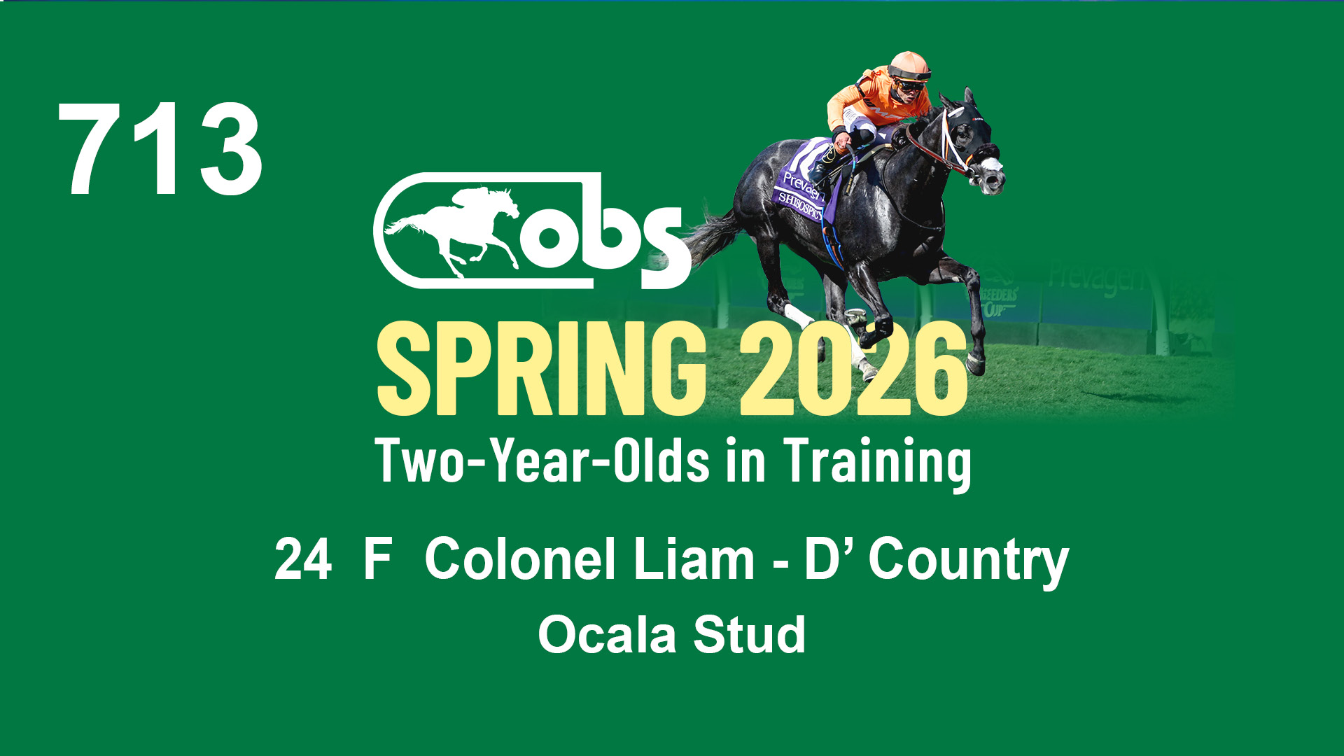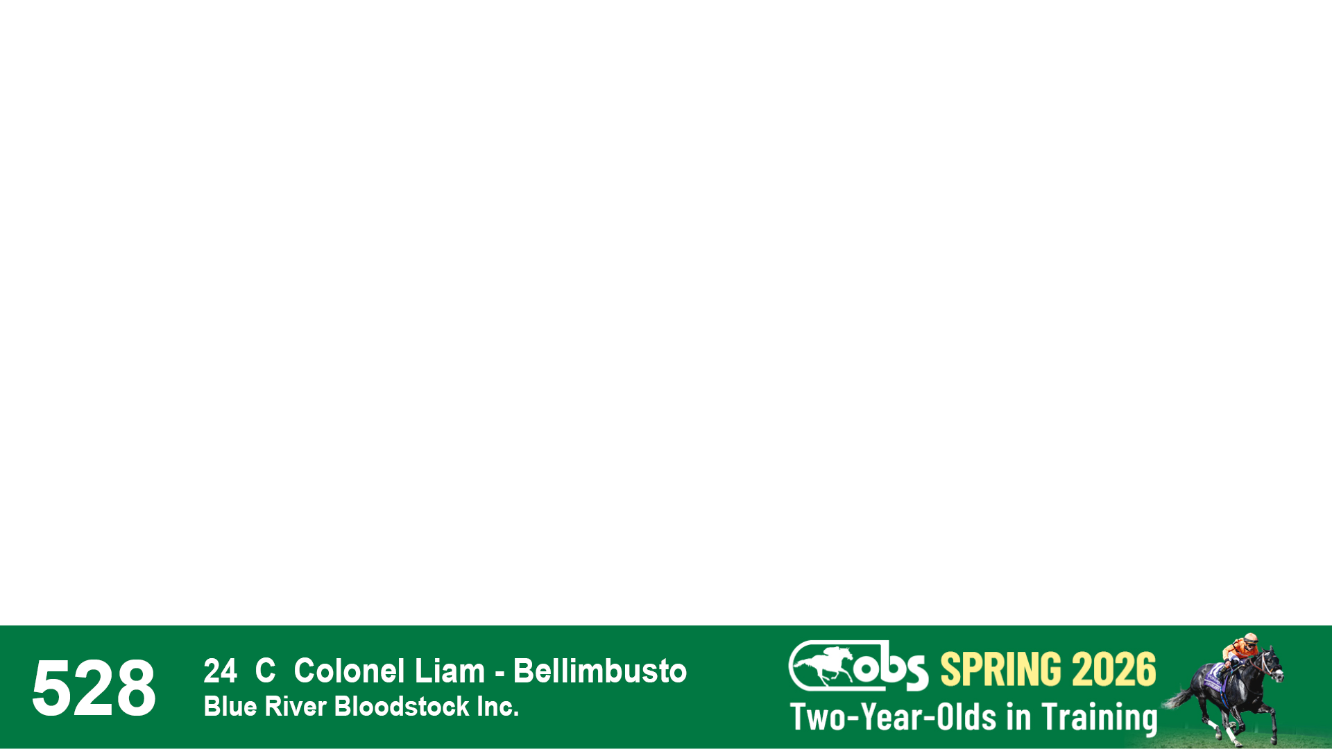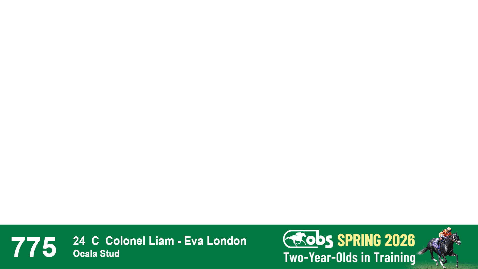 | 1176 | Slate | Lower-Third | 2/25/2024 | C | Colonel Liam | Nancy Doll | Ocala Stud | 1179 | 145 | 763 | 700 | |