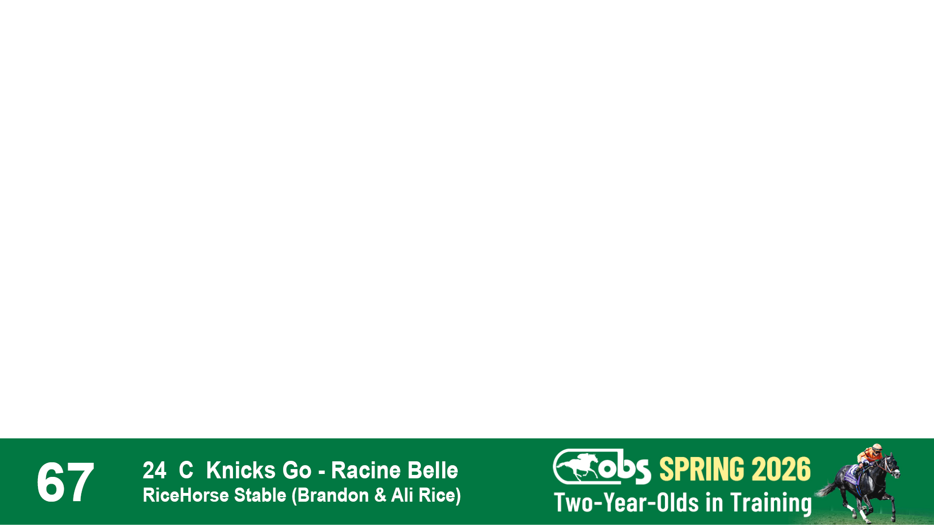 | 67 | Slate | Lower-Third | 3/21/2024 | C | Knicks Go | Racine Belle | RiceHorse Stable (Brandon & Ali Rice), Agent III | 141 | 634 | 873 | 886 | |