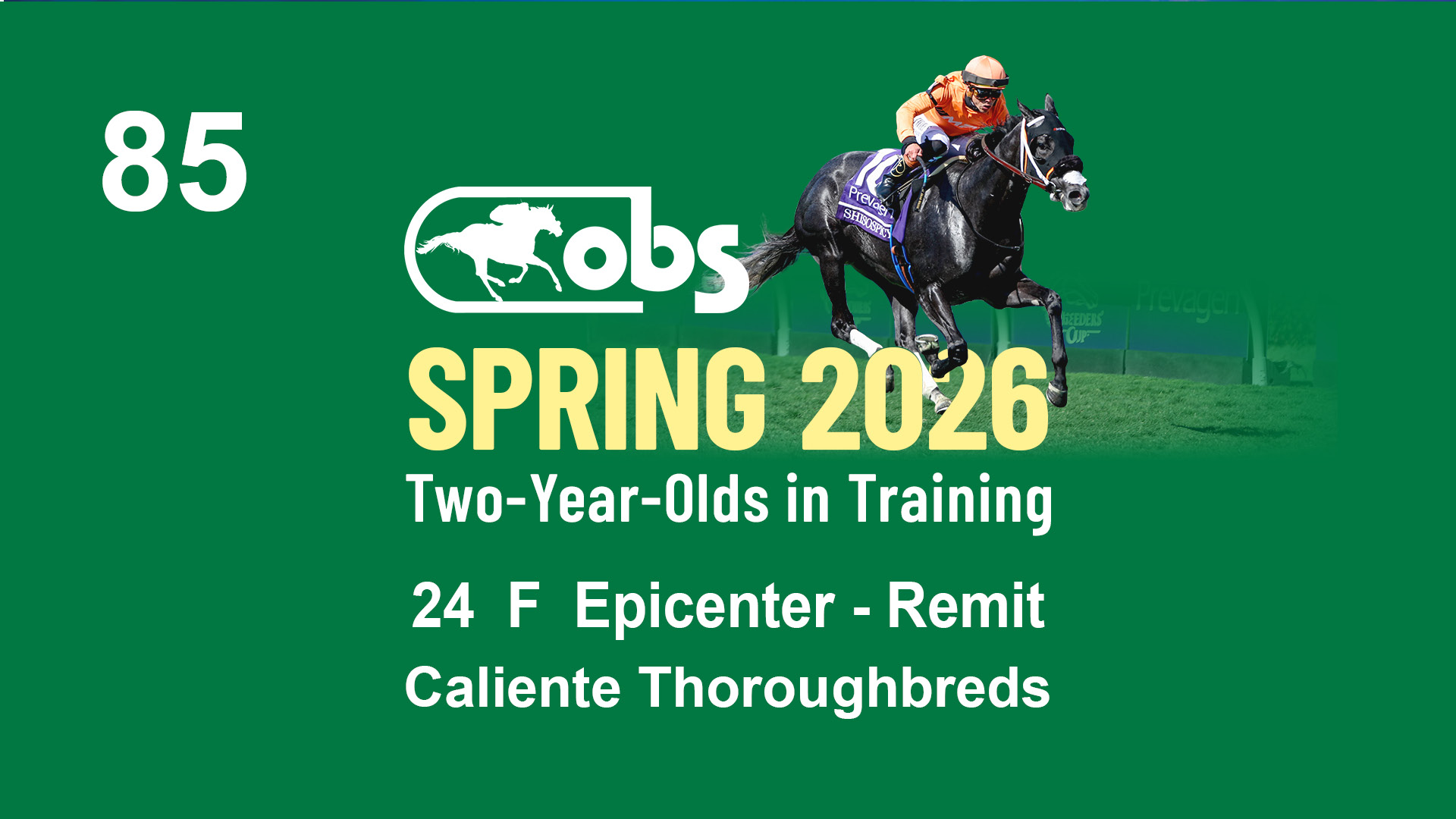 | 85 | Slate | Lower-Third | 5/7/2024 | F | Epicenter | Remit | Caliente Thoroughbreds, Agent VII | 159 | 307 | 891 | 97 | |