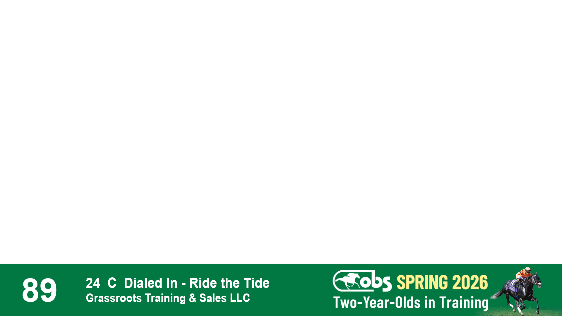 | 89 | Slate | Lower-Third | 5/8/2024 | C | Dialed In | Ride the Tide | Grassroots Training & Sales LLC, Agent II | 163 | 242 | 895 | 349 | |