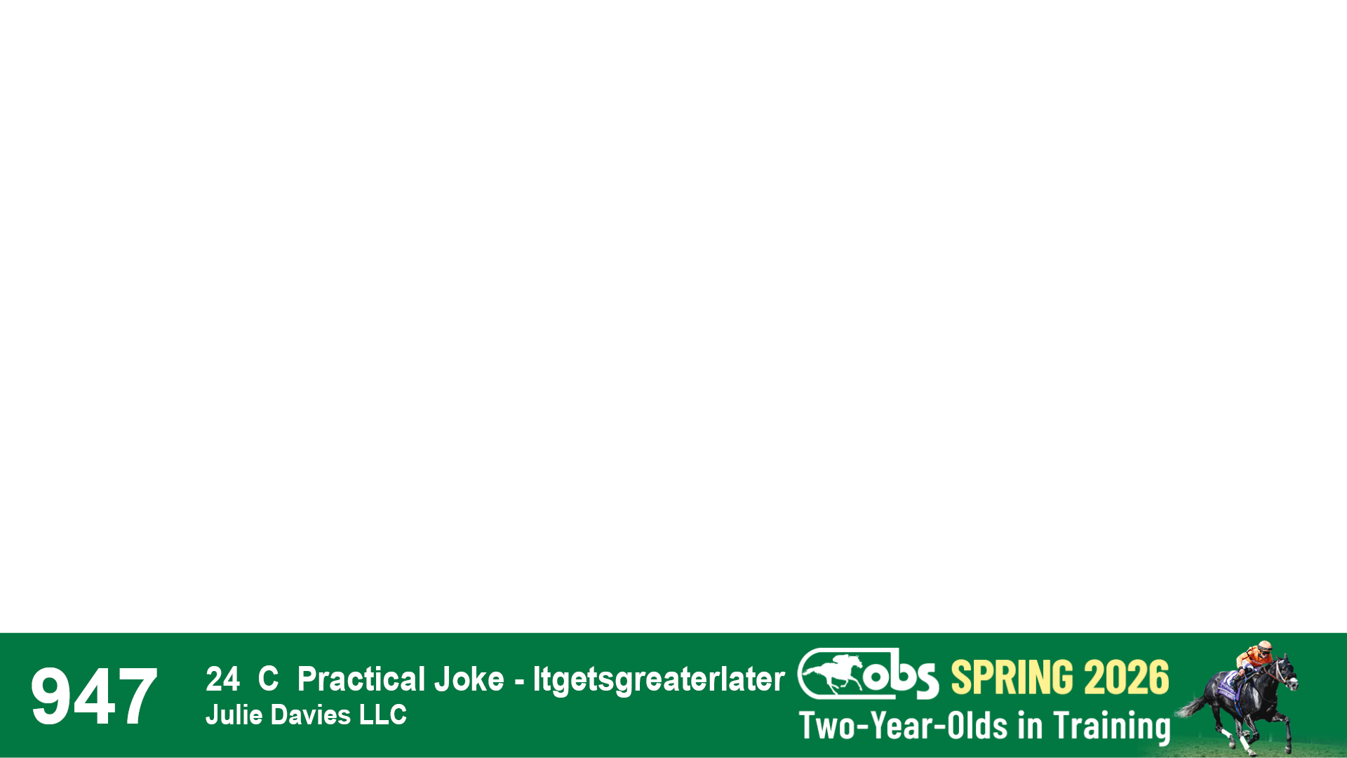 | 10 | Slate | Lower-Third | 4/15/2024 | C | Quality Road | Patou | Julie Davies LLC, Agent V | 87 | 969 | 817 | 468 | |