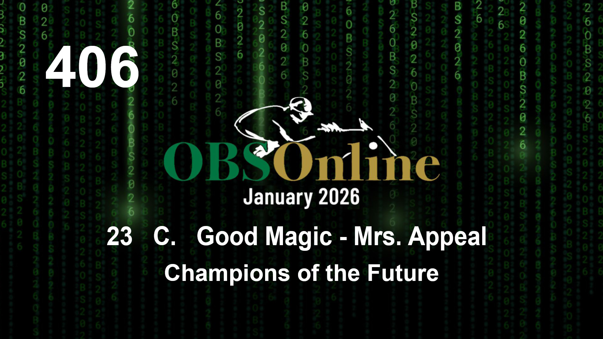 | 406 | Slate | Lower-Third | 5/20/2023 | C | Good Magic | Mrs. Appeal | Champions of the Future | 11 | 8 | 12 | 4 | |