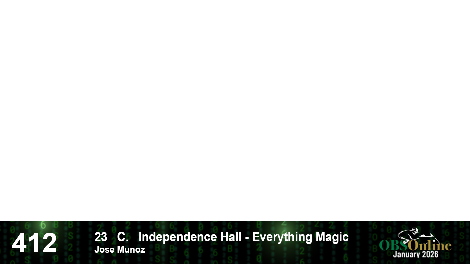 | 412 | Slate | Lower-Third | 3/9/2023 | C | Independence Hall | Everything Magic | Jose Munoz | 14 | 10 | 7 | 5 | |