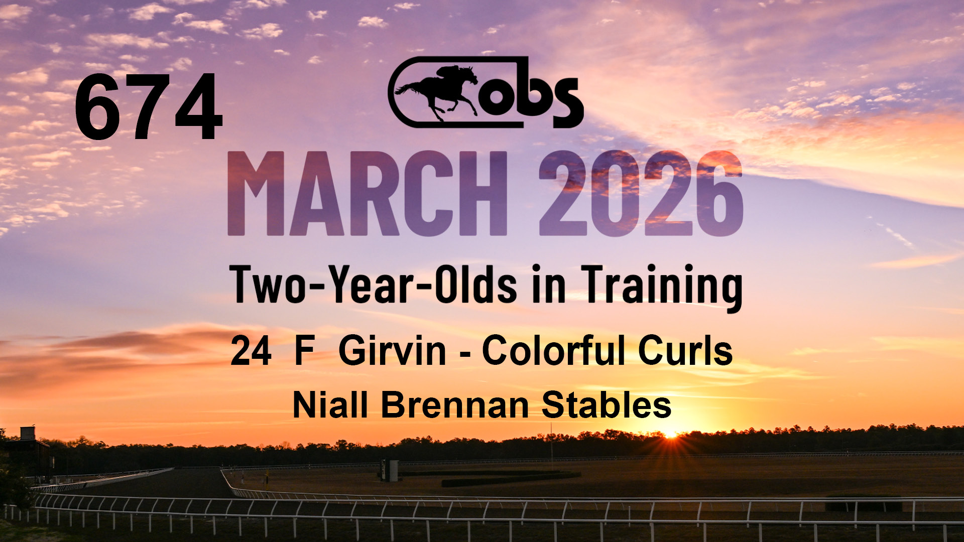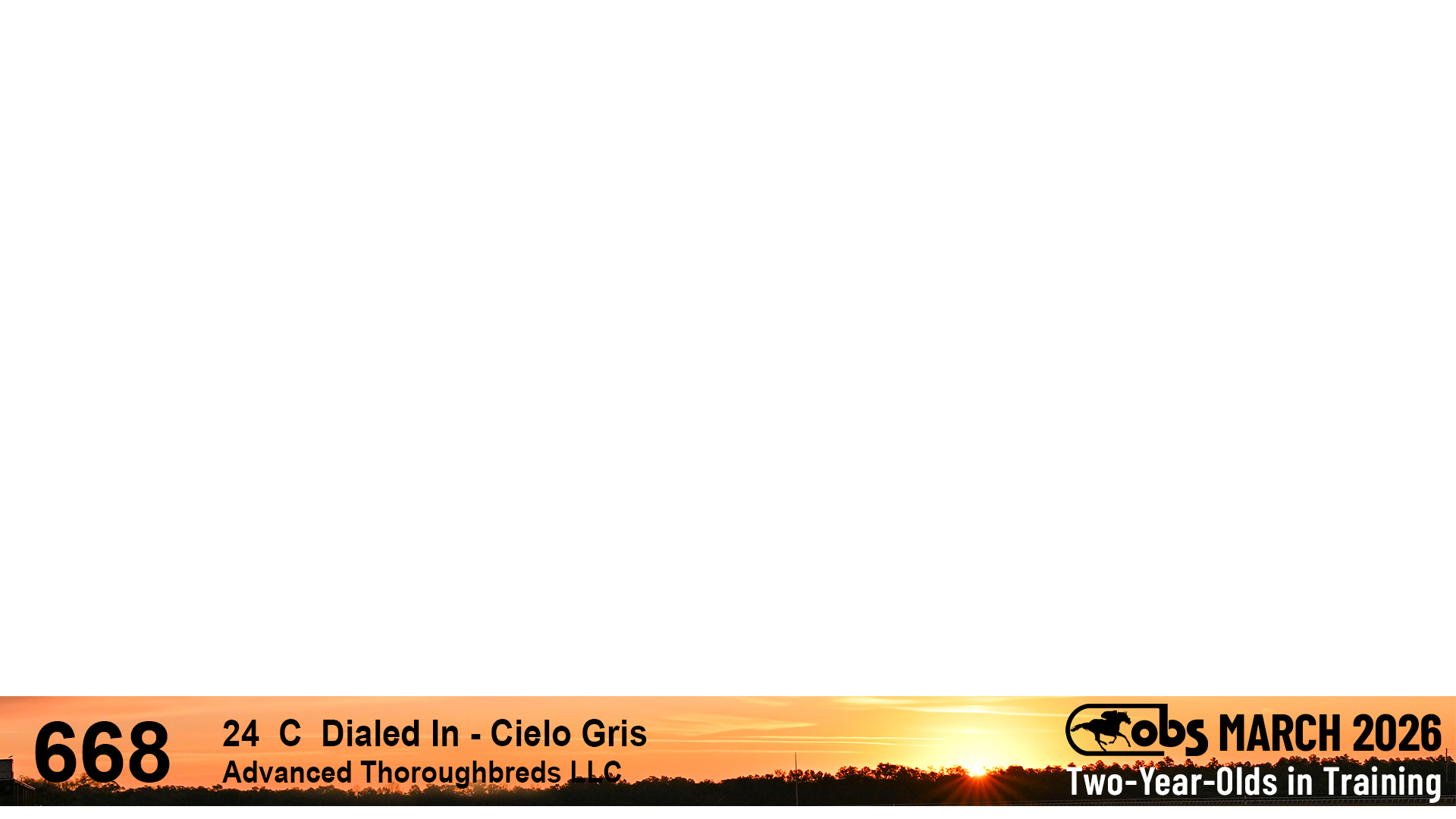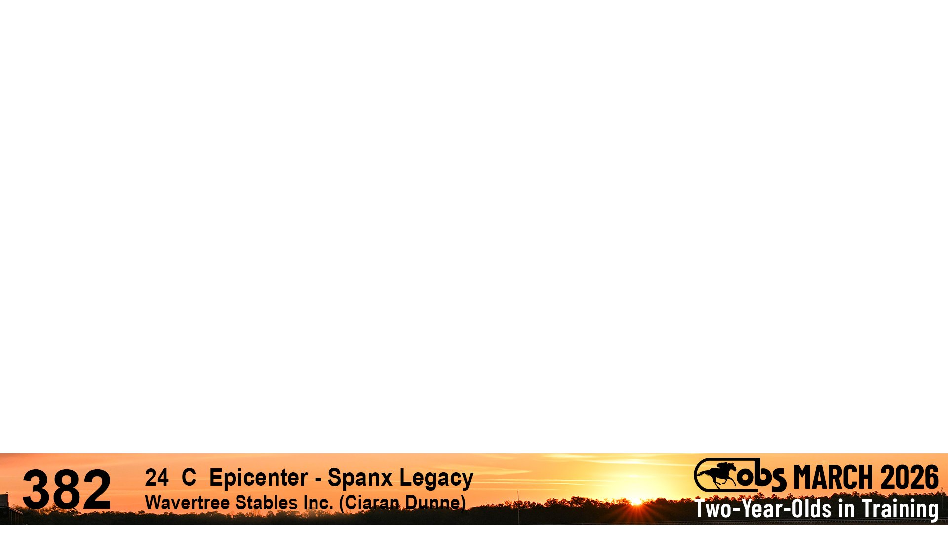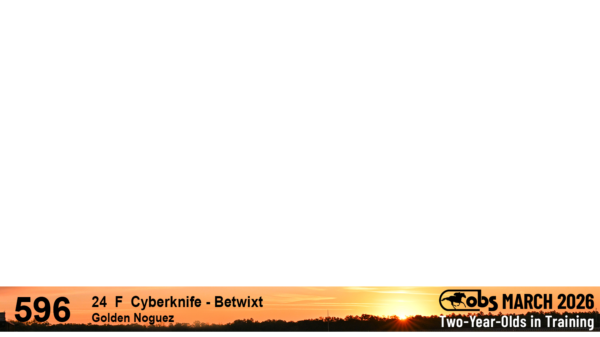 | 89 | Slate | Lower-Third | 3/12/2024 | C | Boston Bird | Noble Bird | Lailoni | S G V Thoroughbreds LLC (Steven Venosa), Agent | 3 | 598 | 383 | 649 |