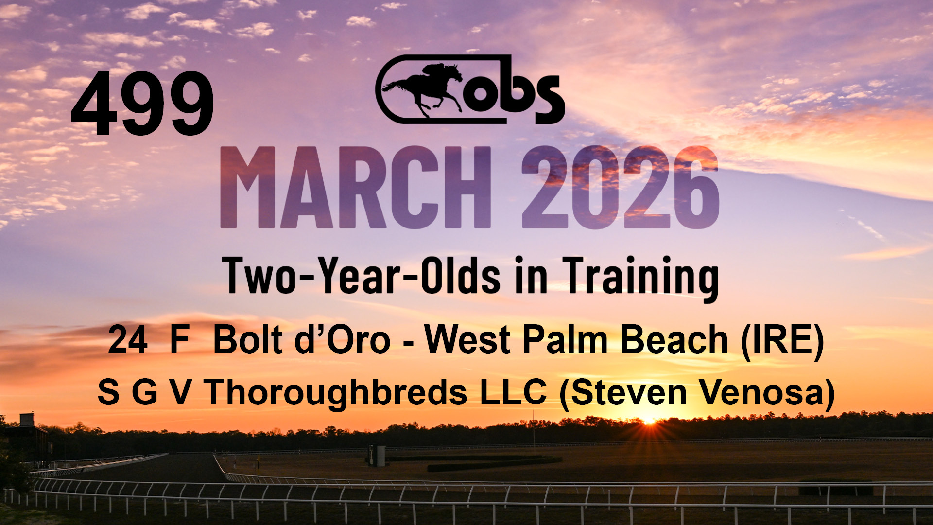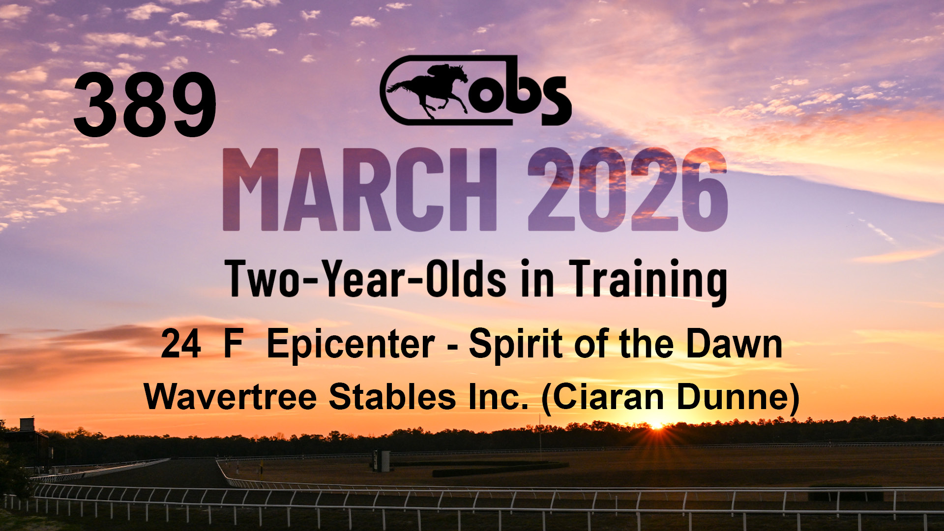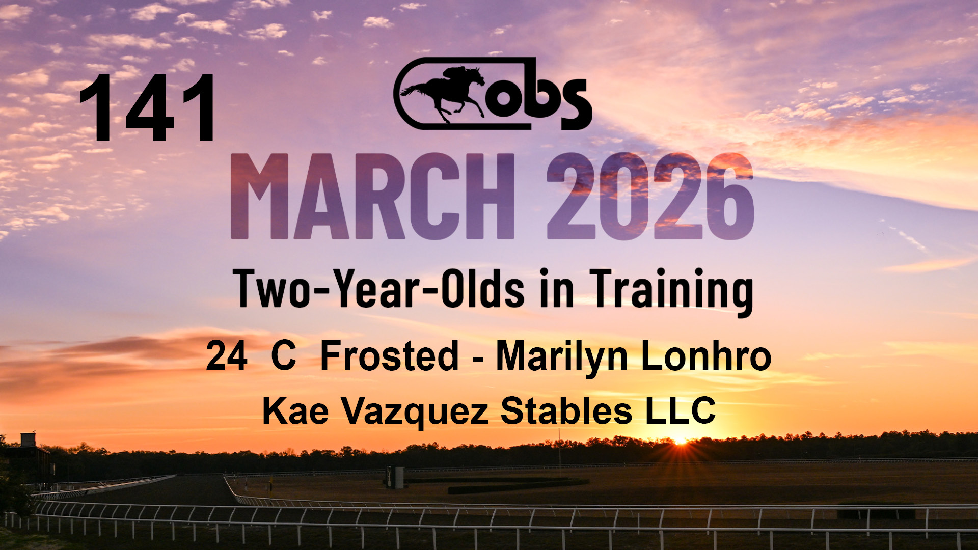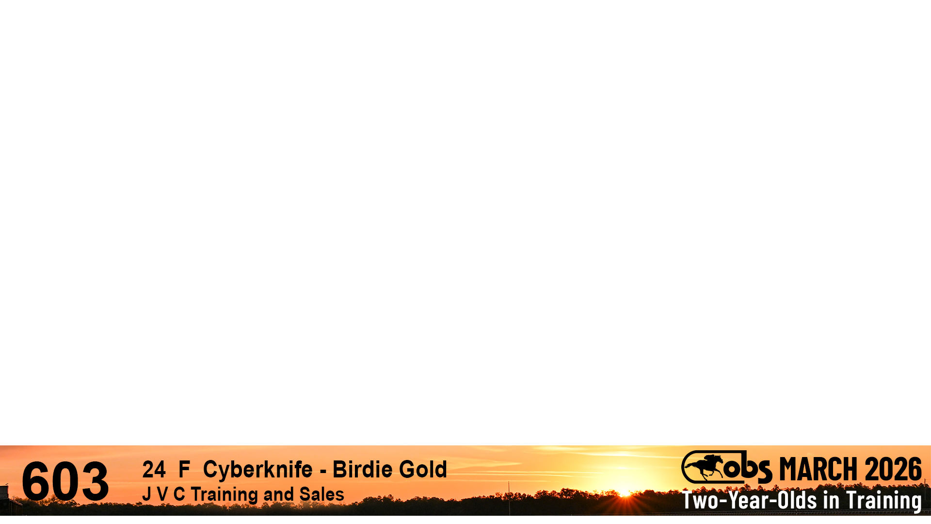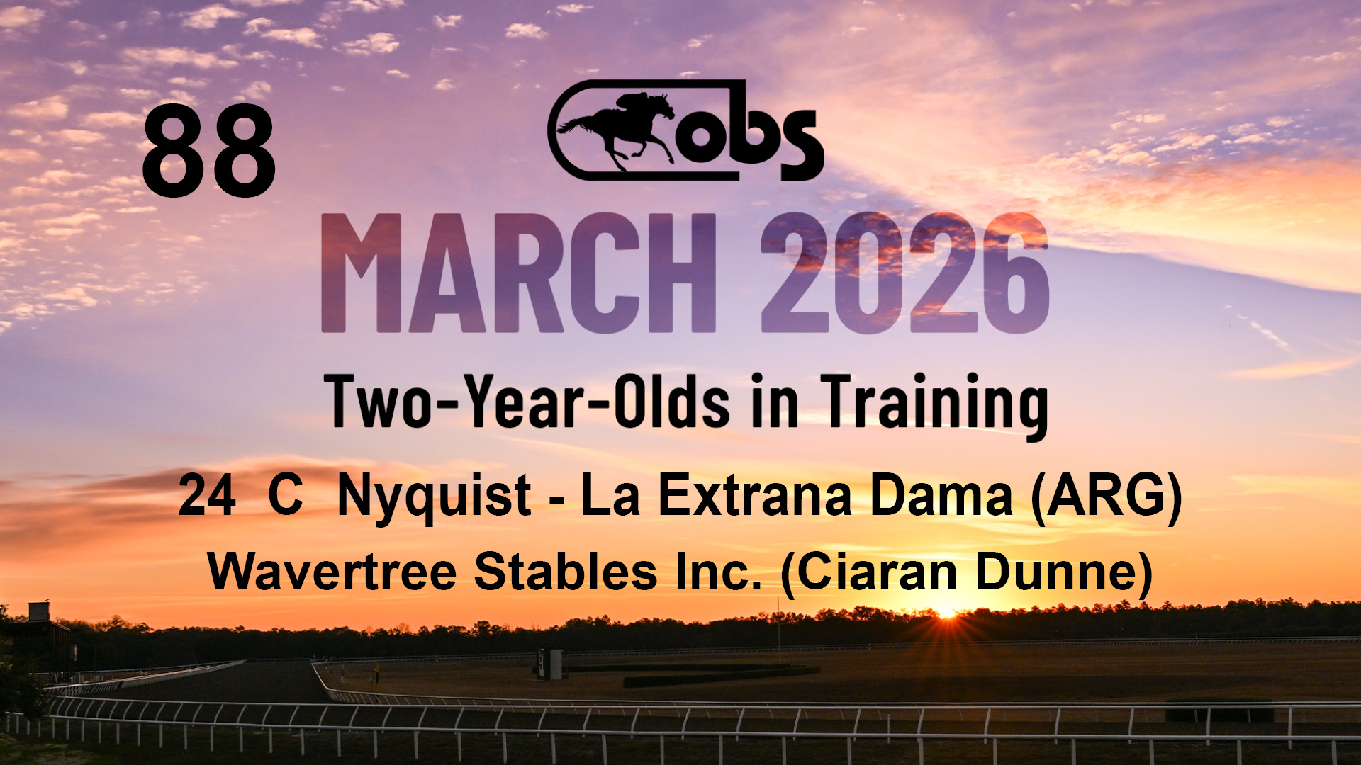 | 89 | Slate | Lower-Third | 3/12/2024 | C | Boston Bird | Noble Bird | Lailoni | S G V Thoroughbreds LLC (Steven Venosa), Agent | 3 | 598 | 383 | 649 |