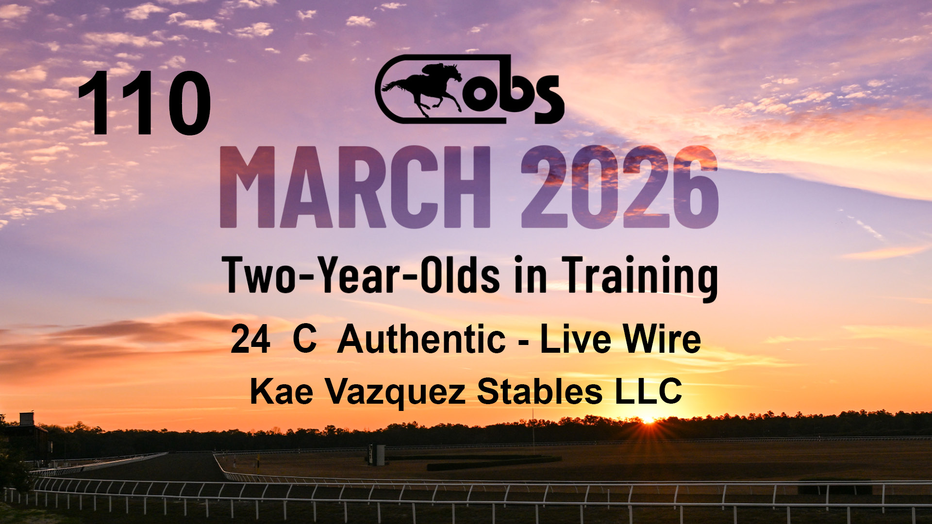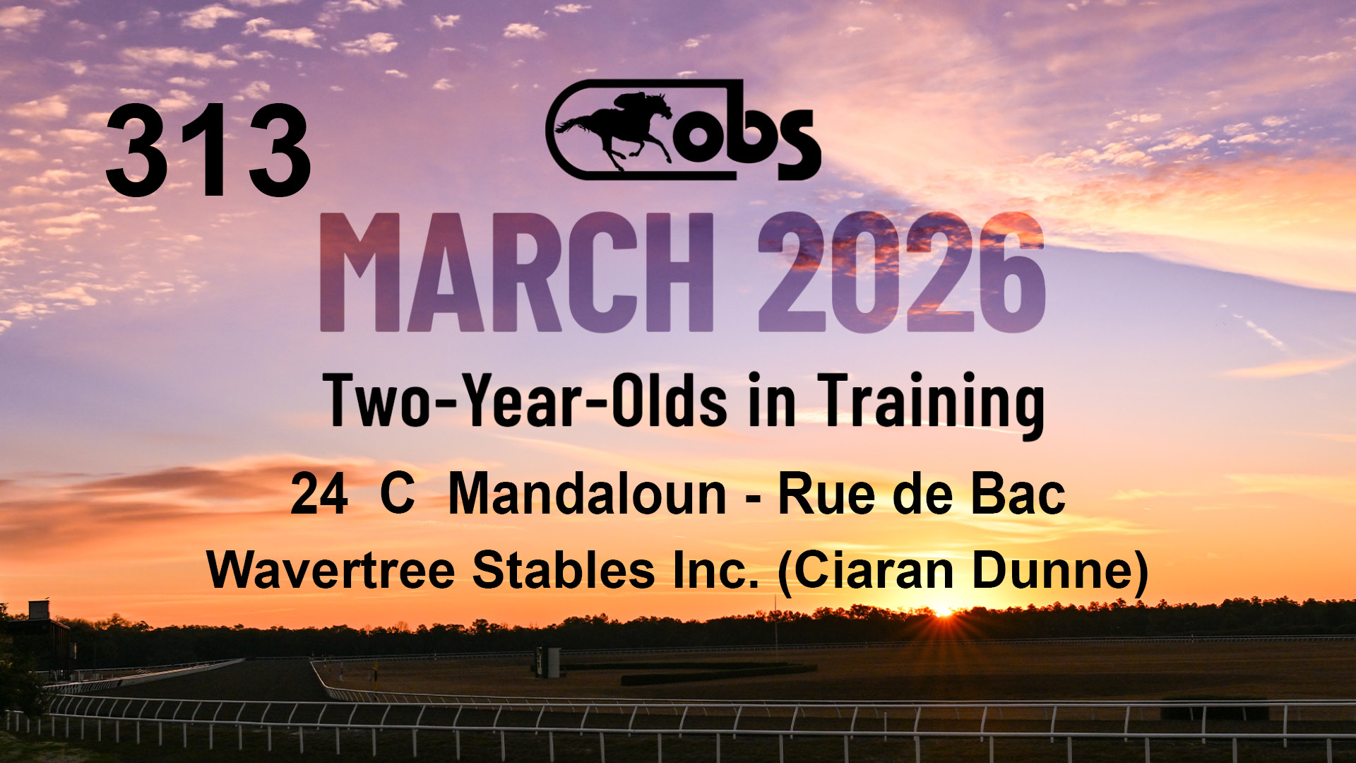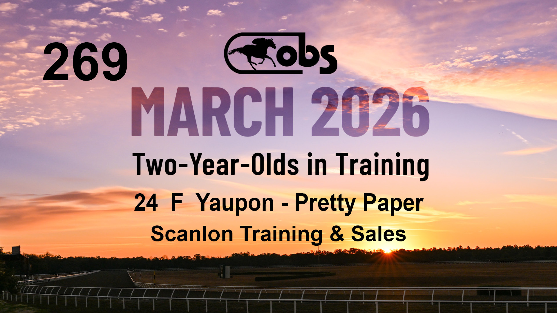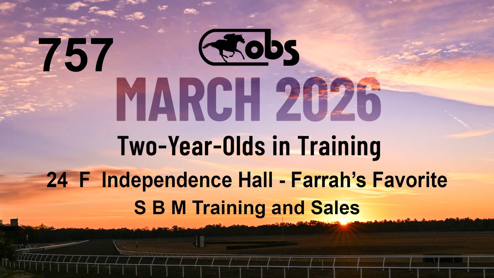 | 89 | Slate | Lower-Third | 3/12/2024 | C | Boston Bird | Noble Bird | Lailoni | S G V Thoroughbreds LLC (Steven Venosa), Agent | 3 | 598 | 383 | 649 |