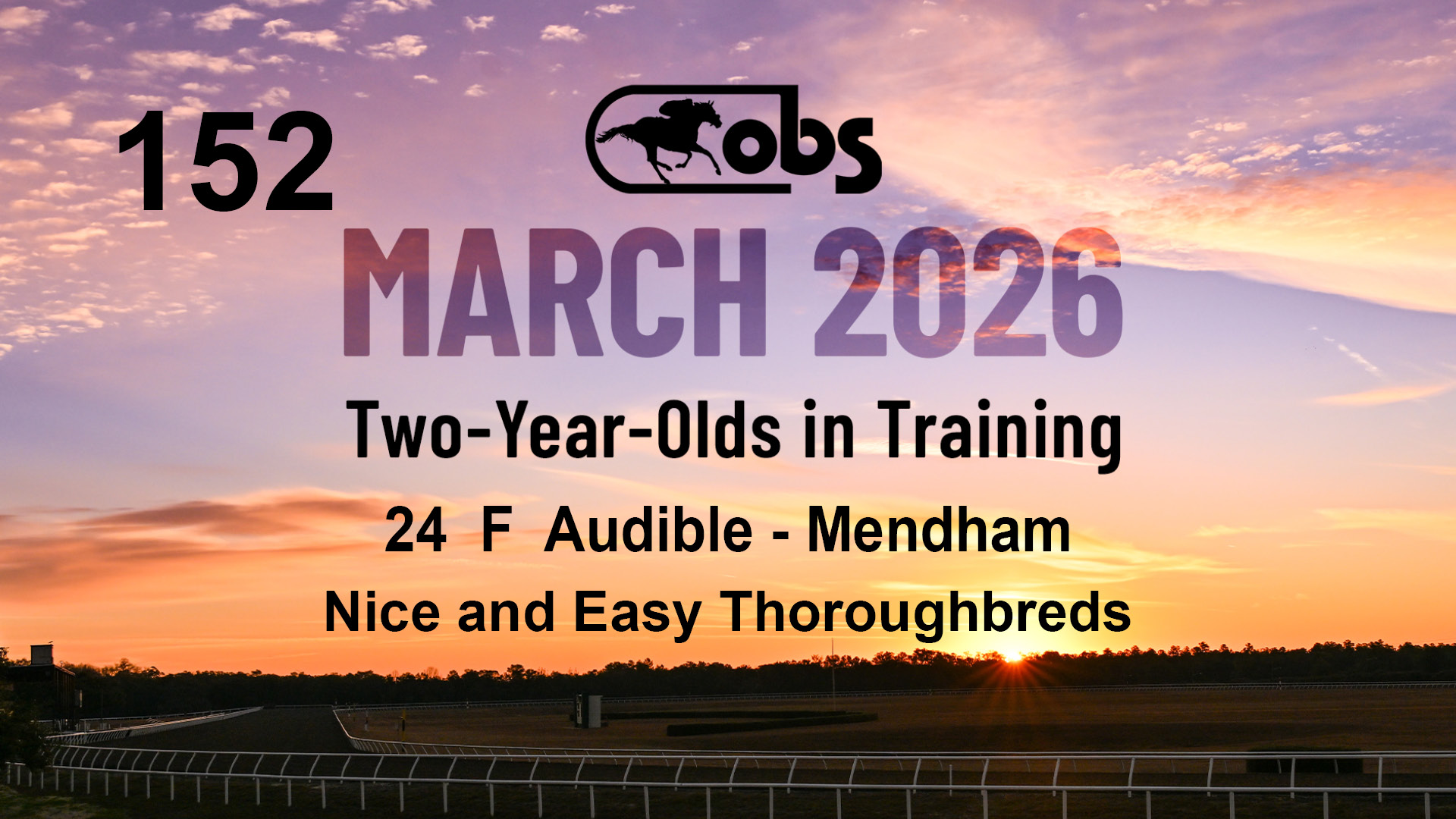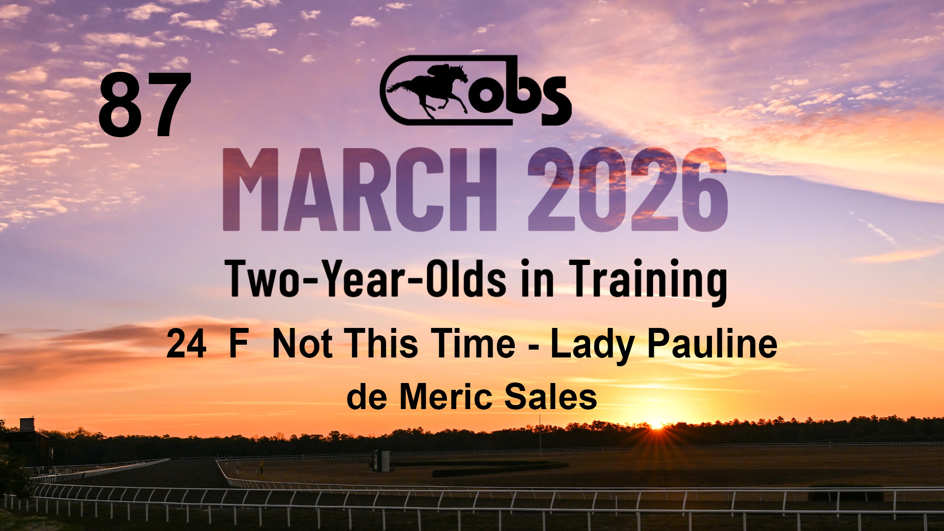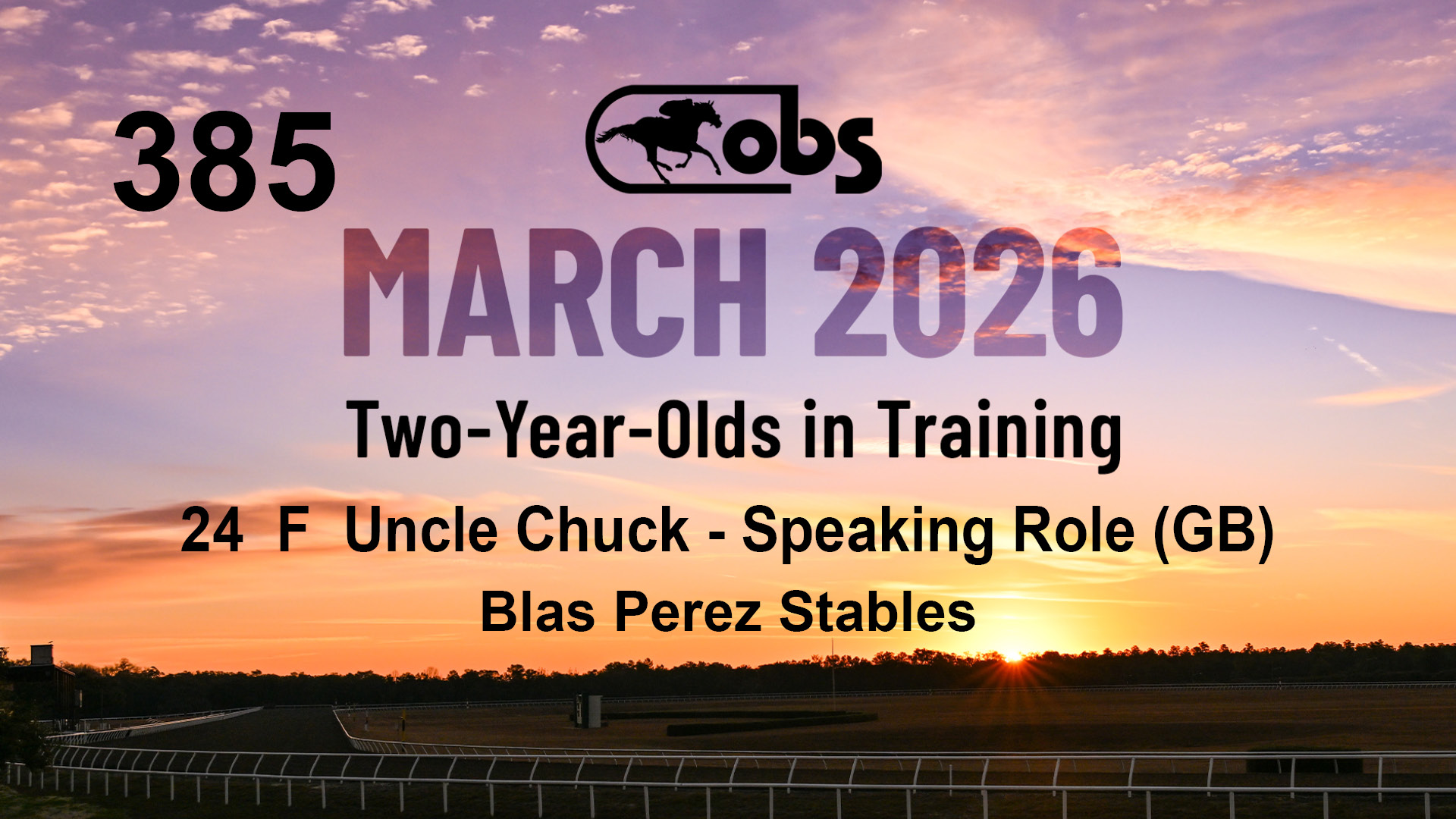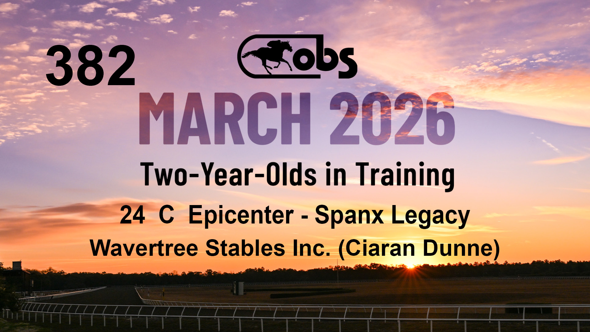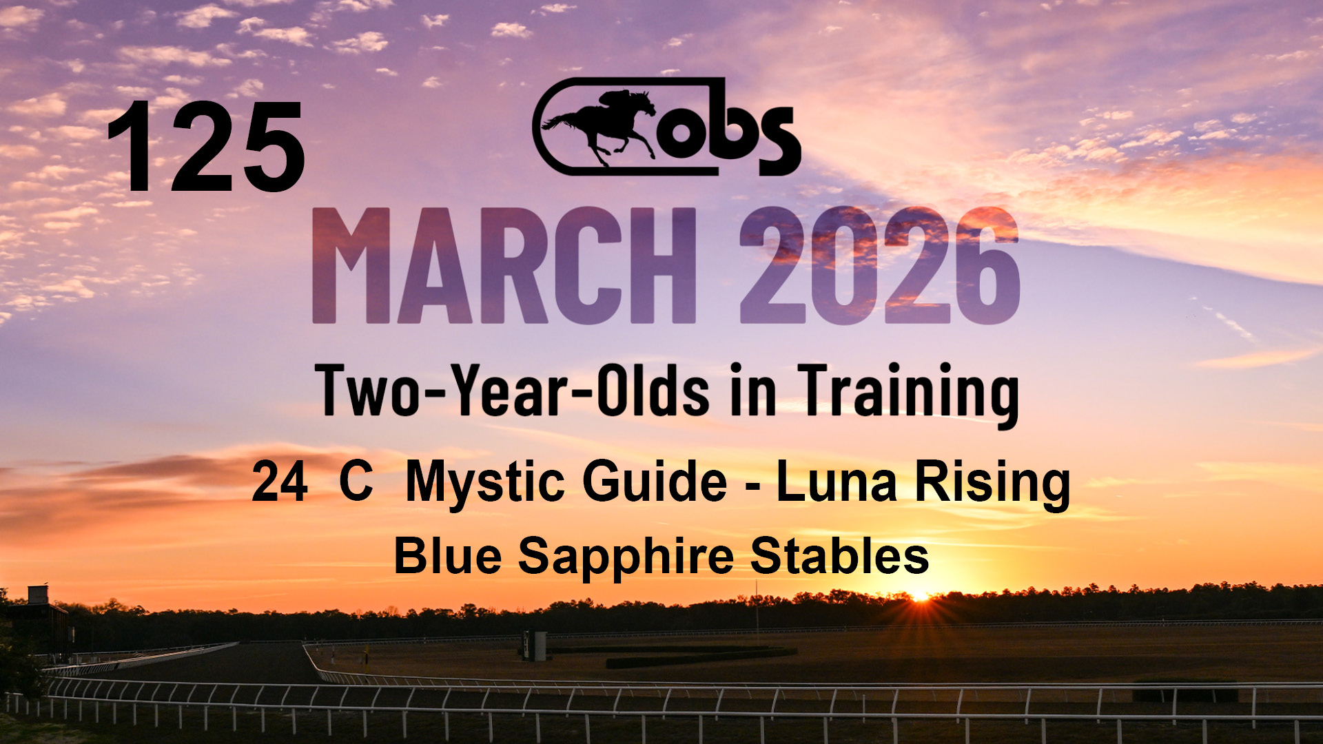 | 89 | Slate | Lower-Third | 3/12/2024 | C | Boston Bird | Noble Bird | Lailoni | S G V Thoroughbreds LLC (Steven Venosa), Agent | 3 | 598 | 383 | 649 |