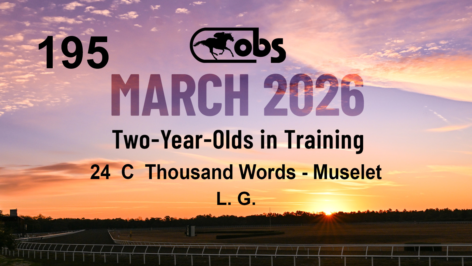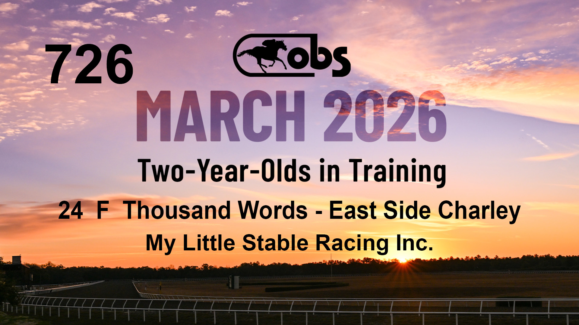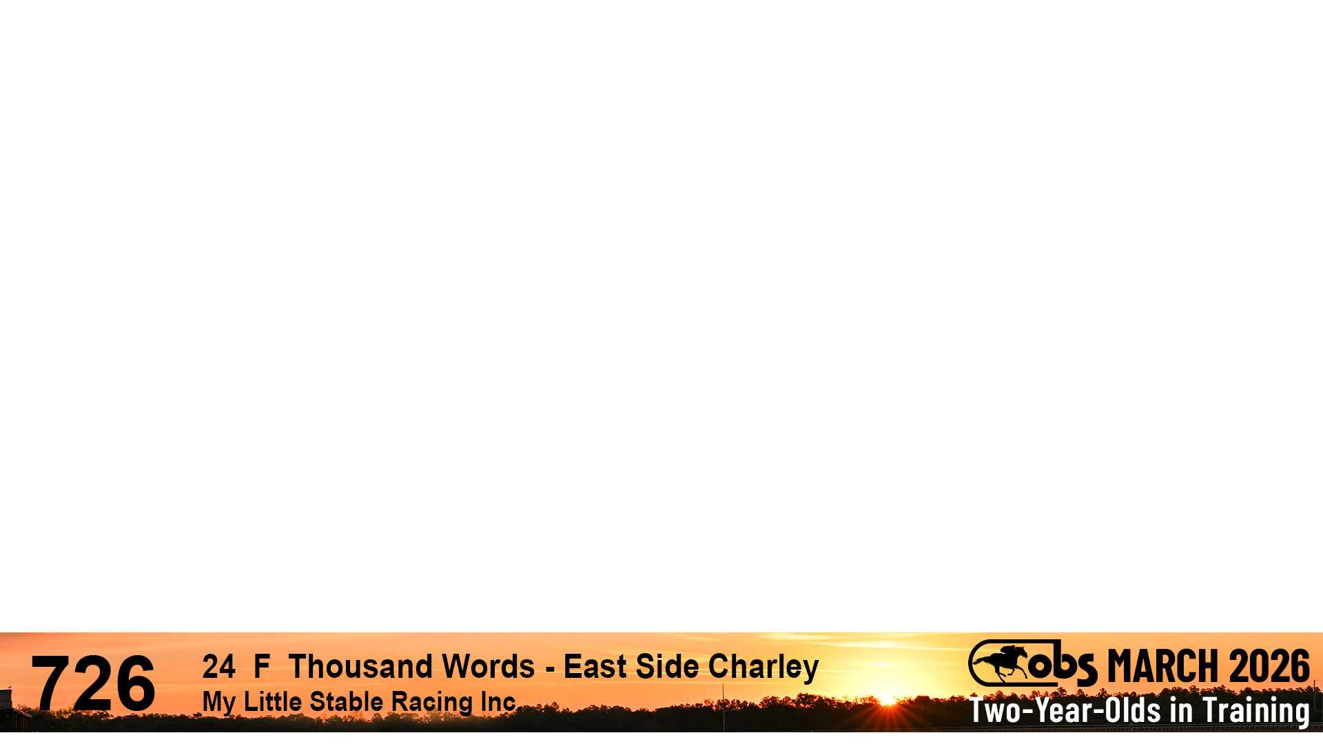| 726 | Slate | Lower-Third | 4/28/2024 | F | Thousand Words | East Side Charley | My Little Stable Racing, Inc., Agent | 731 | 729 | 204 | 390 | |