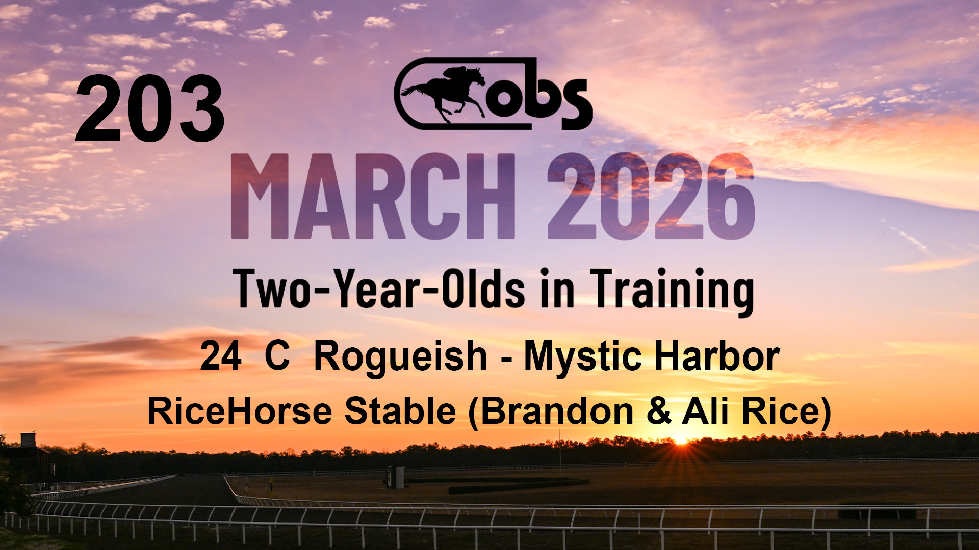 | 14 | Slate | Lower-Third | 3/30/2024 | C | Cyberknife | Here Comes Jackie | Blue River Bloodstock, Inc., Agent I | 59 | 136 | 308 | 34 | |