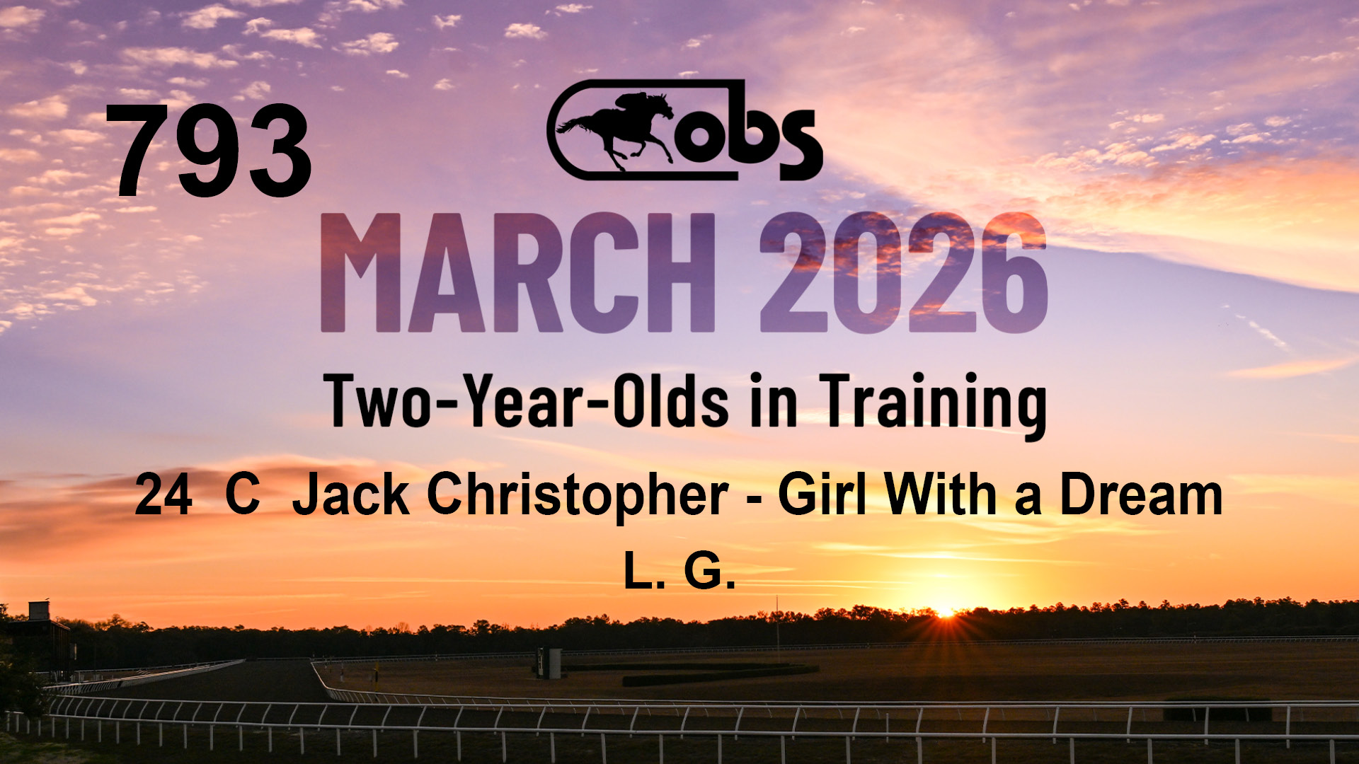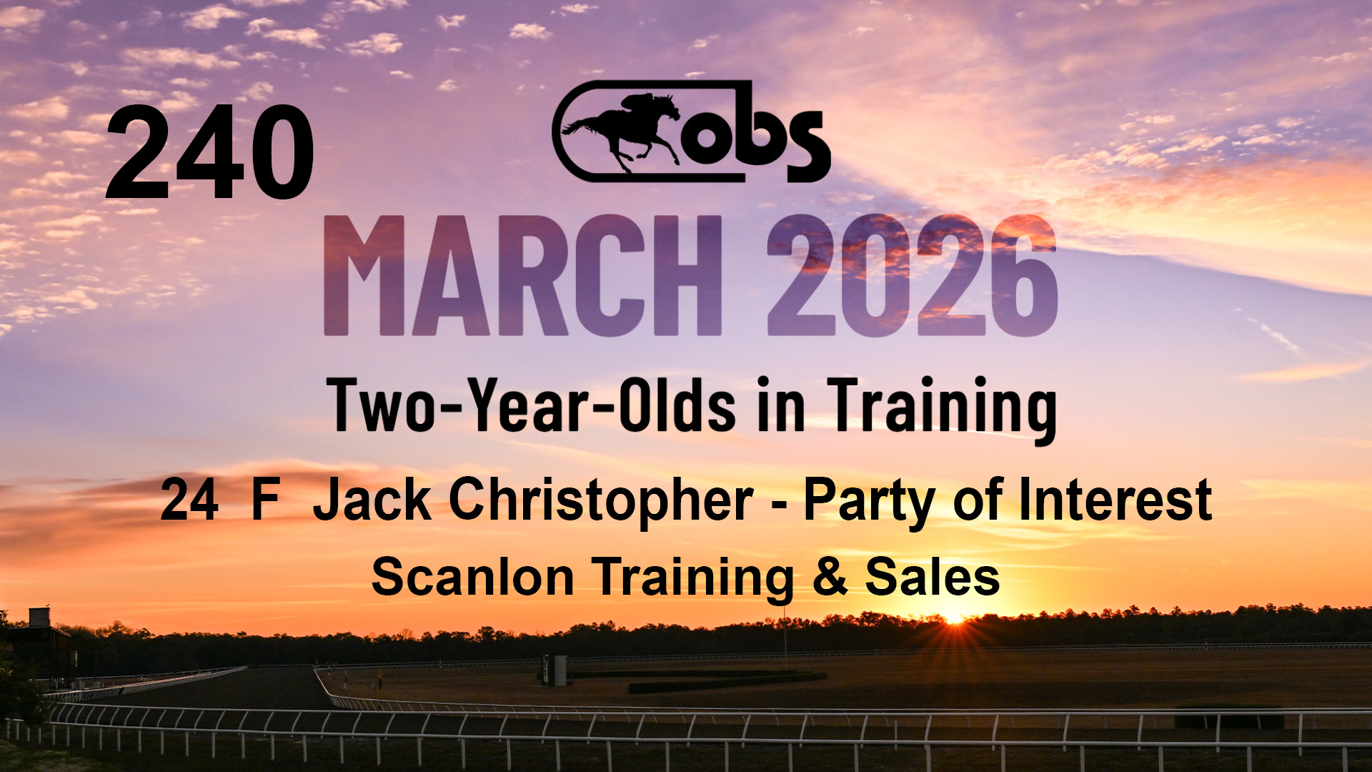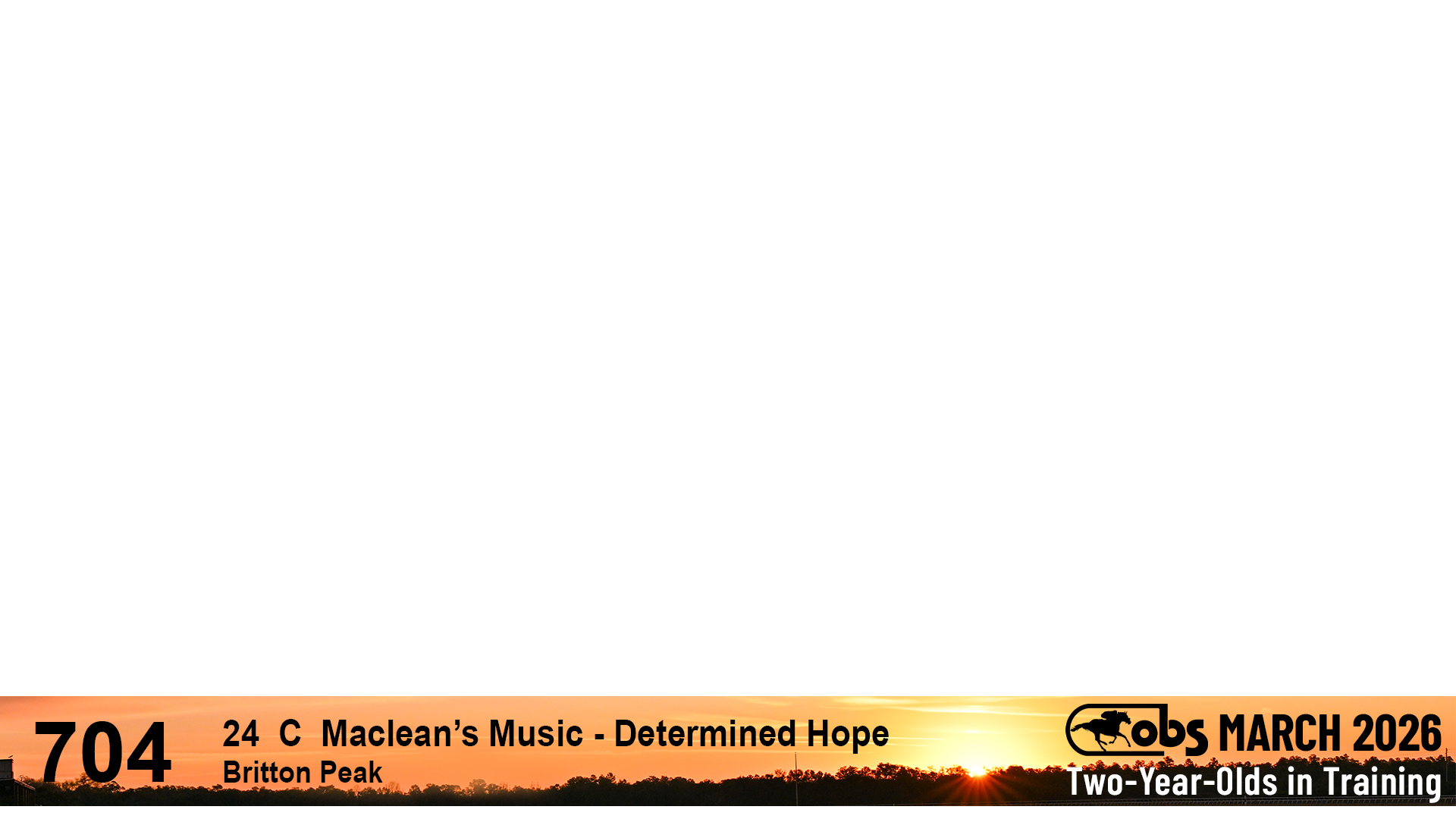 | 804 | Slate | Lower-Third | 3/19/2024 | C | Jack Christopher | Goodbye Earl | Hartley / DeRenzo Thoroughbreds LLC, Agent I | 805 | 394 | 282 | 252 | |