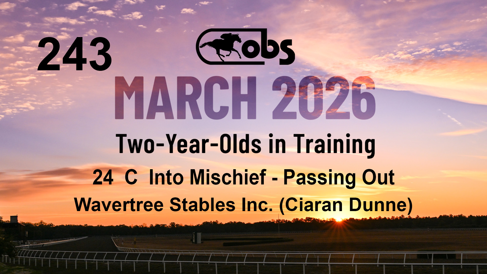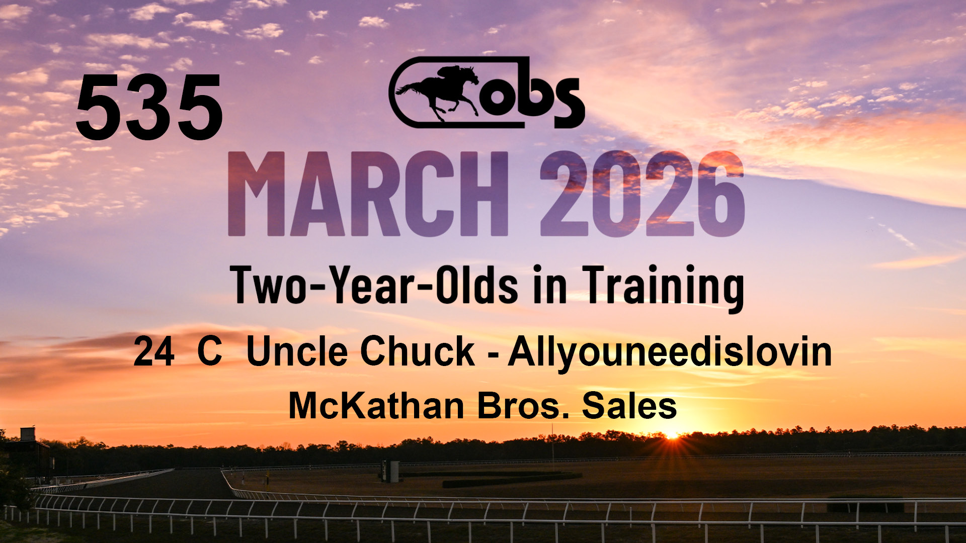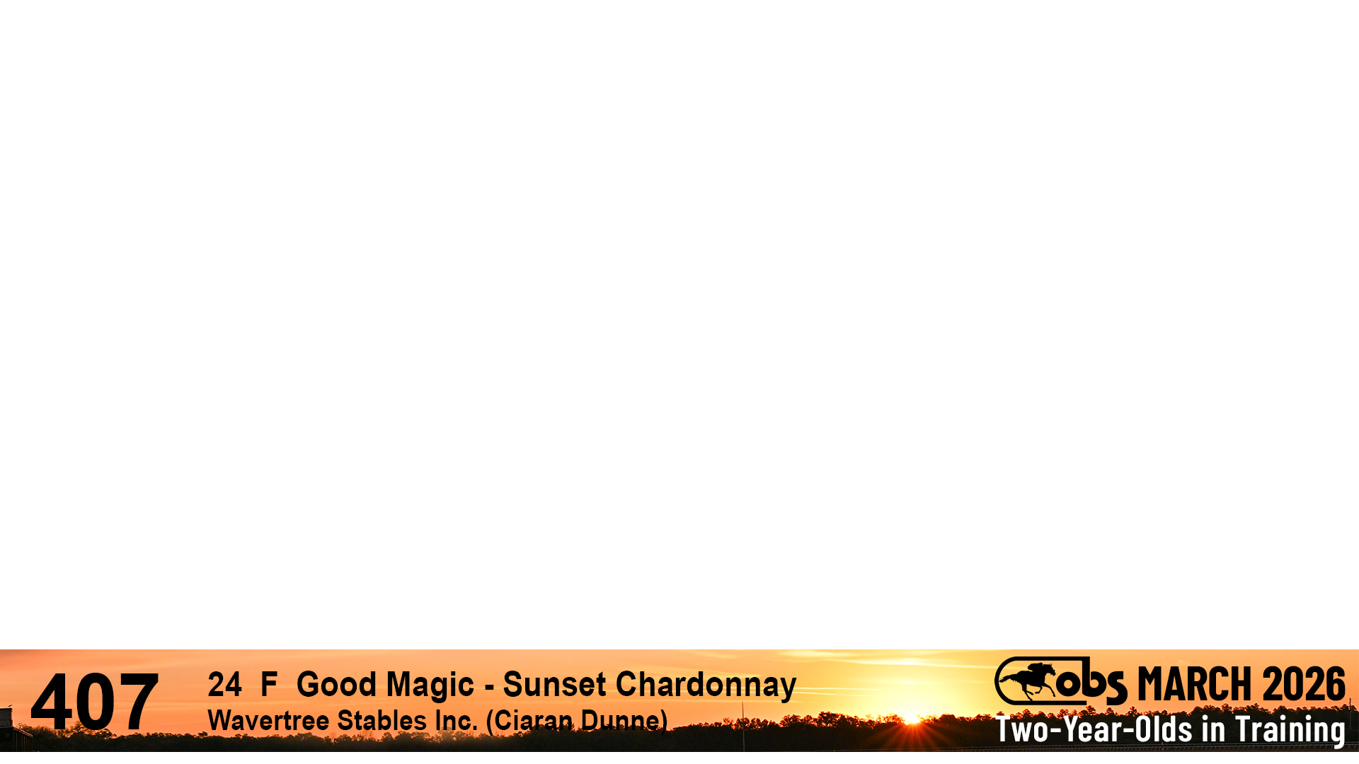| 804 | Slate | Lower-Third | 3/19/2024 | C | Jack Christopher | Goodbye Earl | Hartley / DeRenzo Thoroughbreds LLC, Agent I | 805 | 394 | 282 | 252 | |