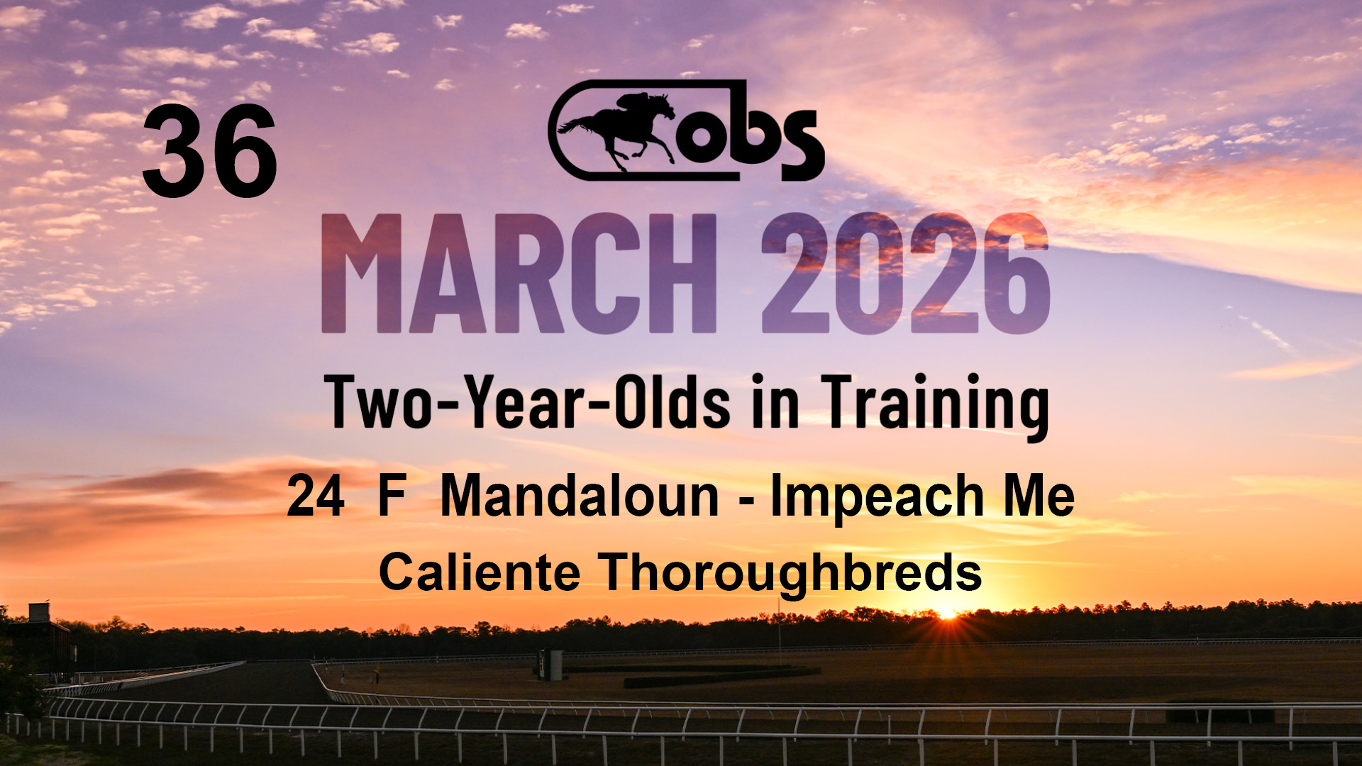 | 36 | Slate | Lower-Third | 2/22/2024 | F | Mandaloun | Impeach Me | Caliente Thoroughbreds, Agent XVIII | 81 | 463 | 330 | 78 | |