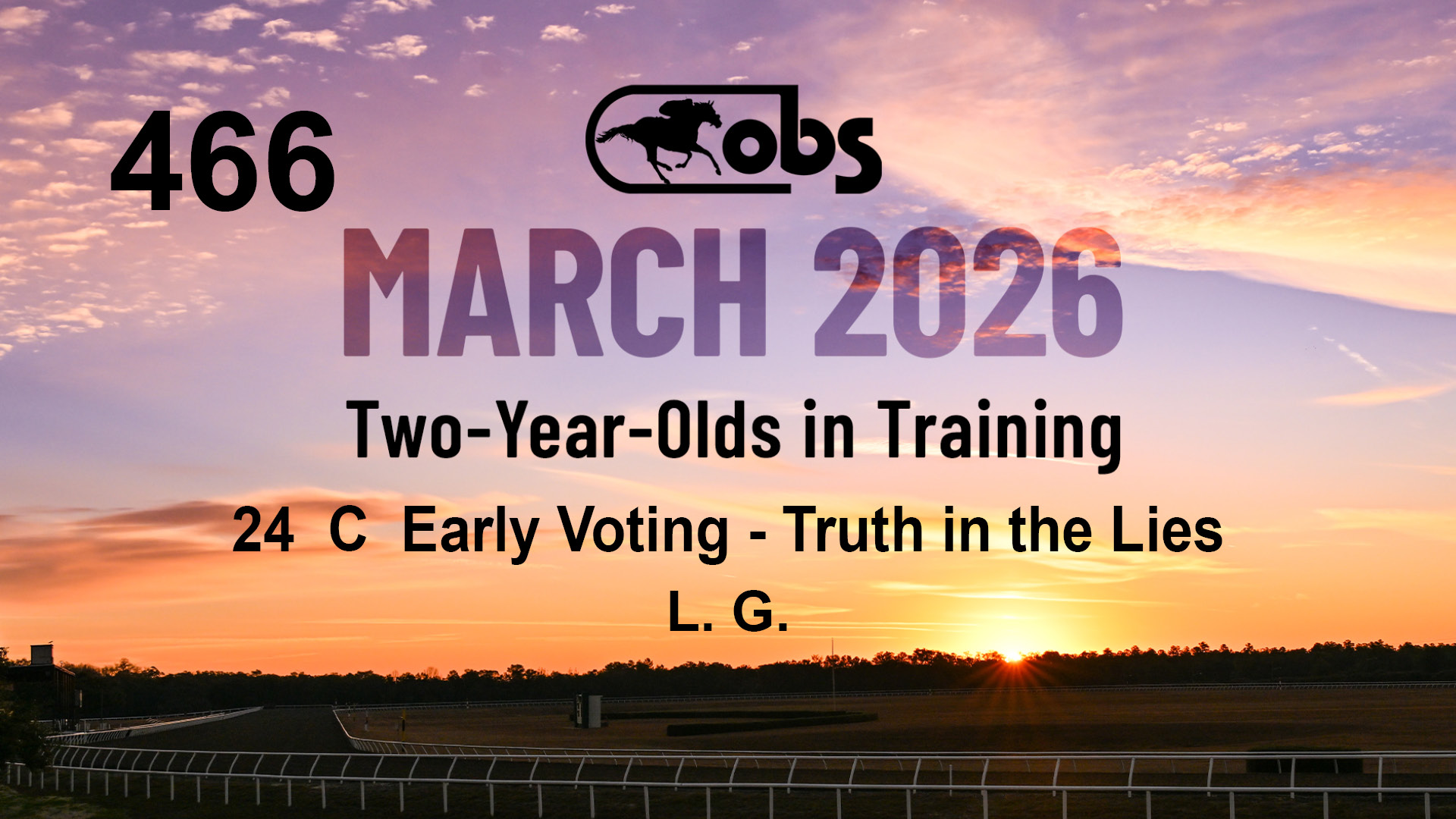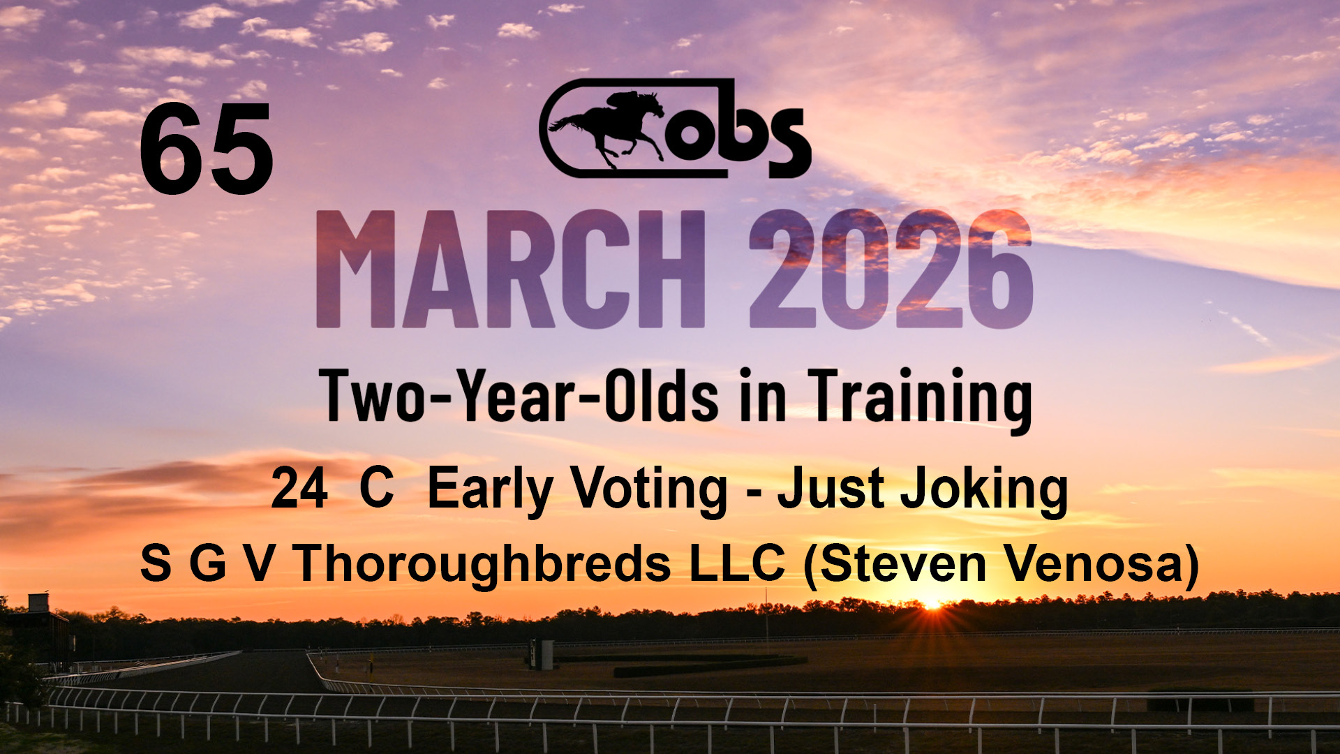 | 65 | Slate | Lower-Third | 2/18/2024 | C | Early Voting | Just Joking | S G V Thoroughbreds LLC (Steven Venosa), Agent | 108 | 193 | 359 | 648 | |