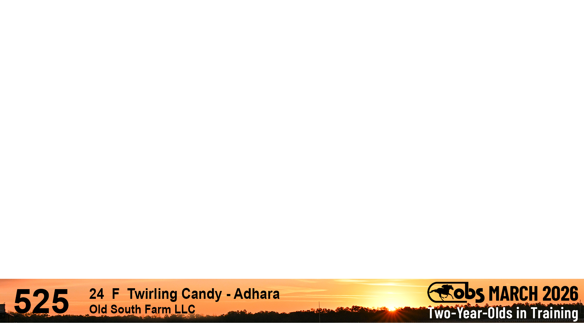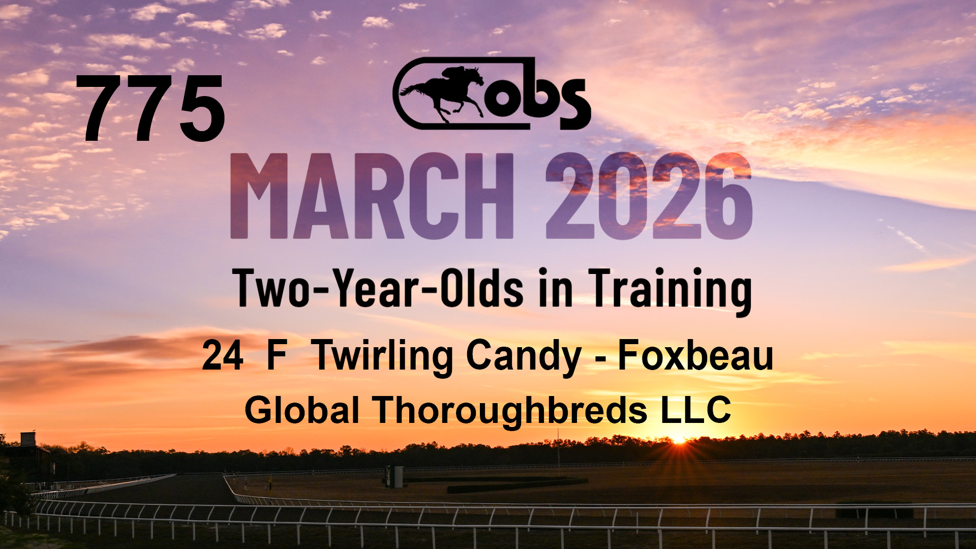 | 775 | Slate | Lower-Third | 3/15/2024 | F | Twirling Candy | Foxbeau | Global Thoroughbreds LLC, Agent I | 777 | 741 | 253 | 186 | |