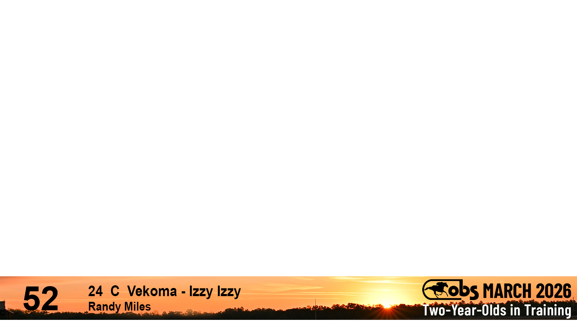 | 56 | Slate | Lower-Third | 3/9/2024 | F | Omaha Beach | Jazz Lady | Tom McCrocklin, Agent | 99 | 625 | 350 | 693 | |