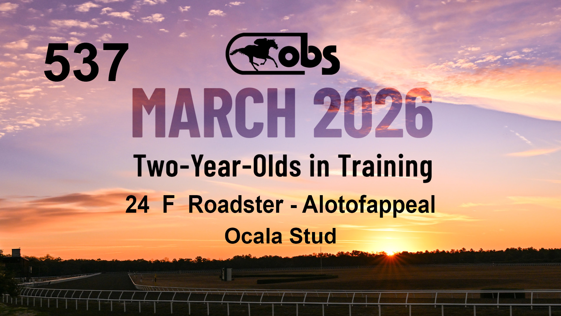 | 66 | Slate | Lower-Third | 4/24/2024 | C | Roadster | Just Like Lucy | Dark Star Thoroughbreds (Stori Atchison) | 109 | 673 | 360 | 110 | |