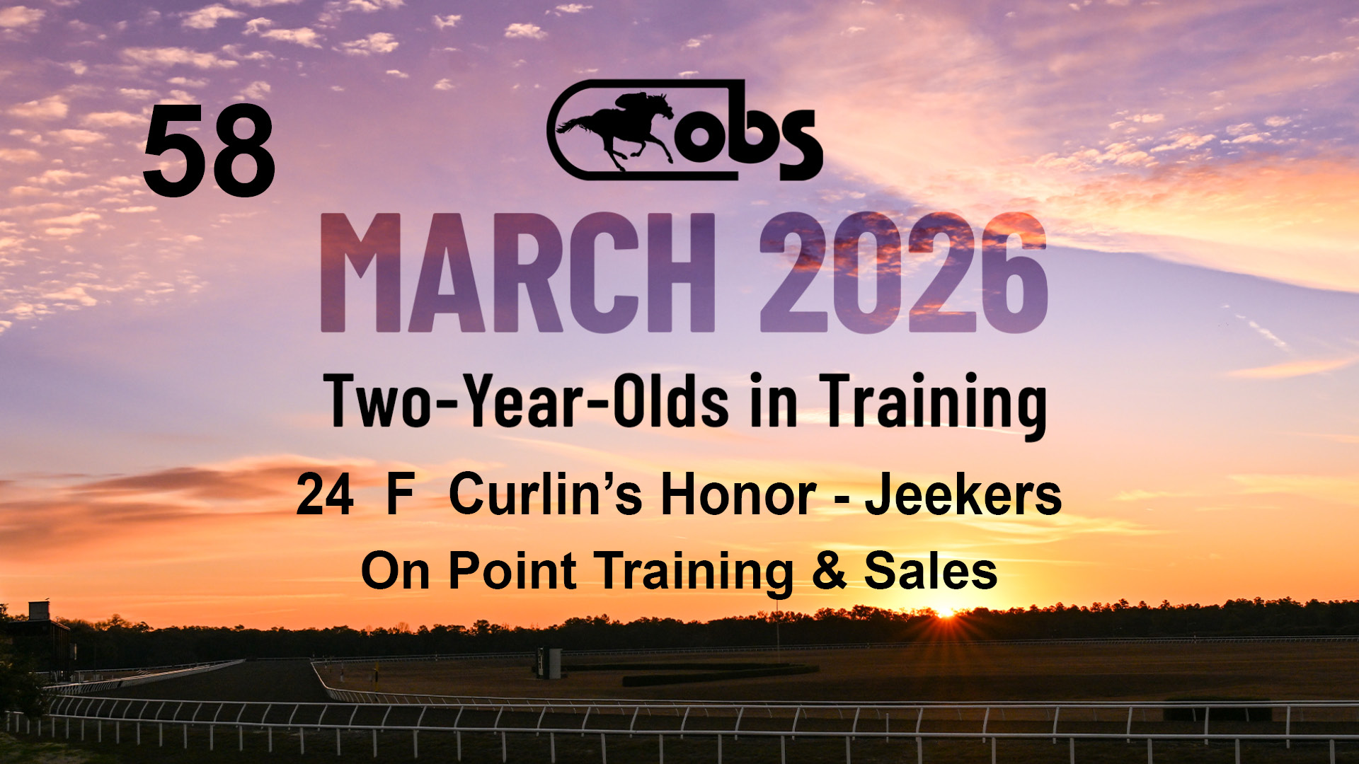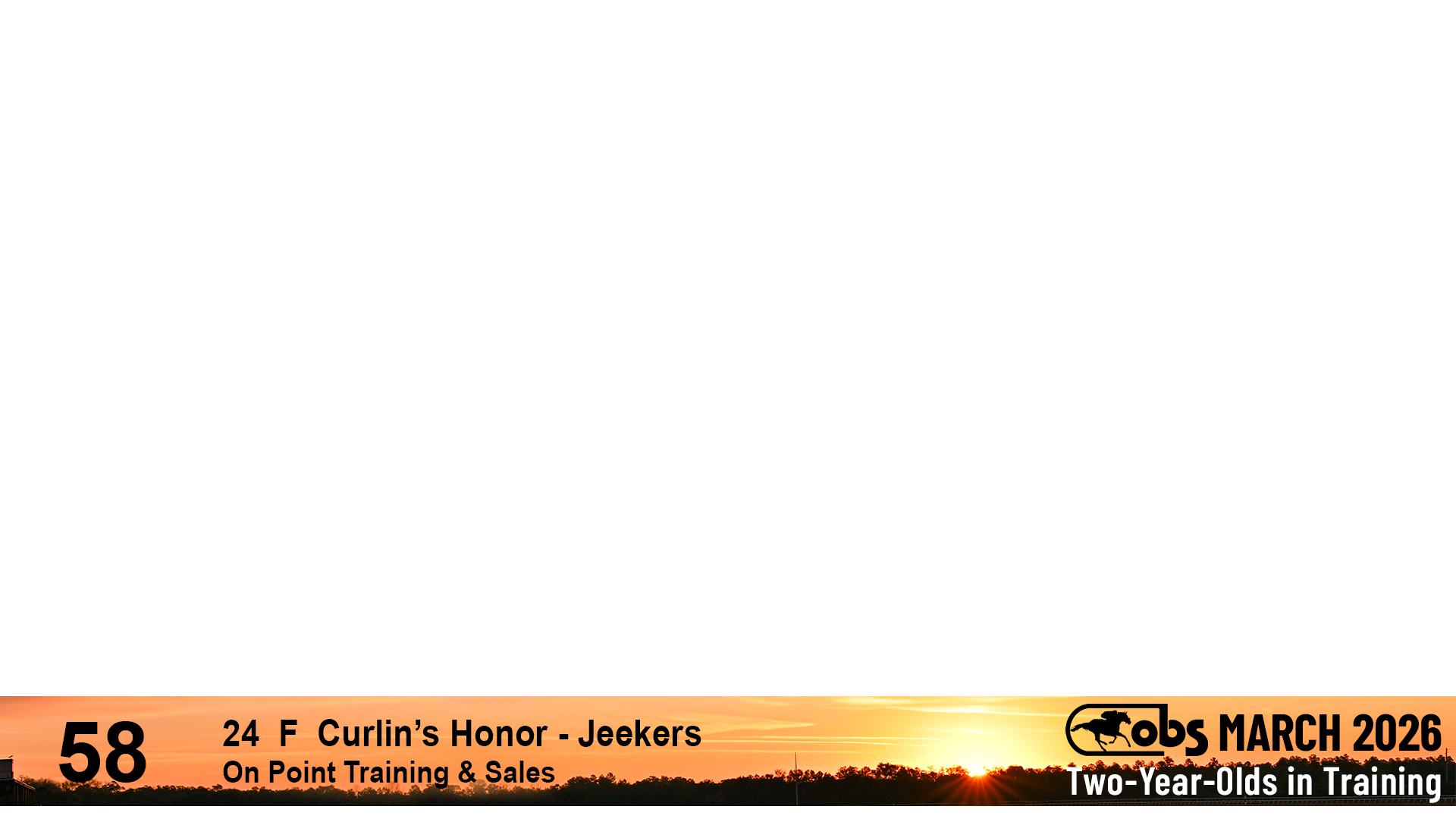 | 58 | Slate | Lower-Third | 4/29/2024 | F | Curlin's Honor | Jeekers | On Point Training & Sales, Agent | 101 | 133 | 352 | 487 | |