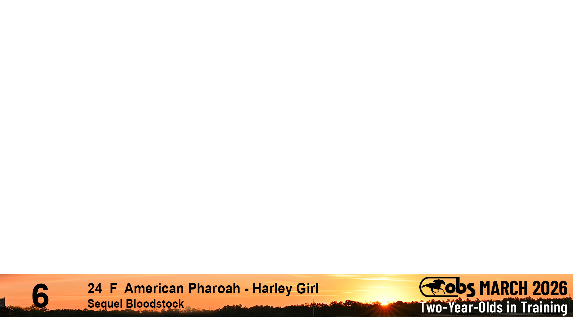 | 6 | Slate | Lower-Third | 2/25/2024 | F | American Pharoah | Harley Girl | Sequel Bloodstock, Agent V | 52 | 7 | 300 | 645 | |