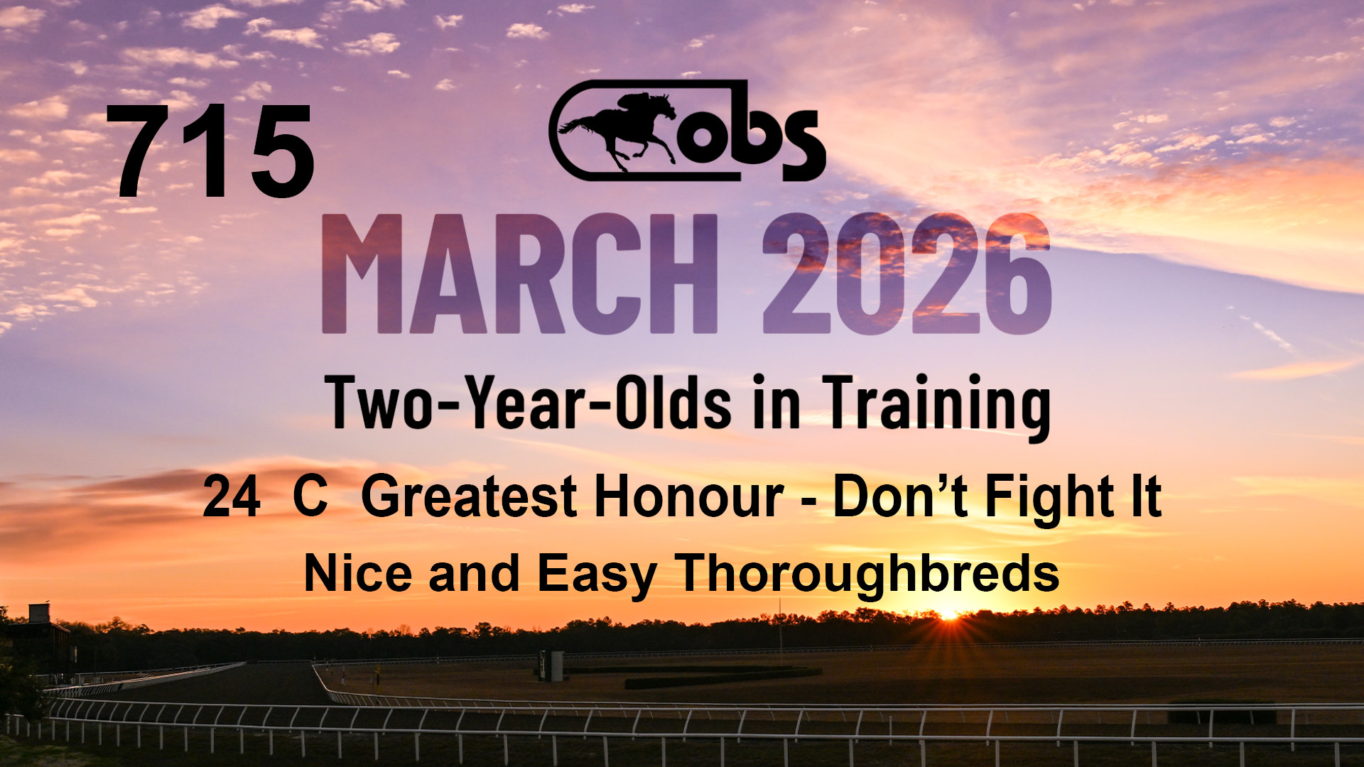 | 805 | Slate | Lower-Third | 4/20/2024 | F | Greatest Honour | Goodn'ready | Golden Rock Thoroughbreds, Agent IV | 806 | 309 | 283 | 215 | |