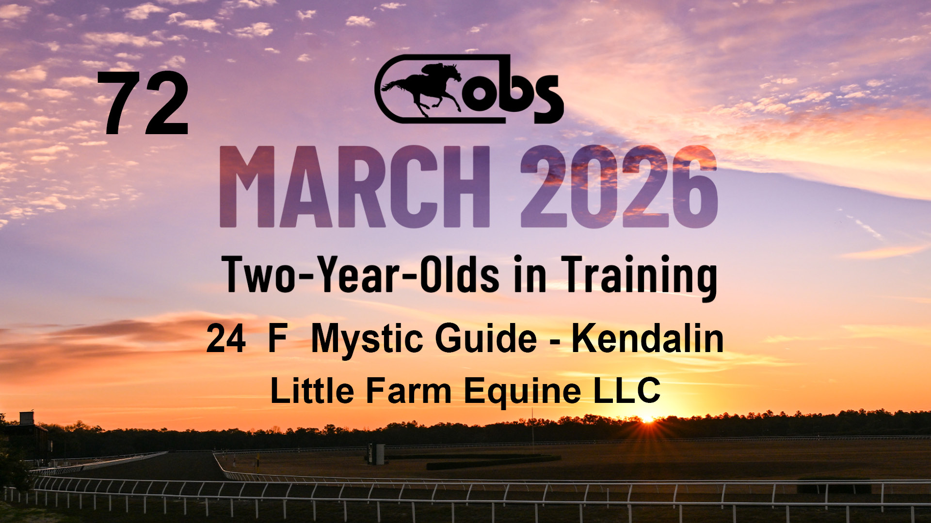 | 72 | Slate | Lower-Third | 4/14/2024 | F | Mystic Guide | Kendalin | Little Farm Equine LLC, Agent I | 115 | 560 | 366 | 352 | |